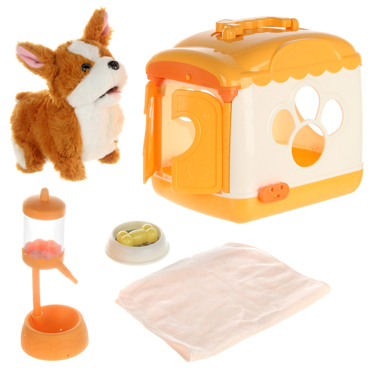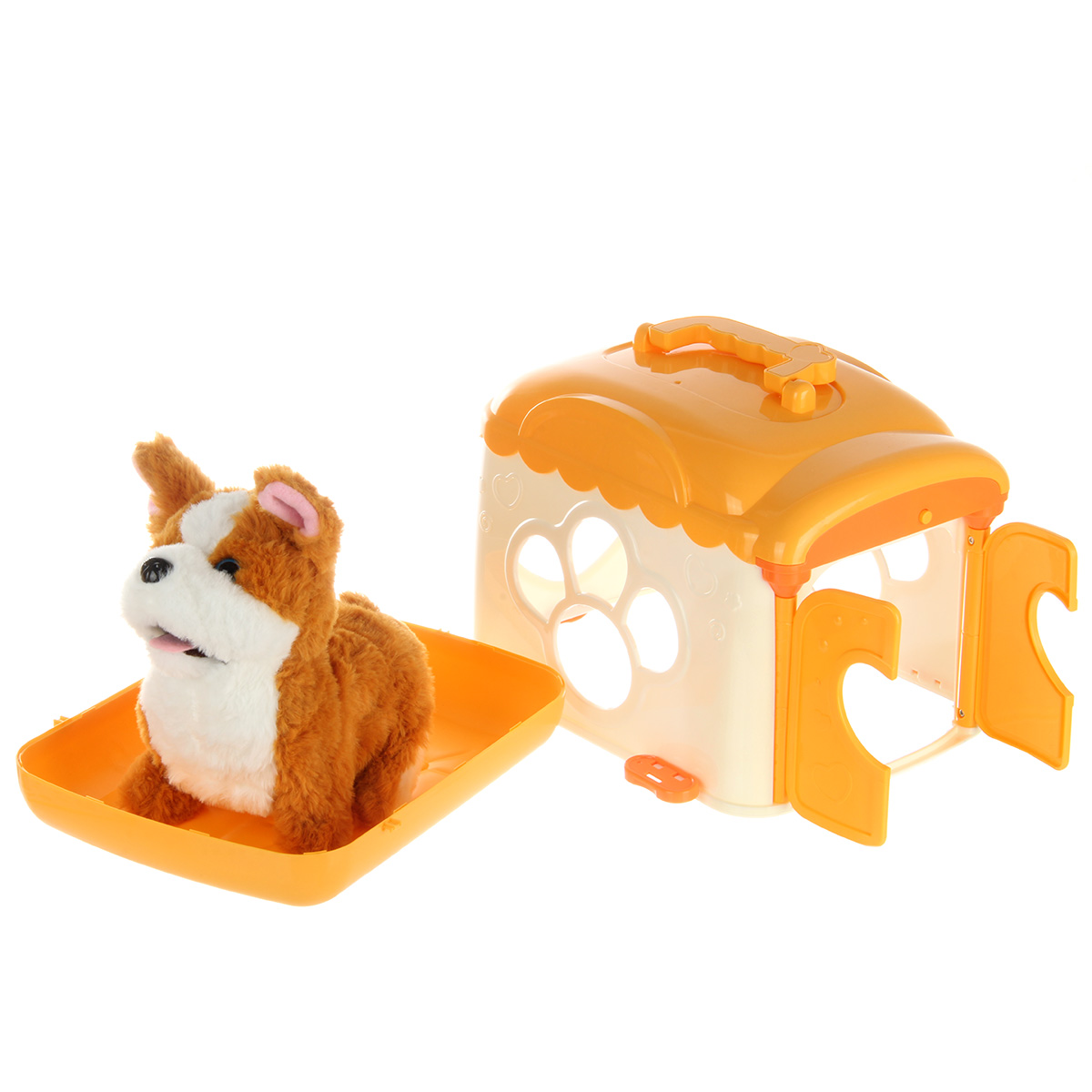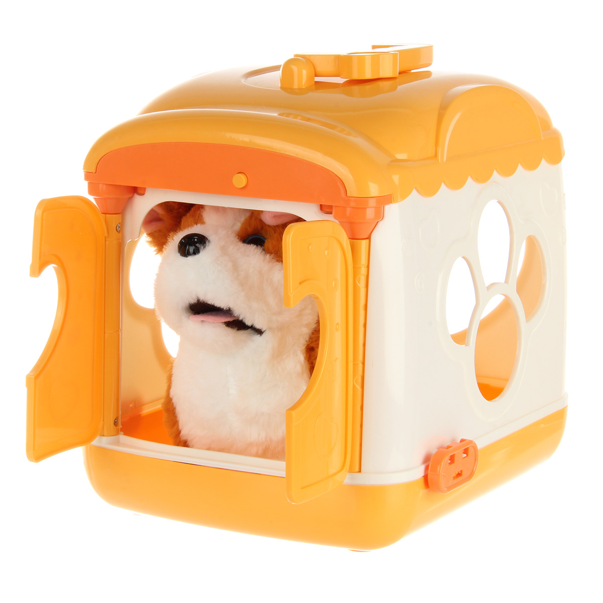 Игрушечный милый питомец с интересными аксессуарами. Домик на батарейках, дверки открываются, закрываются на звук хлопка в ладоши, есть ручка для удобства транспортировки. Игрушечная собака со звуковыми эффектами и движением вперед, косточка в миске крутится. У плюшевой собаки мягкая, приятная на ощупь шерстка, глазки бусинки, есть покрывало. Игрушка со звуком изготовлена из качественных и безопасных материалов, отличается хорошим исполнением. Мягкая игрушка станет отличным подарком для детей на Новый год и День рождения.