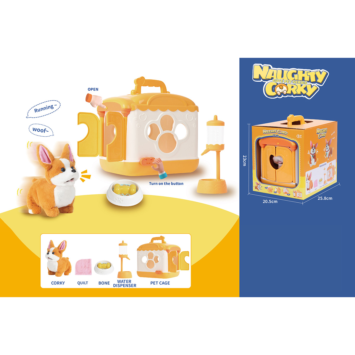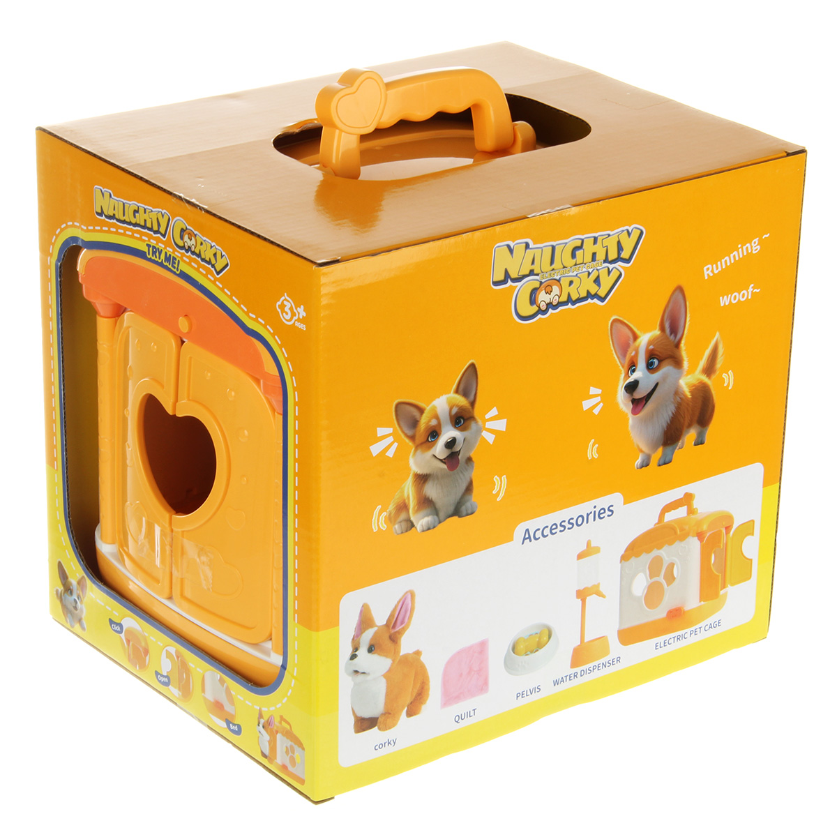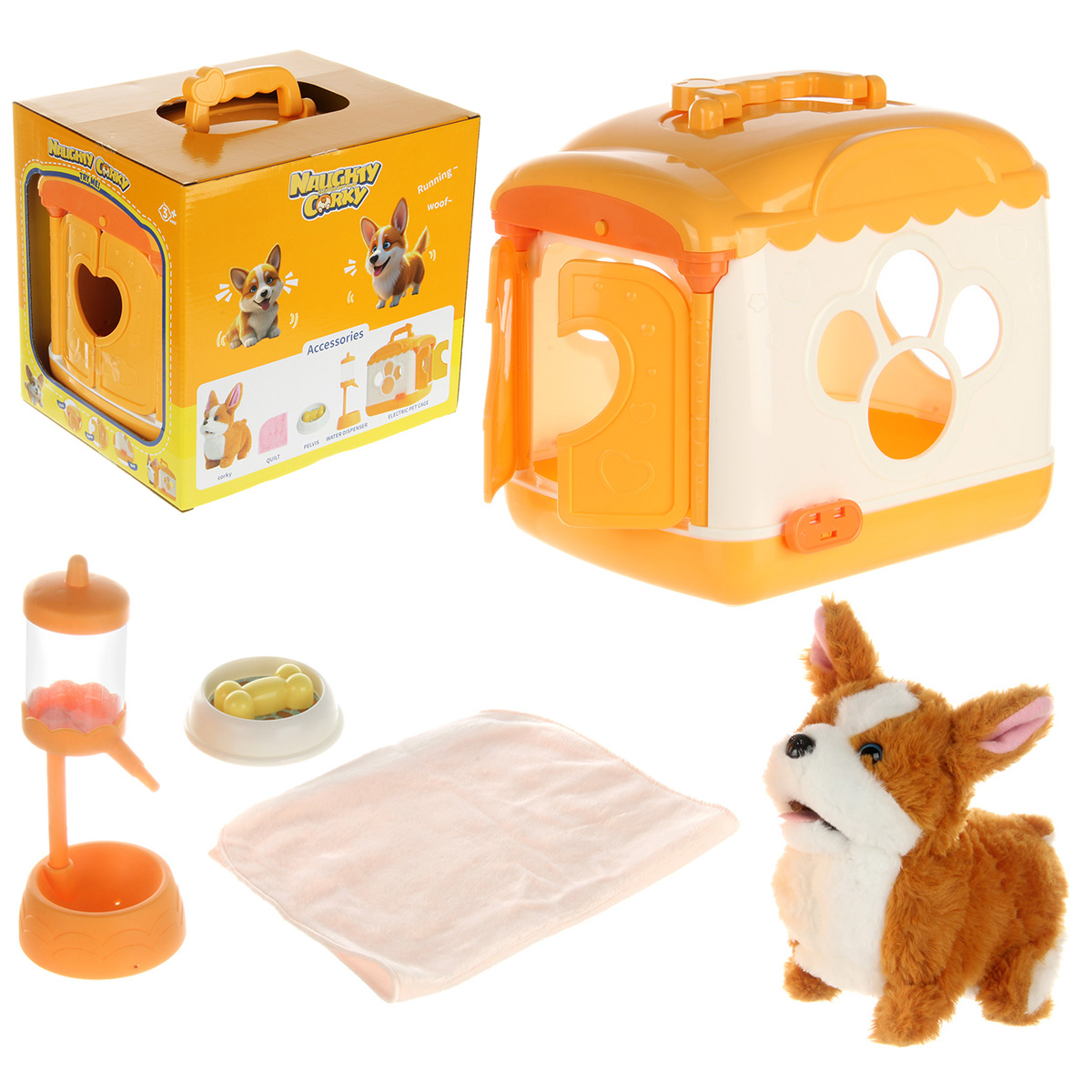 Игрушечный милый питомец с интересными аксессуарами. Домик на батарейках, дверки открываются, закрываются на звук хлопка в ладоши, есть ручка для удобства транспортировки. Игрушечная собака со звуковыми эффектами и движением вперед, косточка в миске крутится. У плюшевой собаки мягкая, приятная на ощупь шерстка, глазки бусинки, есть покрывало. Игрушка со звуком изготовлена из качественных и безопасных материалов, отличается хорошим исполнением. Мягкая игрушка станет отличным подарком для детей на Новый год и День рождения.