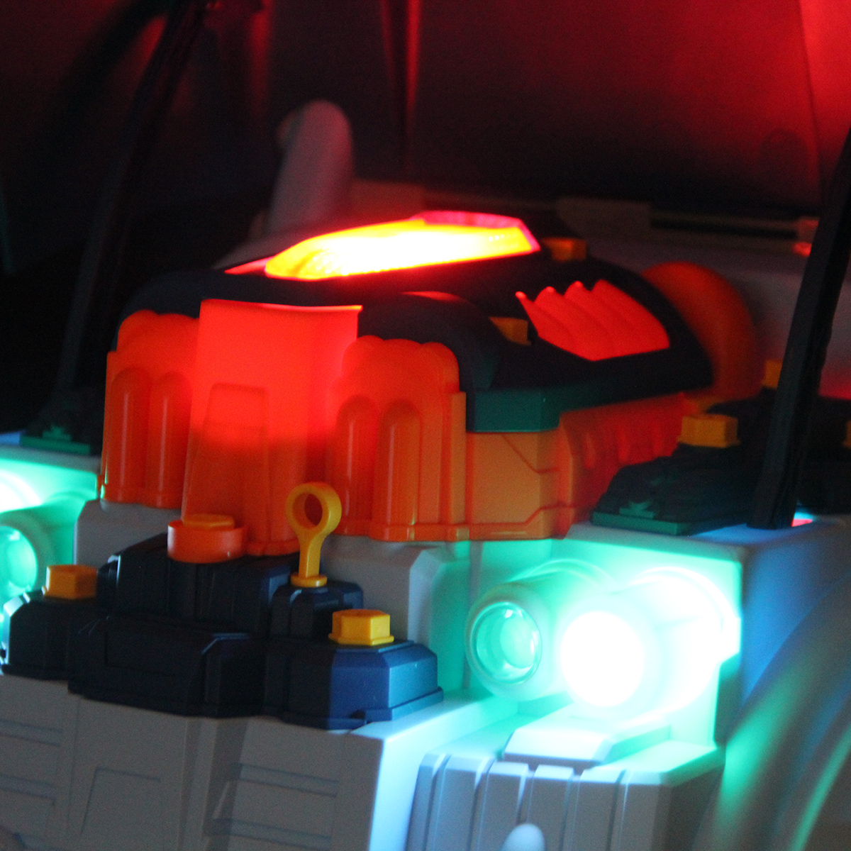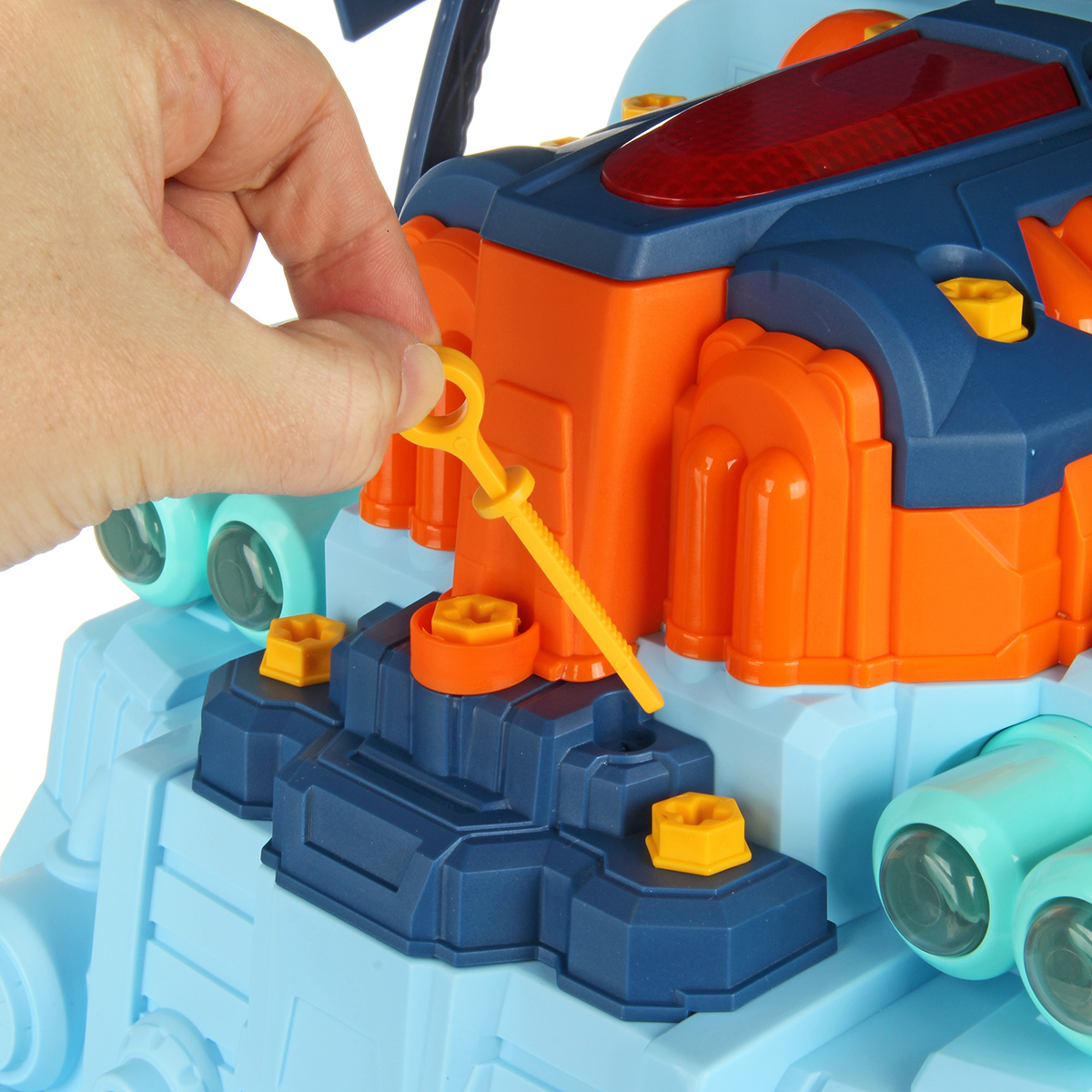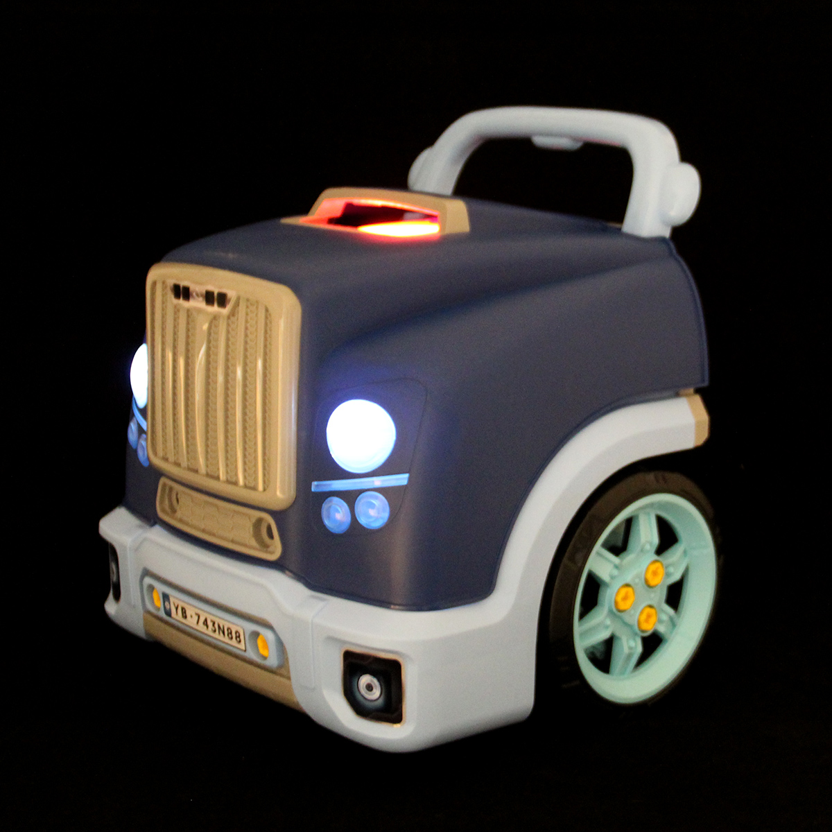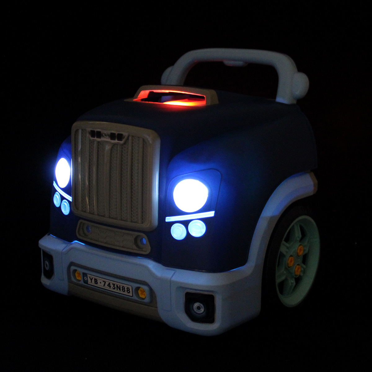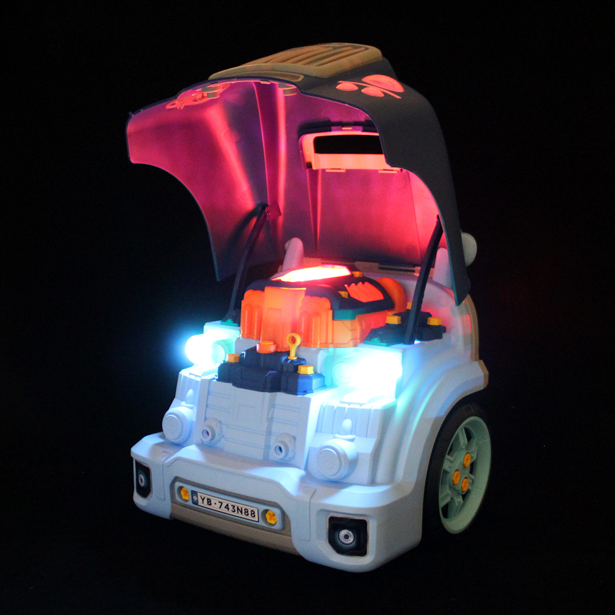 Конструктор разборный с эффектной подсветкой фар, подсветка кнопок Старта и аварийной остановки, можно играть в темное время суток.