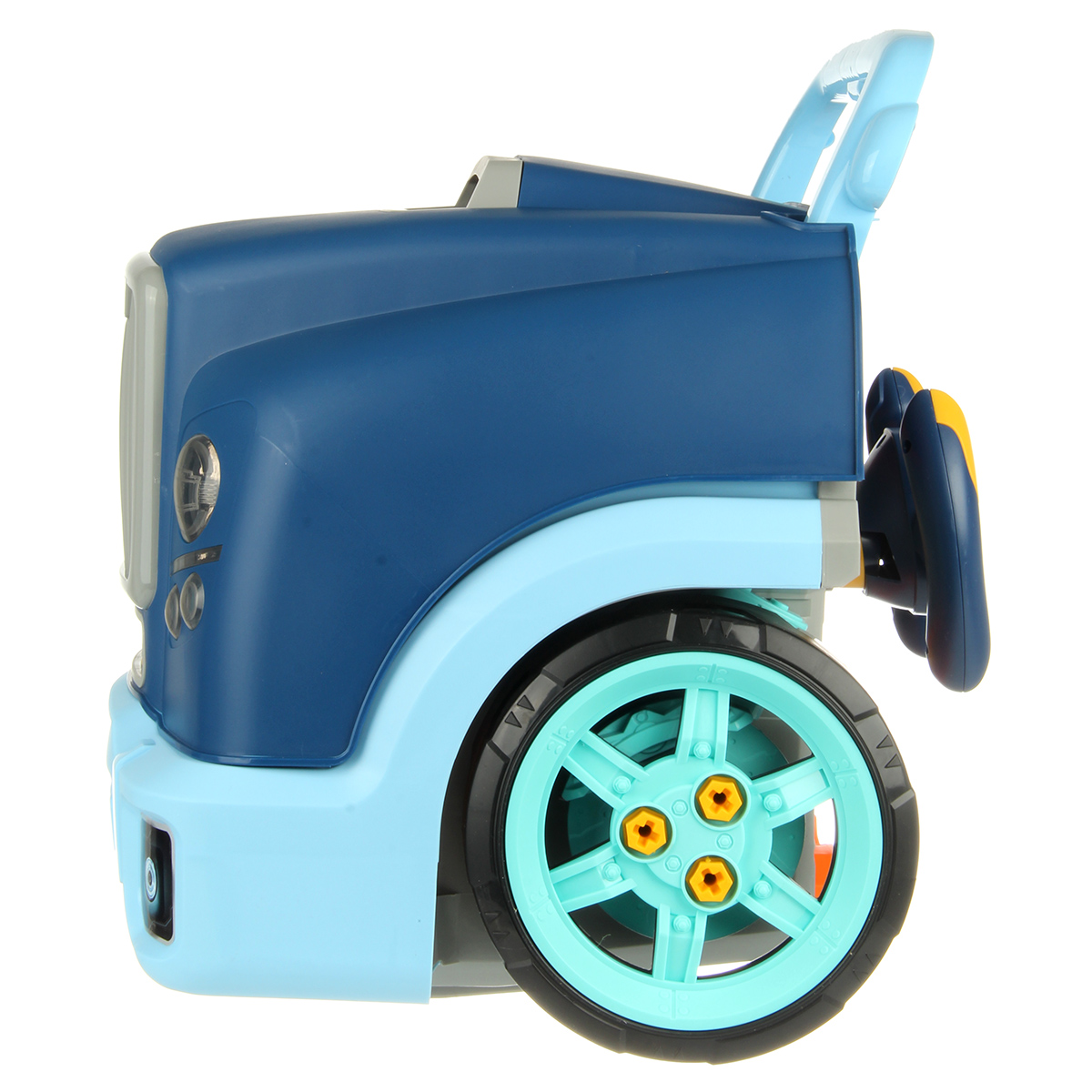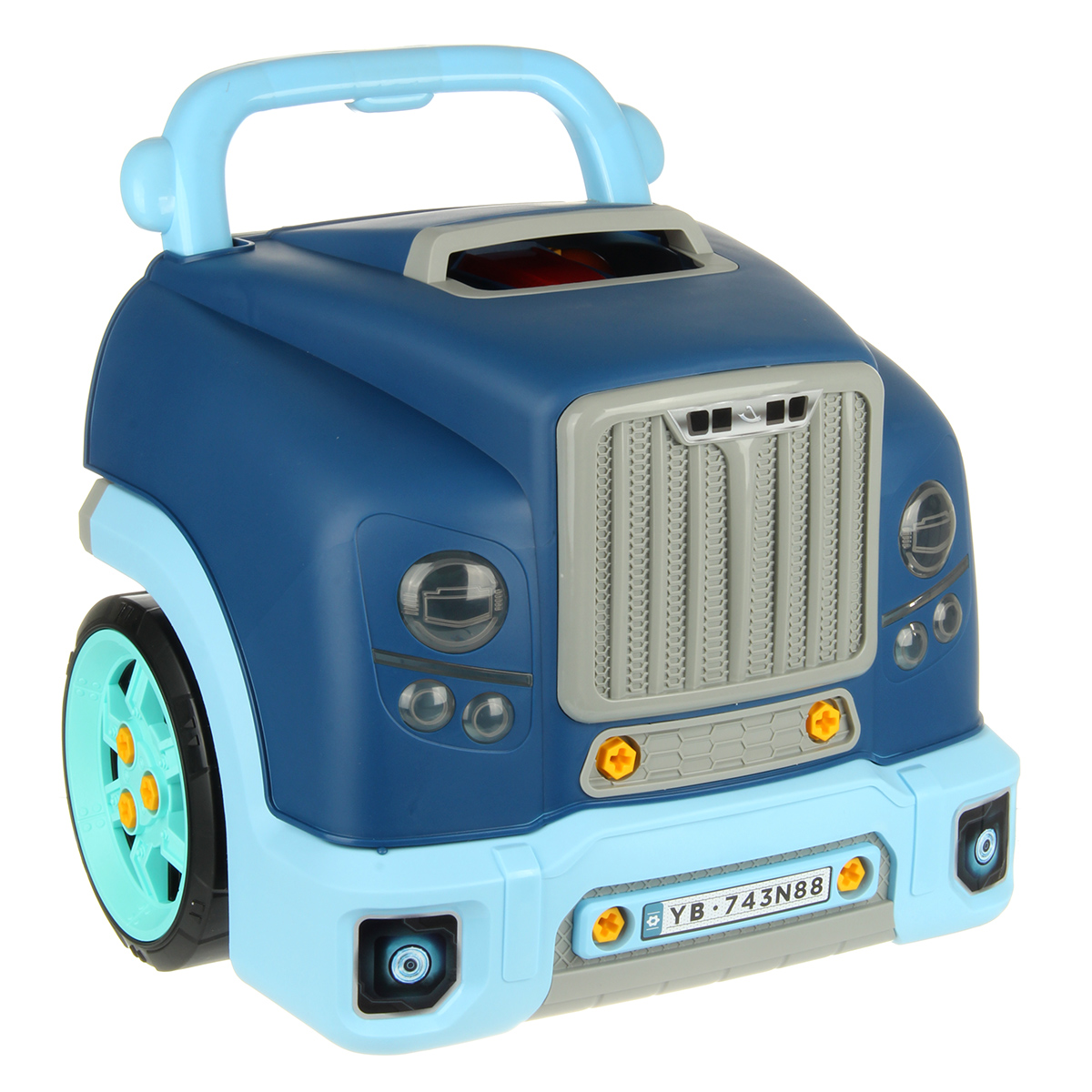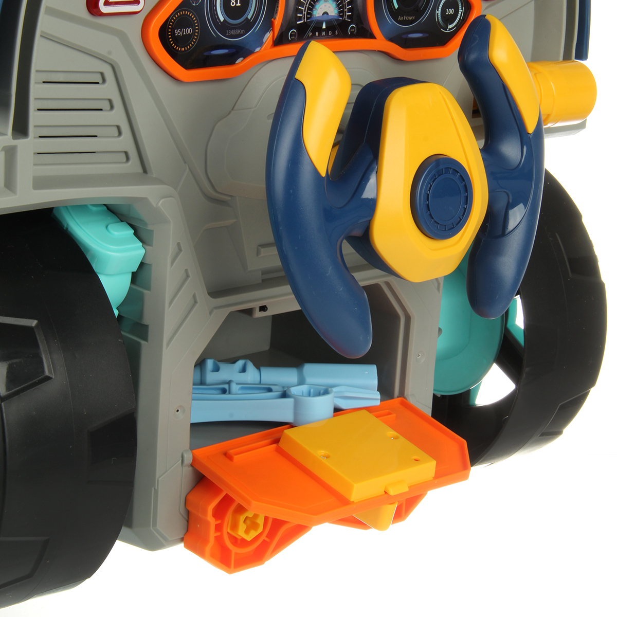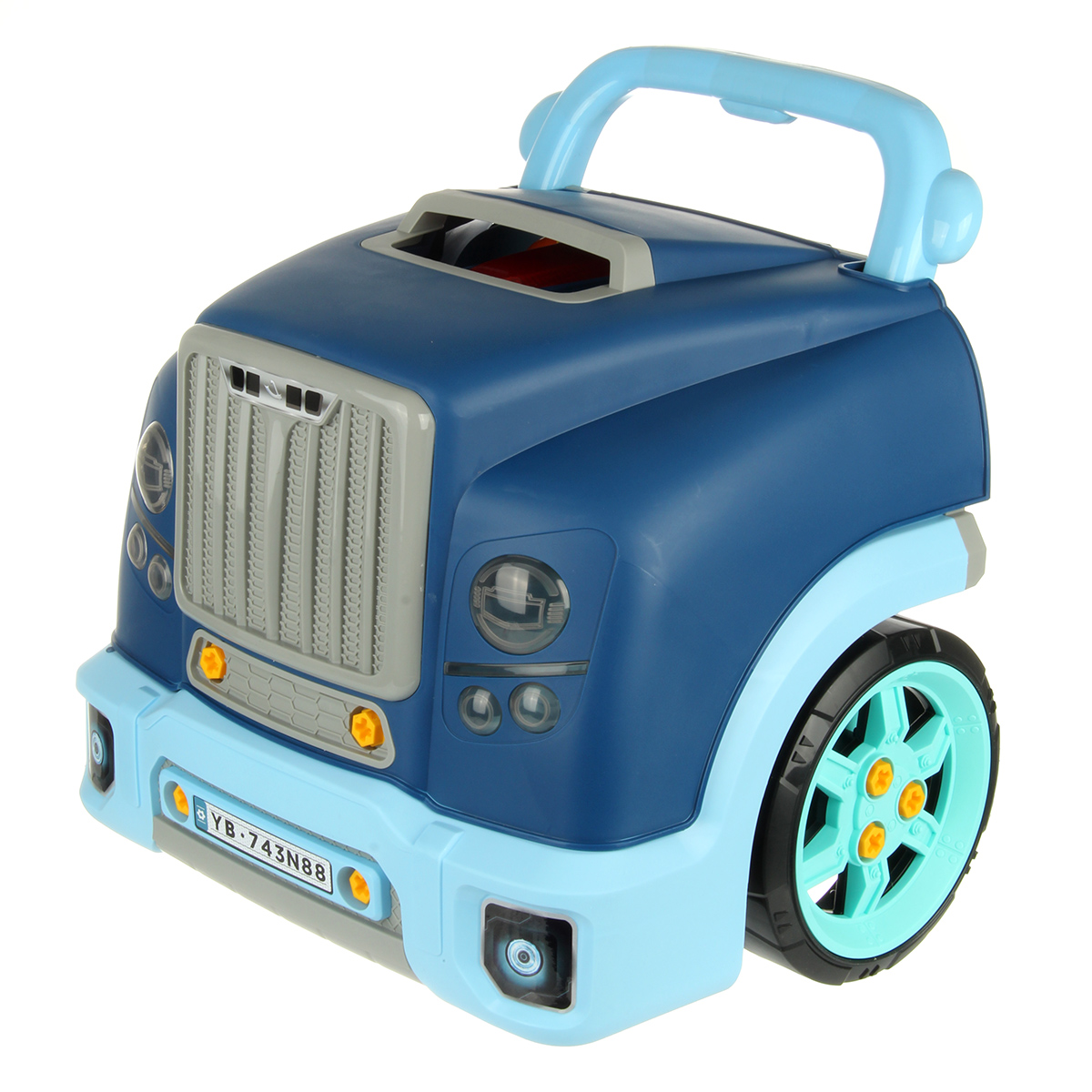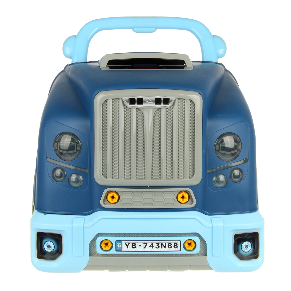Конструктор для мальчика, выполненный в виде передней части грузового автомобиля, это роскошная игрушка для каждого ребенка. Отсек для мелочей, клаксон на крутящемся руле, складные подставки для подъема автомобиля, открывающийся капот, щуп для имитации проверки уровня масла.