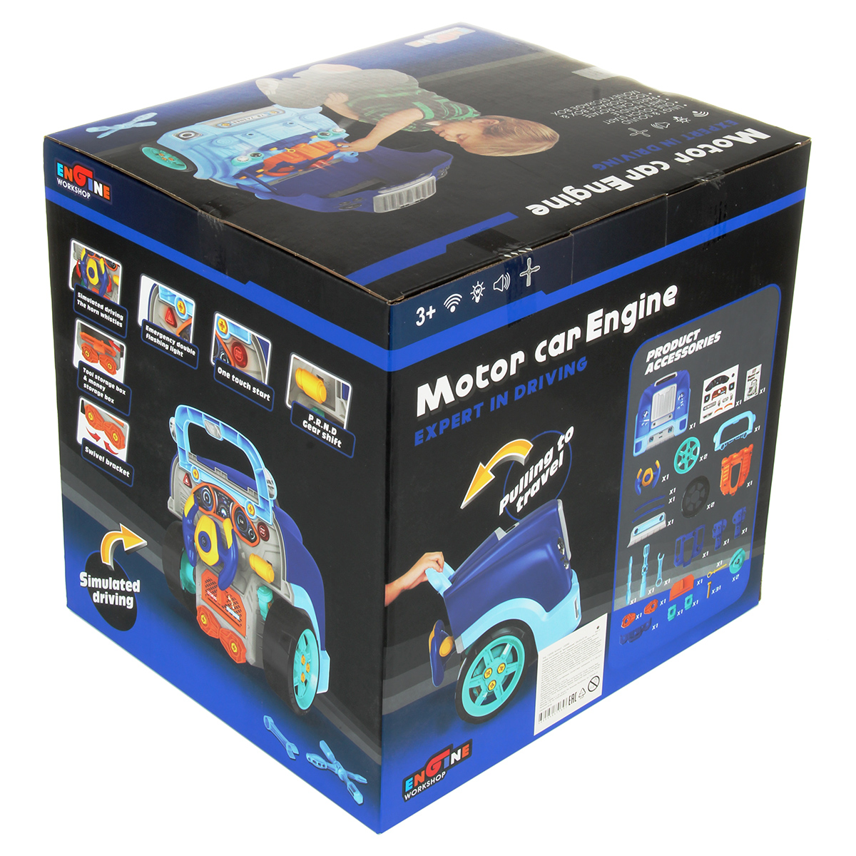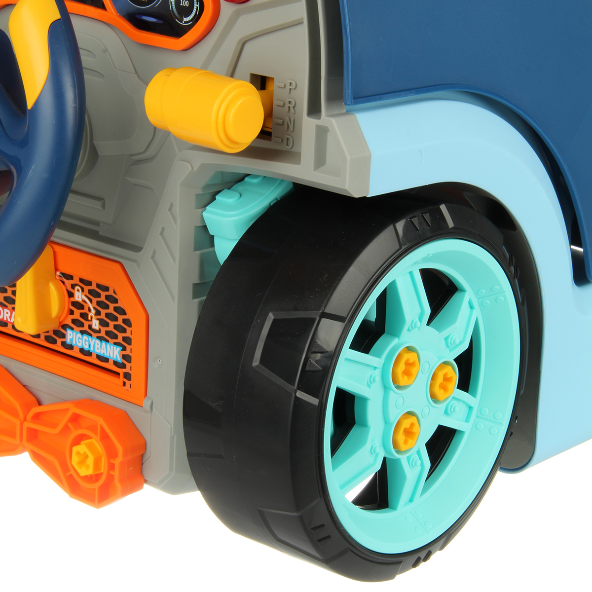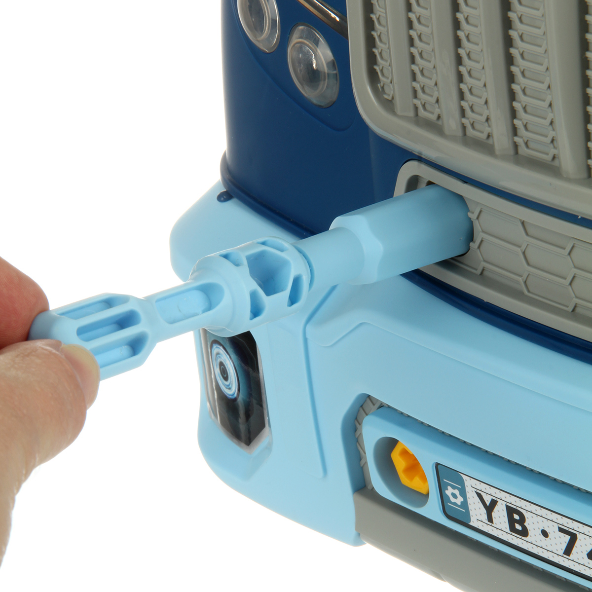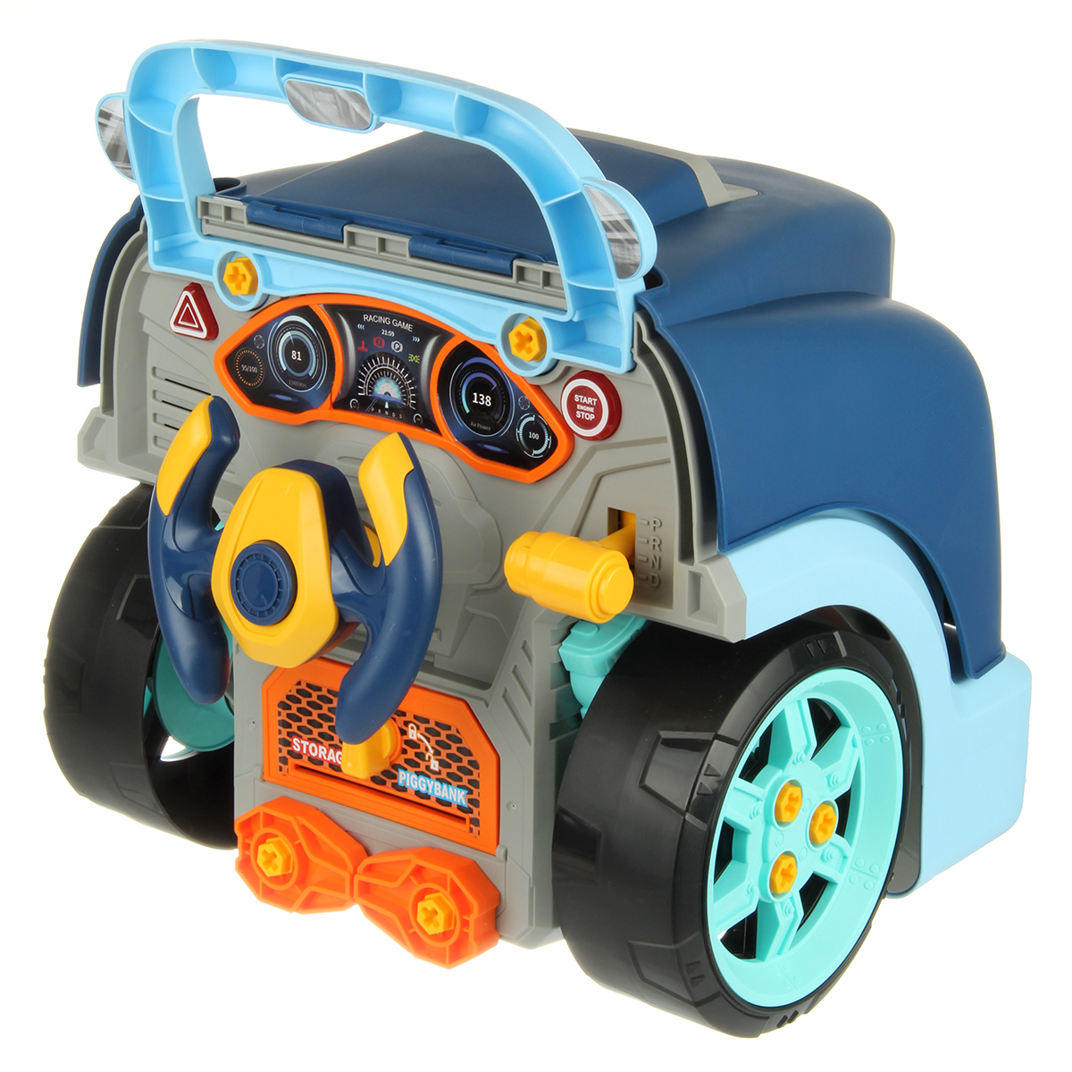 Конструктор для мальчика, выполненный в виде передней части грузового автомобиля, это роскошная игрушка для каждого ребенка. Отсек для мелочей, клаксон на крутящемся руле, складные подставки для подъема автомобиля, открывающийся капот, щуп для имитации проверки уровня масла.