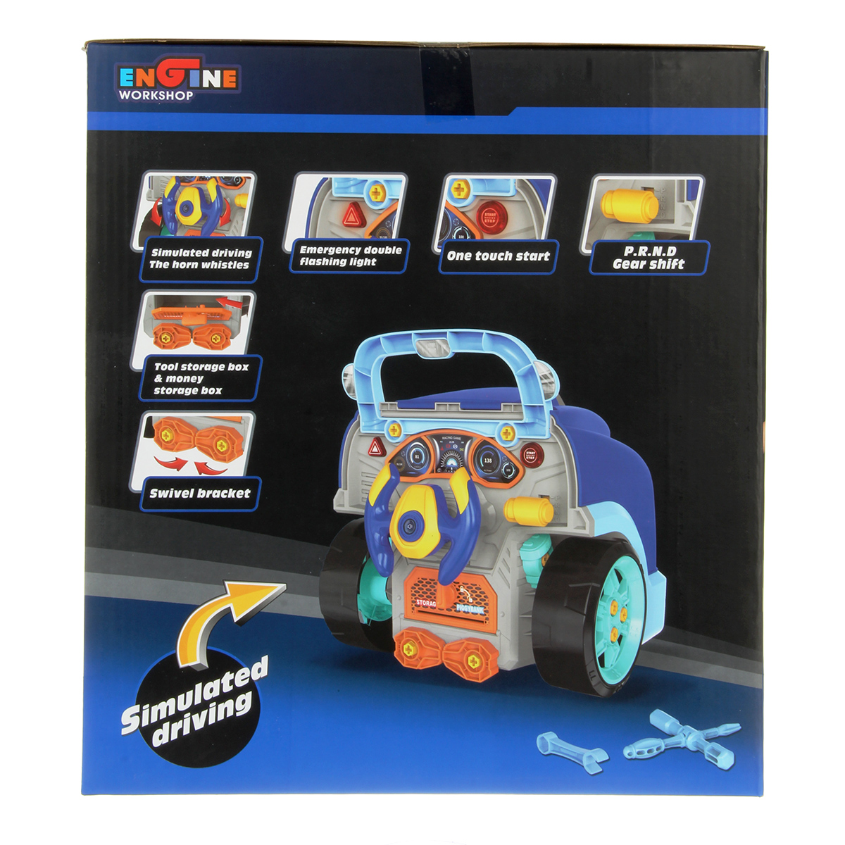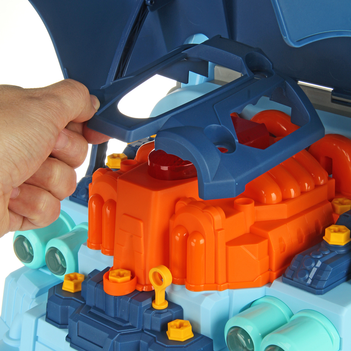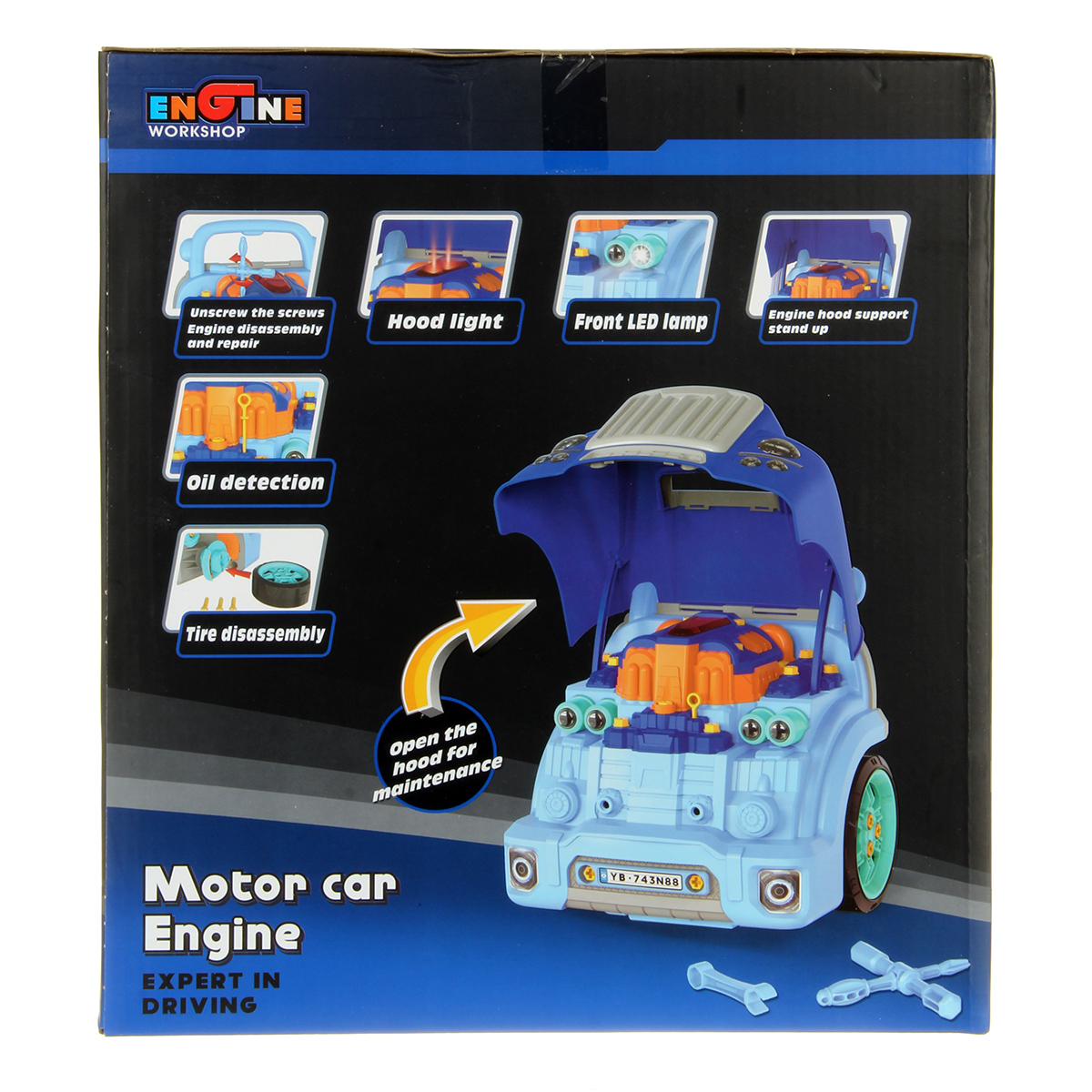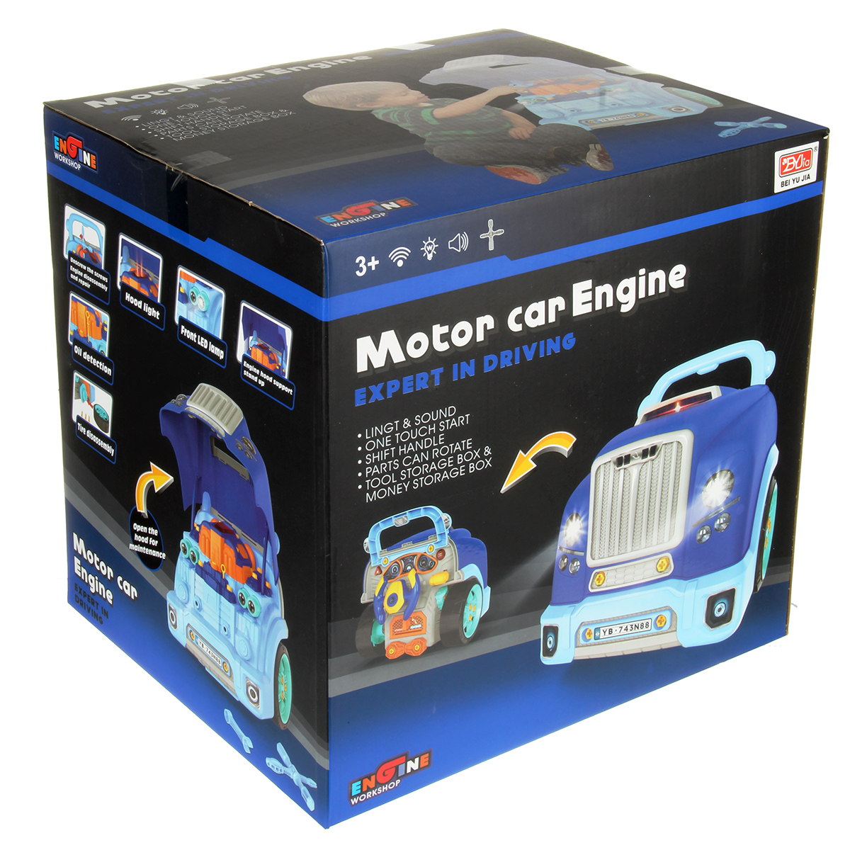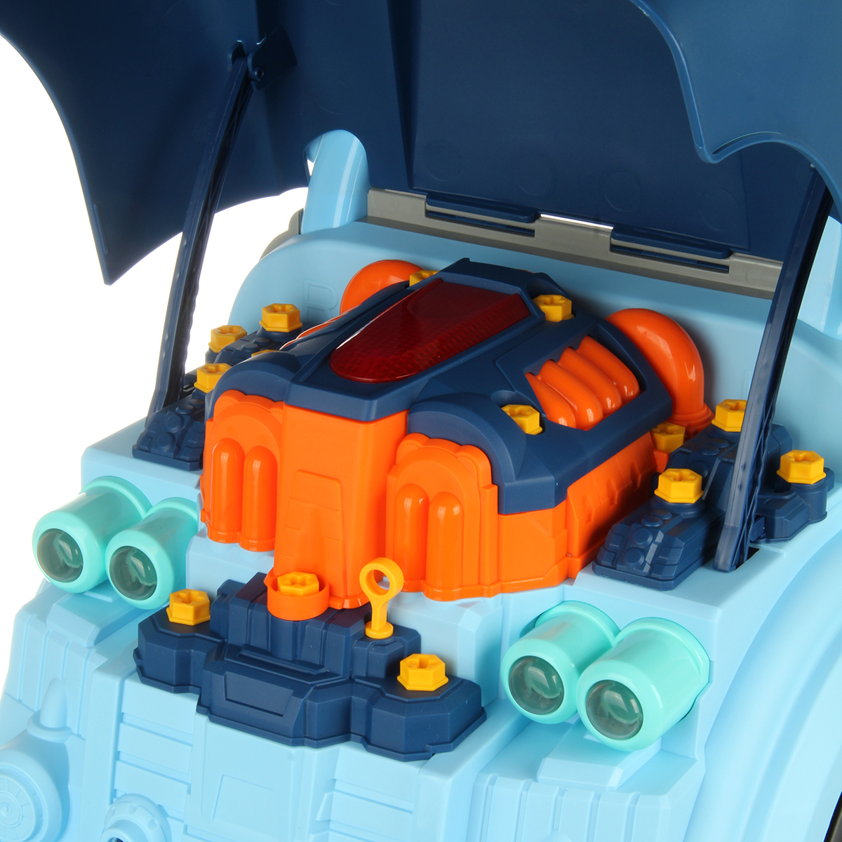 Конструктор для мальчика, выполненный в виде передней части грузового автомобиля, это роскошная игрушка для каждого ребенка. Отсек для мелочей, клаксон на крутящемся руле, складные подставки для подъема автомобиля, открывающийся капот, щуп для имитации проверки уровня масла.