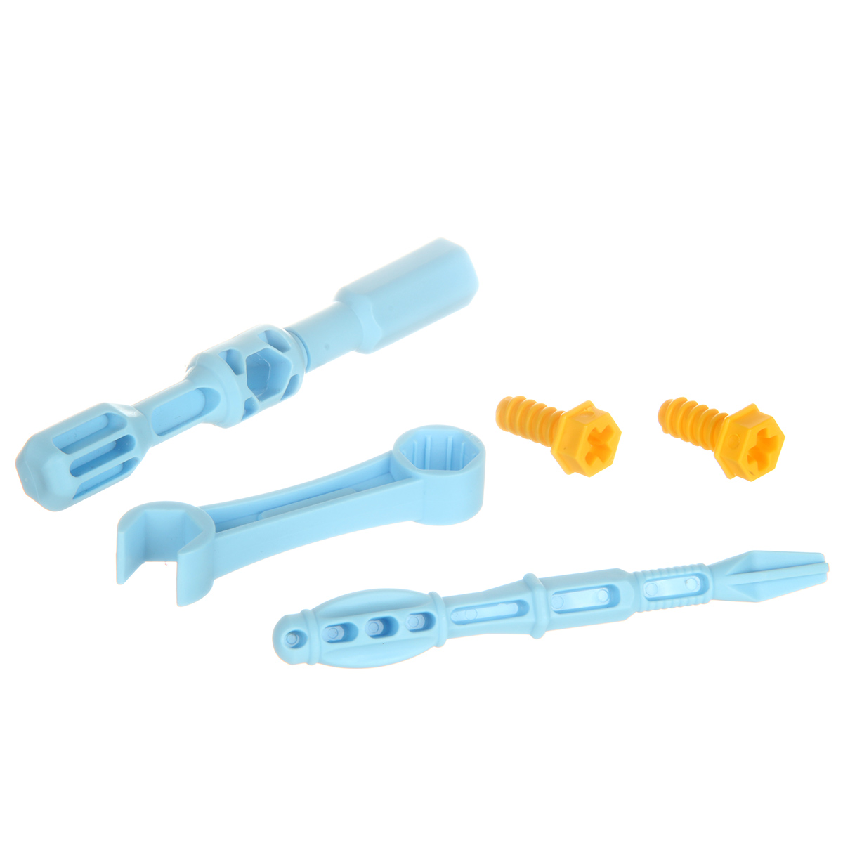 Набор инструментов автомеханика детский в виде отверток и ключа позволяет легко закручивать и раскручивать винты.