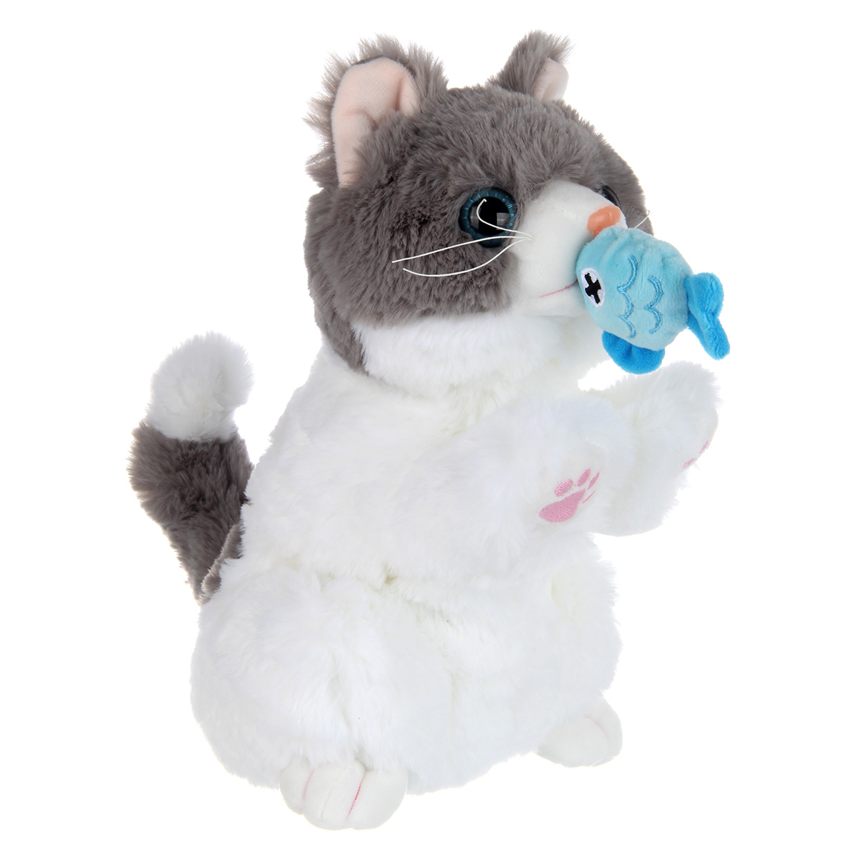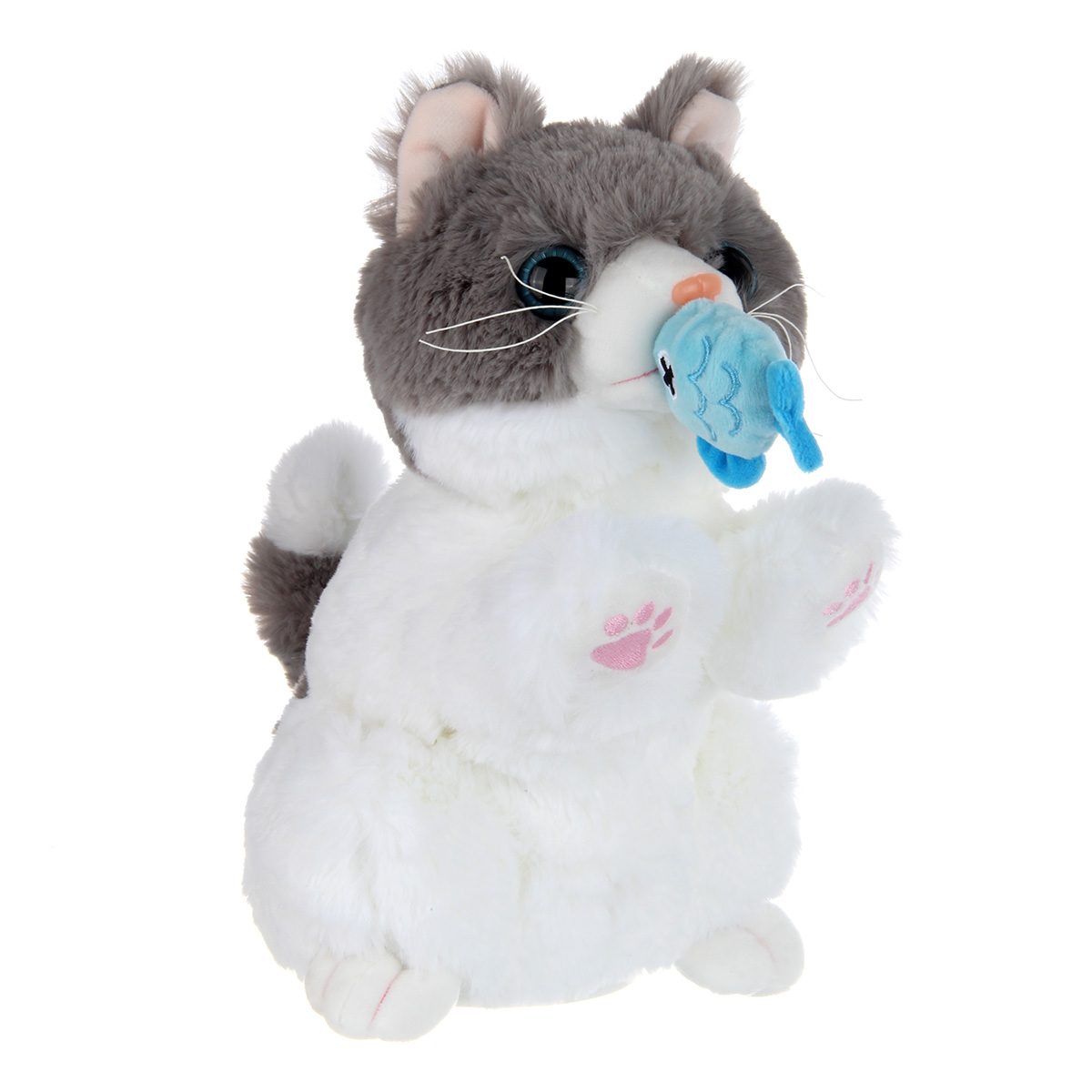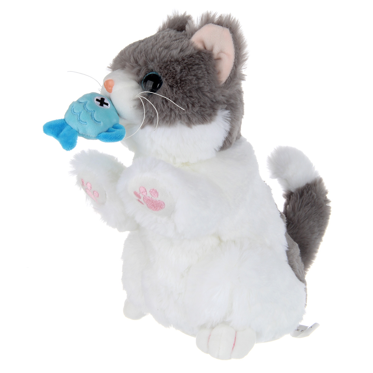 Очаровательный пушистик с функцией воспроизведения голоса и звуковыми эффектами. Игрушка на батарейках реагирует на прикосновения, умеет мяукать, вилять хвостиком и издавать звуки кормления, рыбка оттягивается. Игрушка котик имеет мягкую, приятную на ощупь шерстку и блестящие глазки бусинки. Компактные размеры, удобно брать с собой. Игрушка для детей изготовлена из качественных и безопасных материалов, игрушка робот станет замечательным подарком для мальчика и девочки на Новый год и День рождения, поставляется в красивой упаковке.