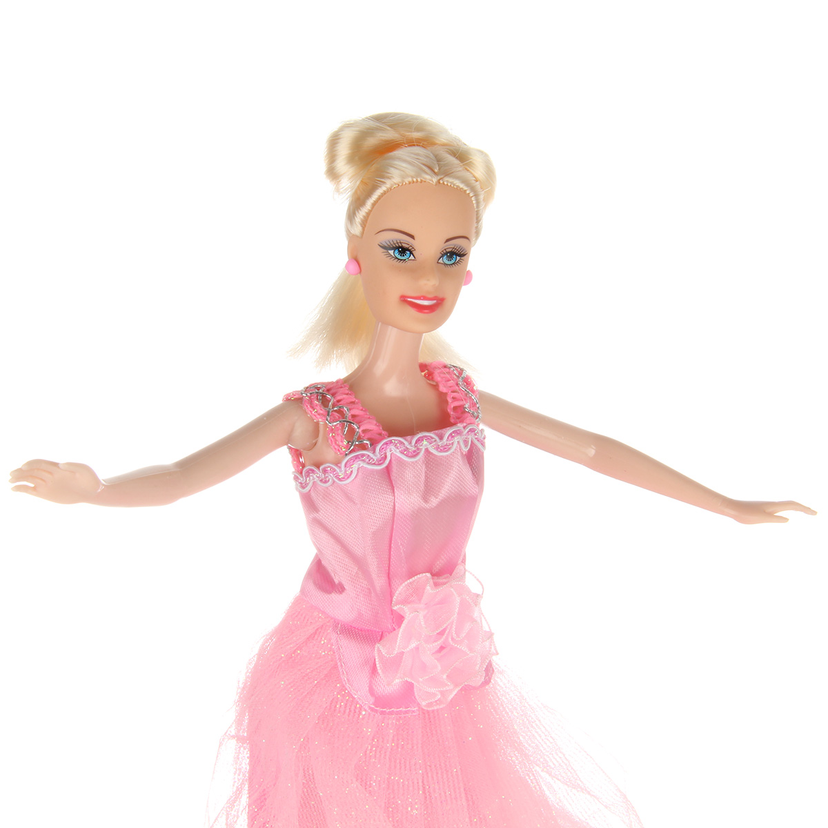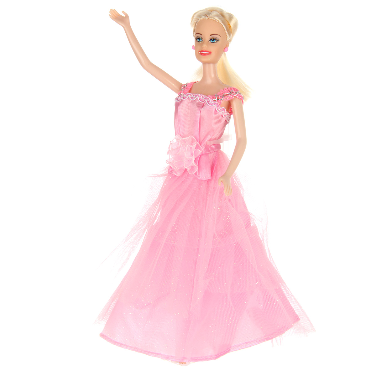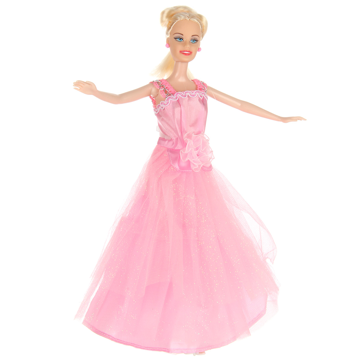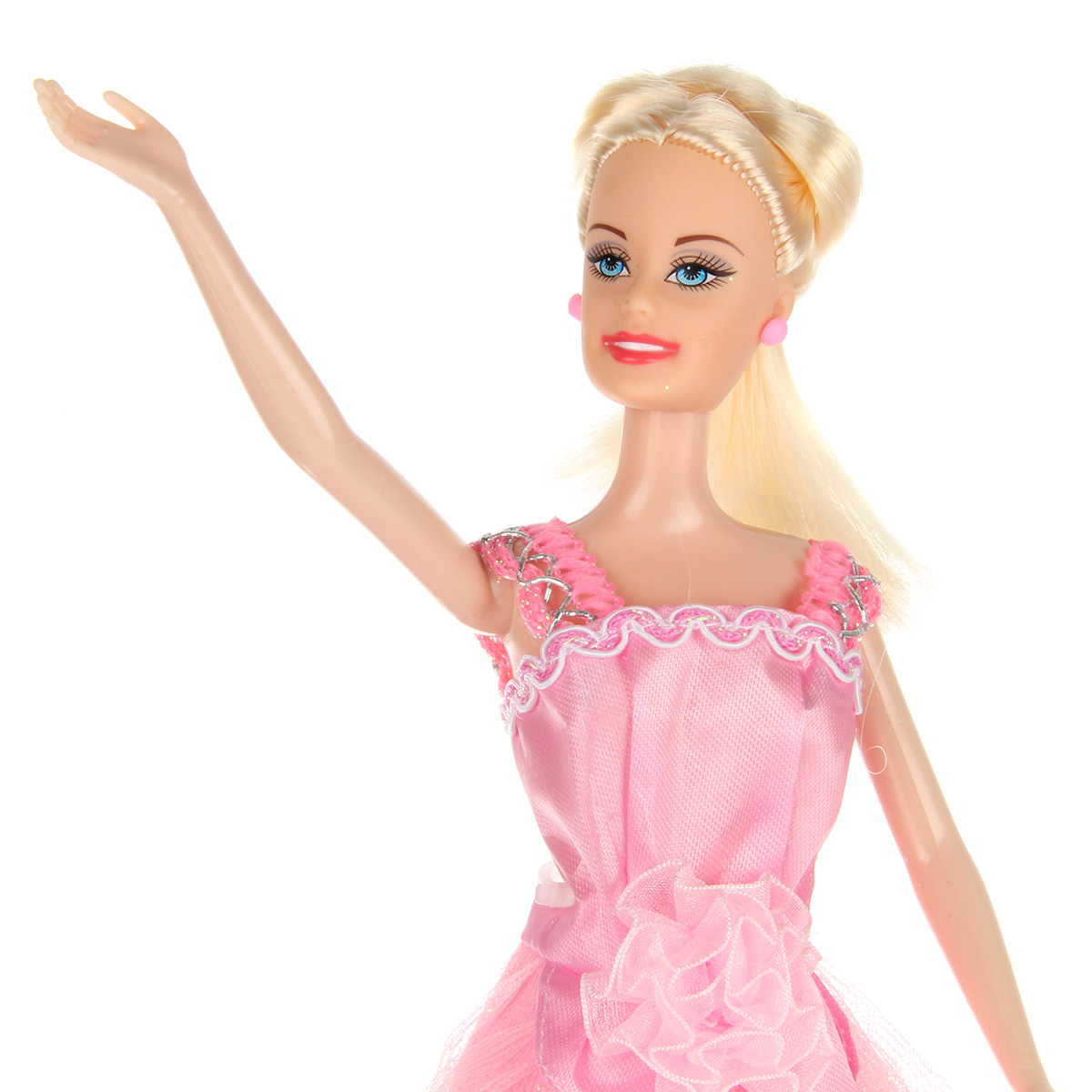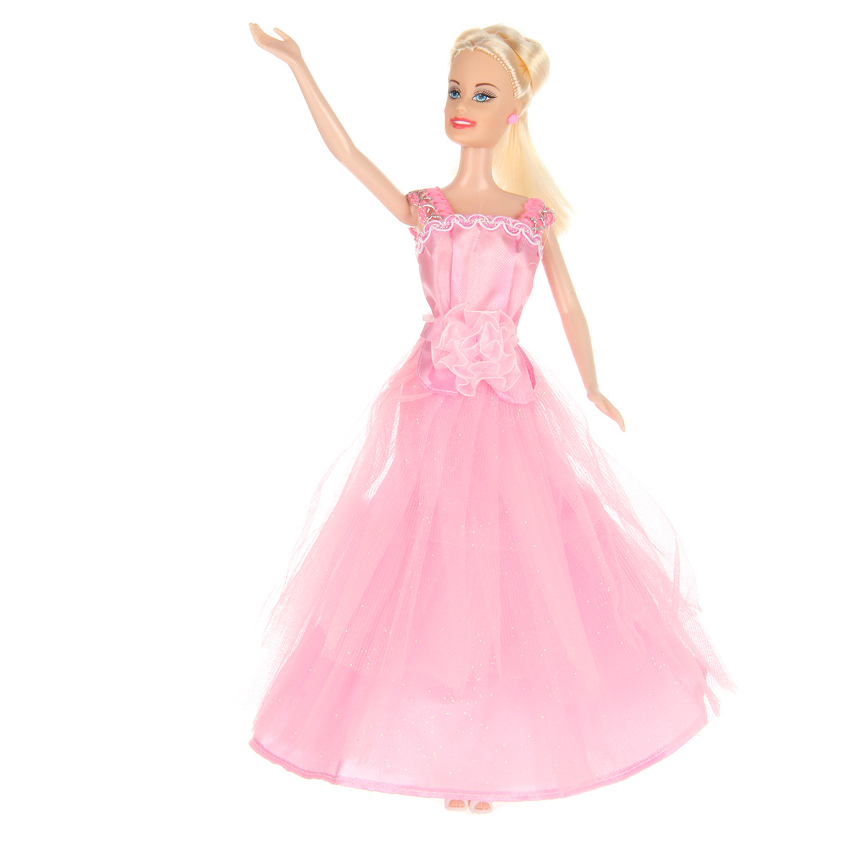 У куклы жесткое туловище, руки и ноги. Голова мягкая, крутится, прошита волосами частично. Руки и ноги двигаются, отводятся в стороны. Платье на липучке, снимается. Обувь снимается, ступни на носочках.