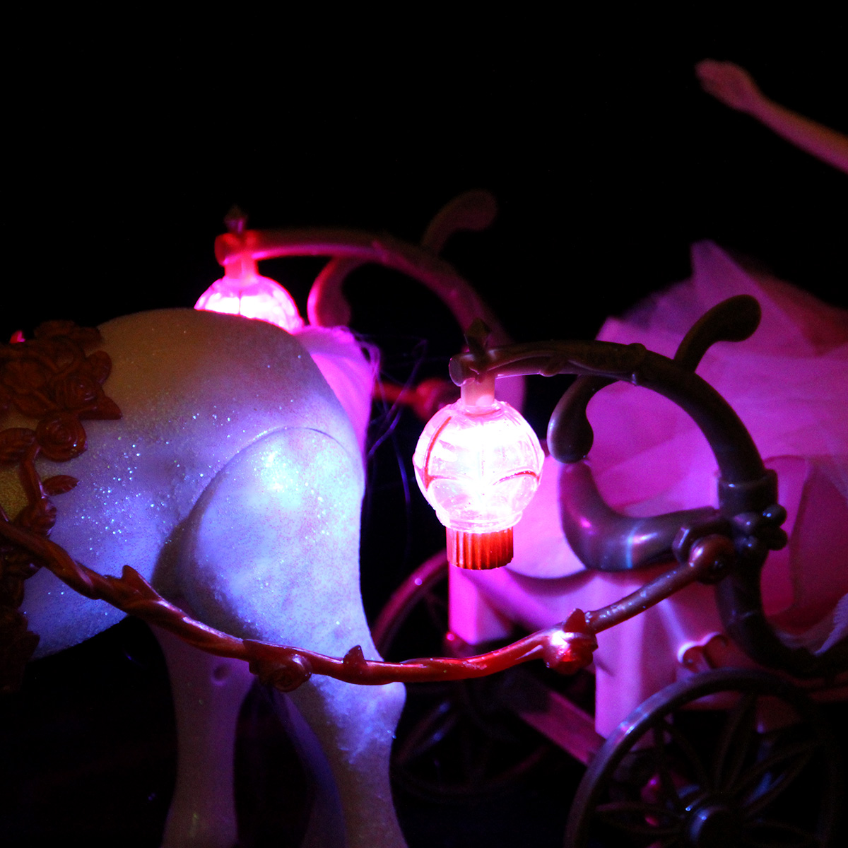 Меняющаяся подсветка фонариков на карете. Катается вперёд и назад.
