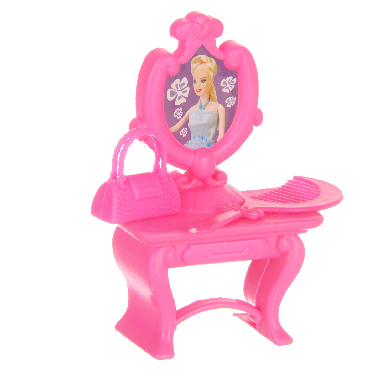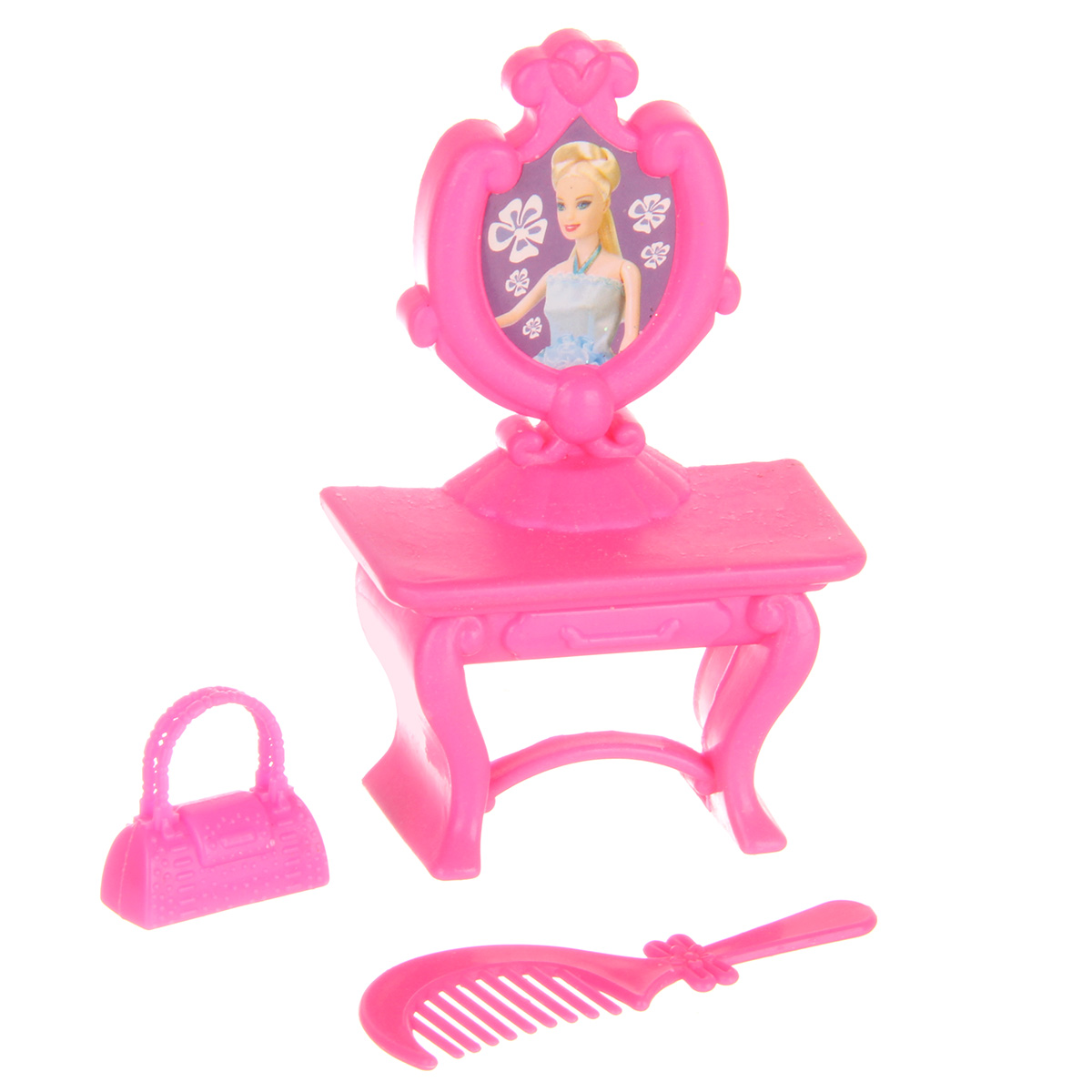 Кукла, лошадь, карета, сумочка, расческа, туалетный столик.