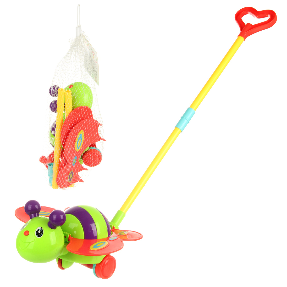 В наборе игрушка – каталка, 4 предмета для сборки ручки.