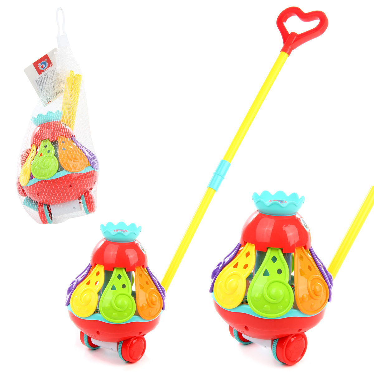 Детская каталка с ручкой станет замечательной находкой для веселых игр малыша. Развивашка изготовлена из прочных и безопасных материалов, прослужит много лет. Оформлена в стилизованном дизайне и яркой расцветке. Удобно взять с собой на прогулку. Игрушка для малышей катается вперед-назад, лепестки при этом раскрываются, издает звон. Такая каталка для малышей станет замечательным подарком детям, мальчику, девочке, на новый год, день рождения и на любой другой повод. Развивающая игрушка для развития координации подходит для детей до 3 лет. Размер игрушки каталки 15х15х19 см. Упаковка 19х17х36 см. Ручка 50 см. Изготовлено из качественного полимера.