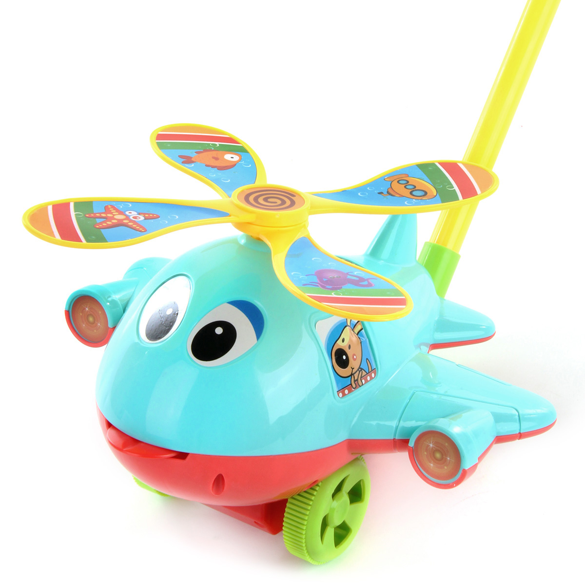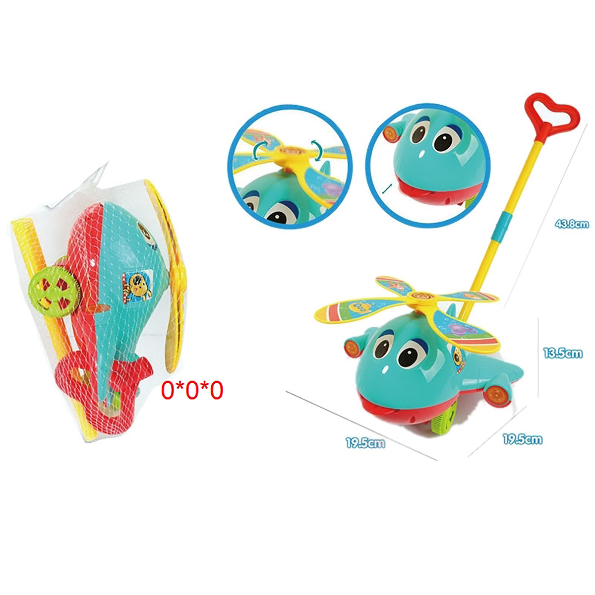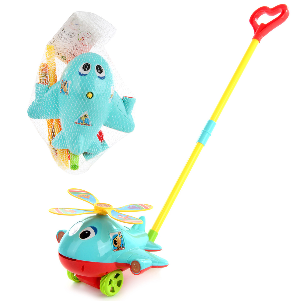 Игрушка каталка для малышей замечательно дополнит активные игры на улице. Катается вперёд и назад, лопасти крутятся, высовывает язык, издает звенящий звук при движении. Изготовлена из прочных и долговечных материалов. Оформлена в яркой расцветке. Легко собирается и разбирается, оснащена удобной для хвата ручкой.