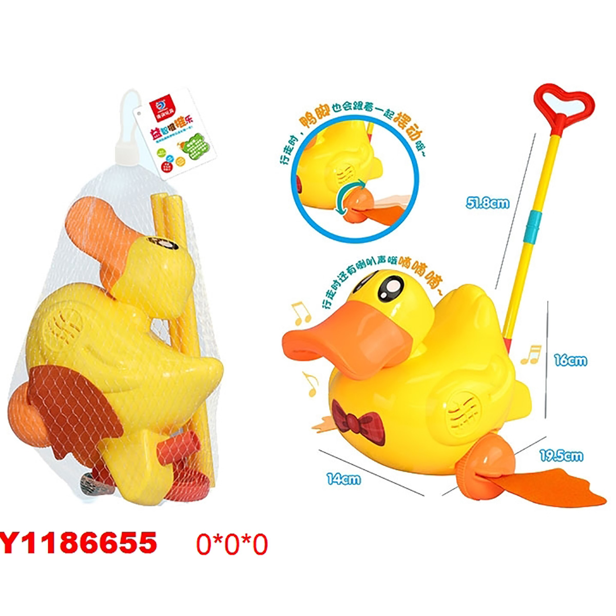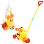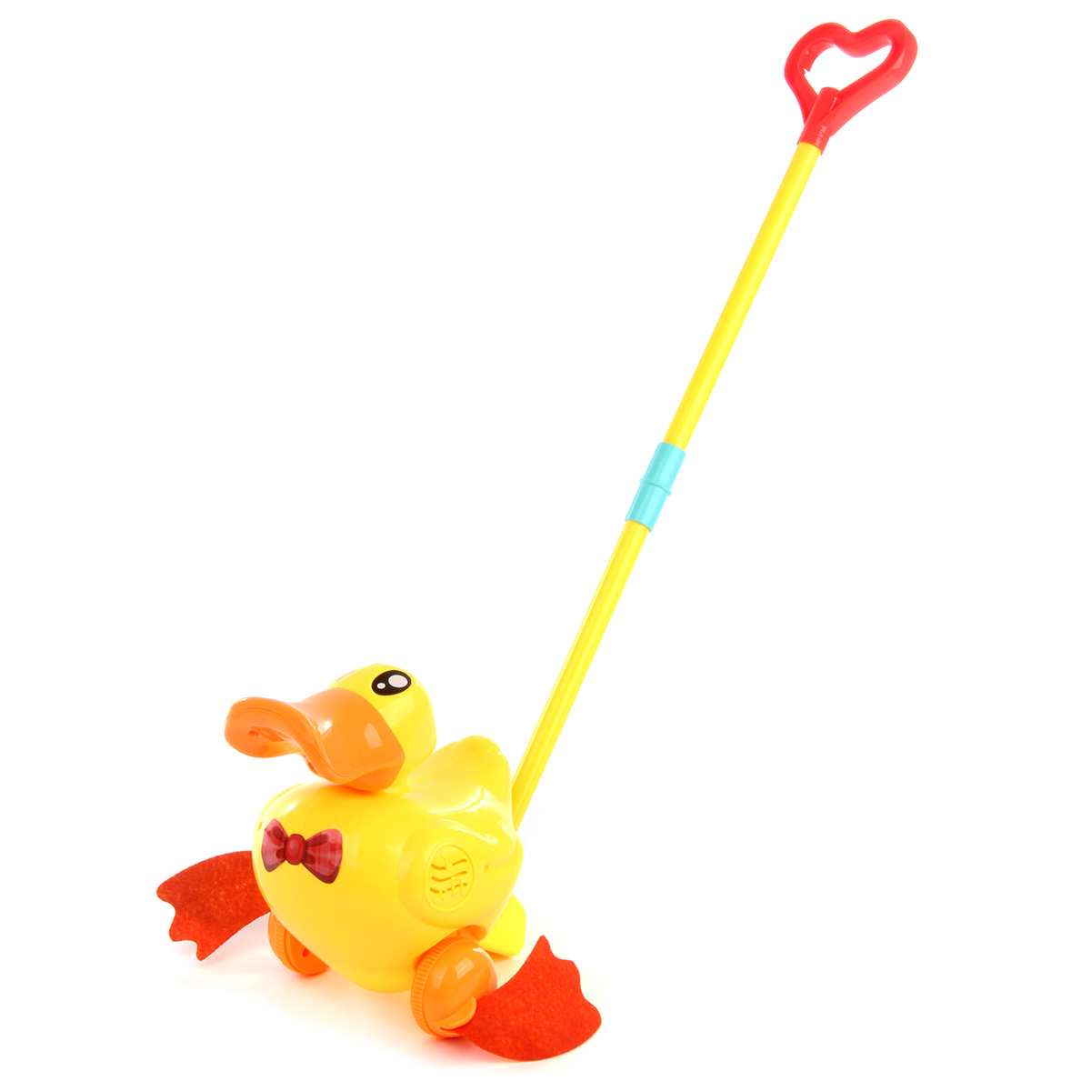 Катается вперёд и назад, оснащена ручкой для удобного хвата, издает писк при движении. Мягкие тканевые ножки.