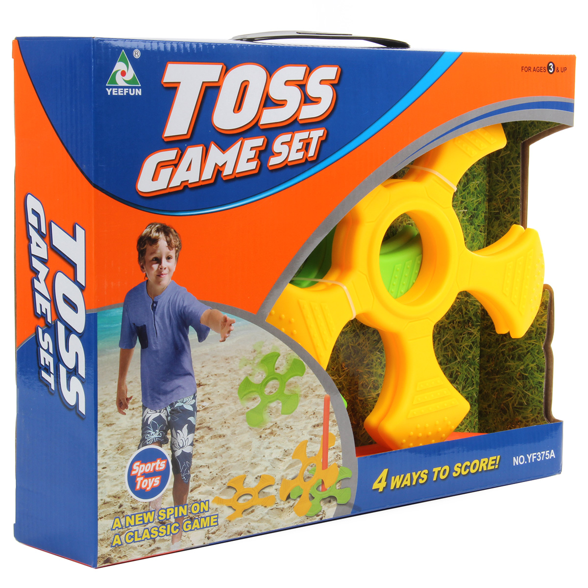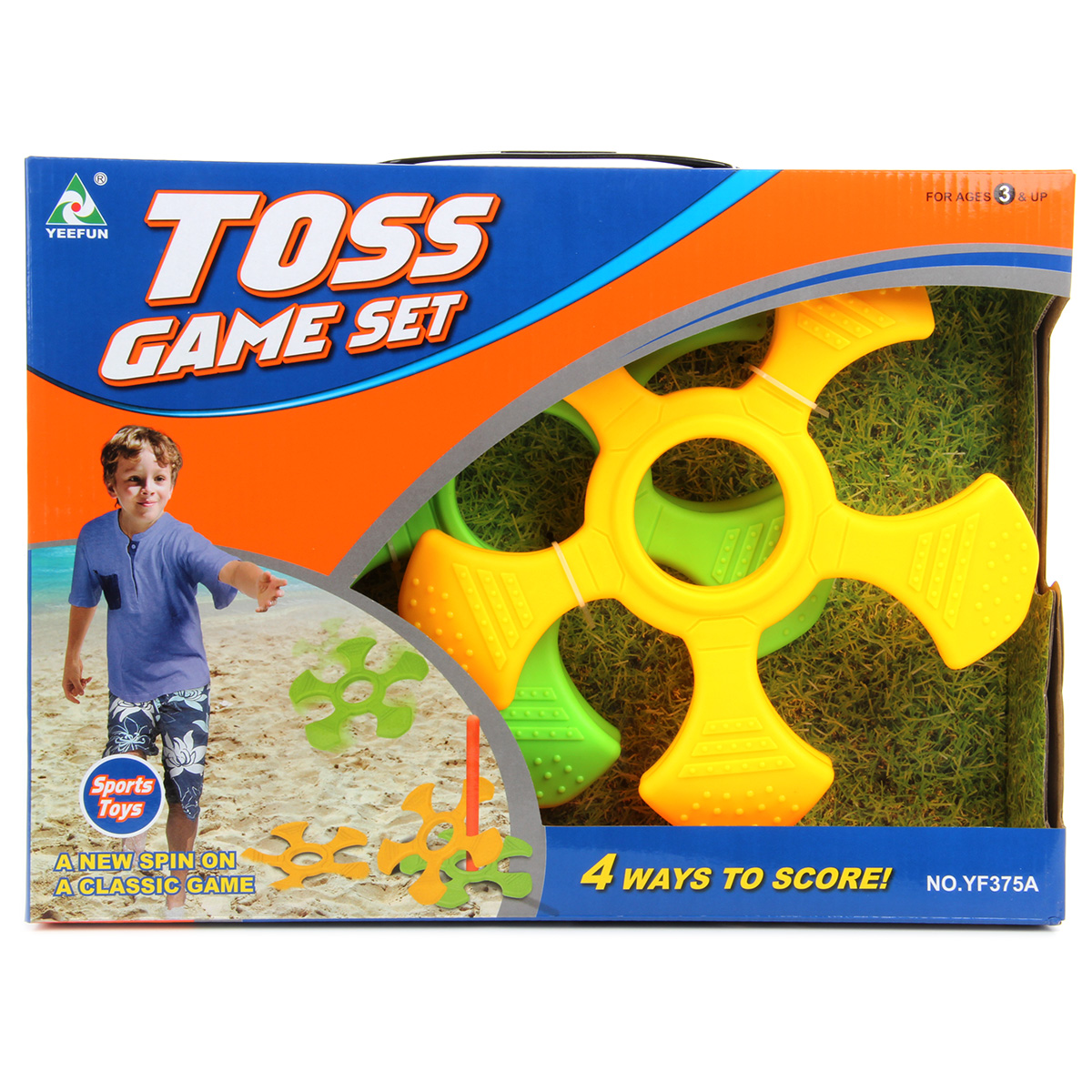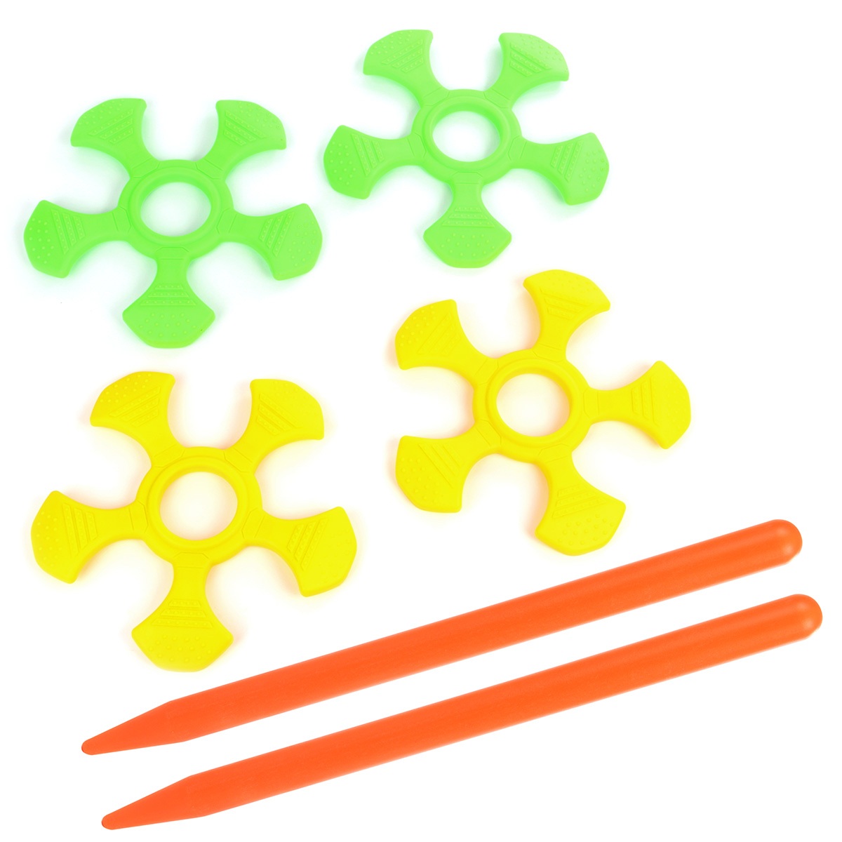 Метко кидаем - в цель попадаем. Очень полезная игрушка для тренировки ловкости, меткости и координации движений. В комплект входят 2 палочки и 4 снаряда-кольца. Установите палочки в вертикальном положении и забрасывайте на них снаряды, стараясь нанизать на палочки. Кто больше всех забросил снарядов на палочки, тот и победил. Можно придумать и свои правила игры, например, если снаряд коснулся выступом палочки, присуждается 5 очков, центр снаряда коснулся палочки - 10 очков. Развлечение идеально подходит для игр во дворе или дома, развивает соревновательный дух, концентрацию внимания, глазомер, помогает поддерживать хорошую физическую форму. Можно играть одному или целой командой. Игрушка изготовлена из высококачественного и безопасного полимерного материала. Размеры снаряда: 24*2,5*24 см. Размеры палочки: 36*2*2 см. Размеры коробки: 38*7,5*28 см.