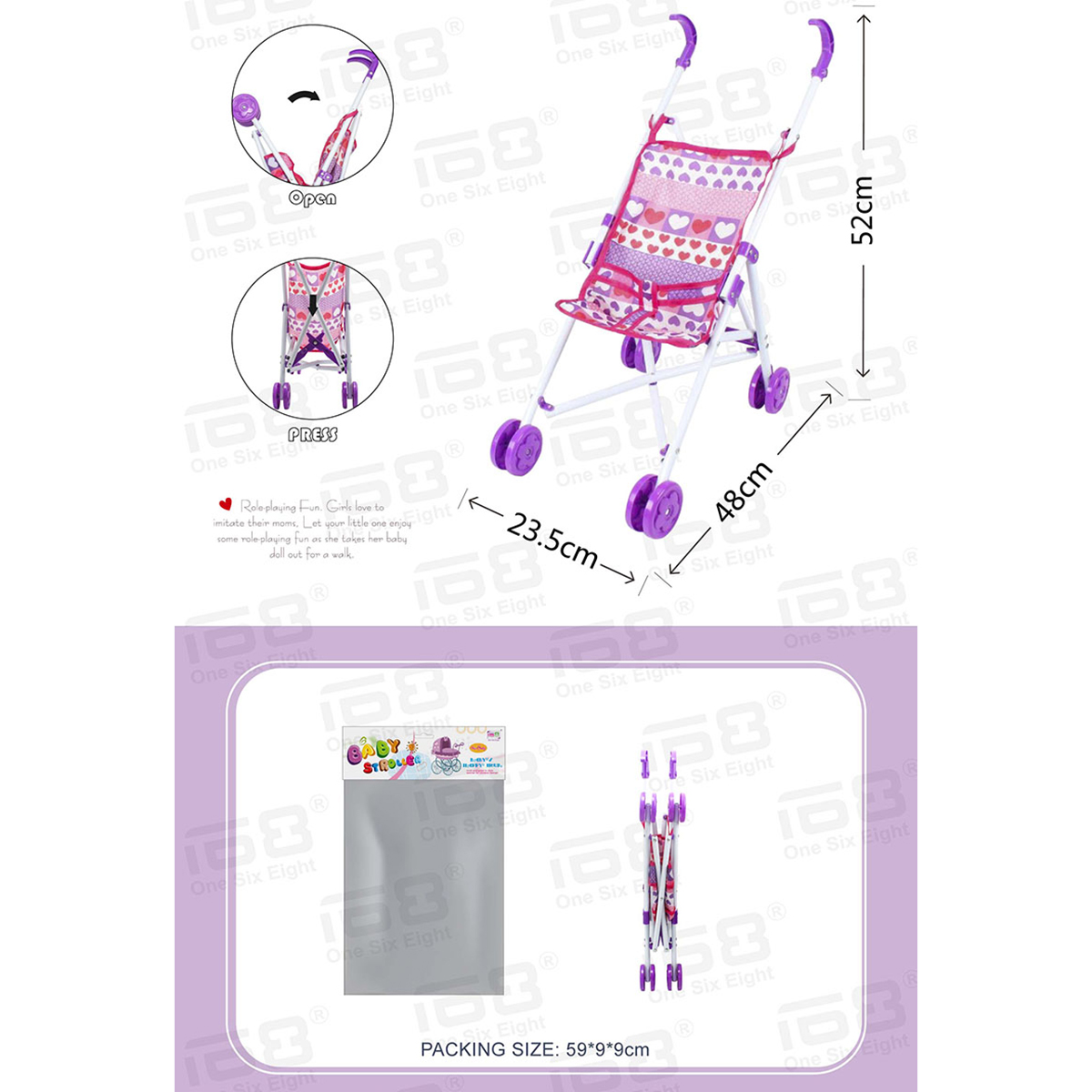Металлический каркас, съемное сиденье, трехточечный ремень безопасности, удобство складывания и хранения, двойные колеса, если детская коляска для кукол, то только такая. Игрушечная коляска трость выполнена в красивой расцветке, игрушка для девочки изготовлена из прочных и долговечных материалов.