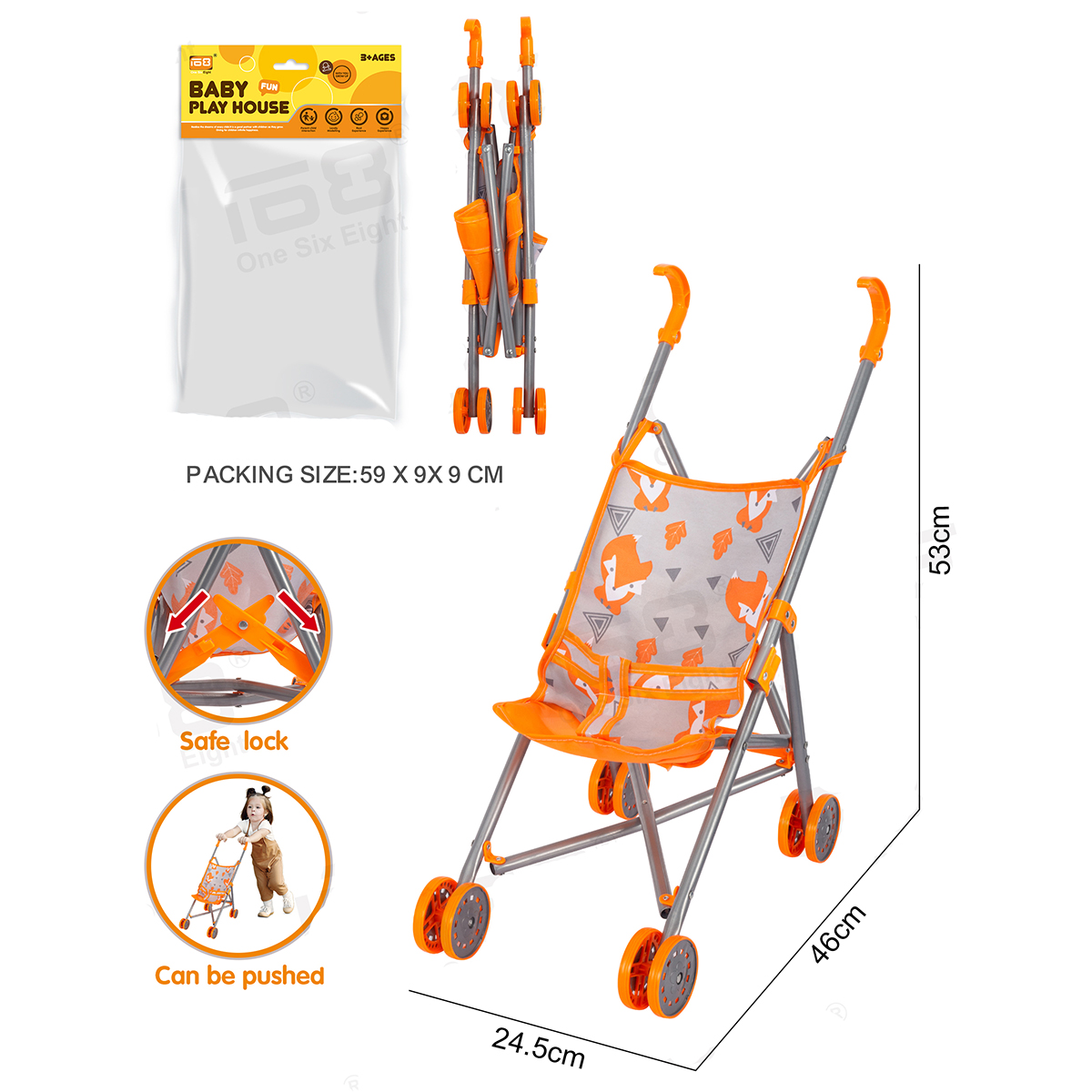Прогулочная коляска трость станет отличным аксессуаром для прогулок с куколками. Детская коляска изготовлена из прочных и долговечных материалов, металлический каркас. Игрушечная коляска оформлена в реалистичном дизайне и яркой расцветке. Игрушка для девочки легко складывается и раскладывается, катается вперед назад. В собранном виде компактная трость, занимает мало место, удобно взять с собой в садик, в гости, на прогулку. Подходит для пупсов до 30 см. Оснащена трехточечным ремнем безопасности. Текстильное сиденье снимается, легко стирать.