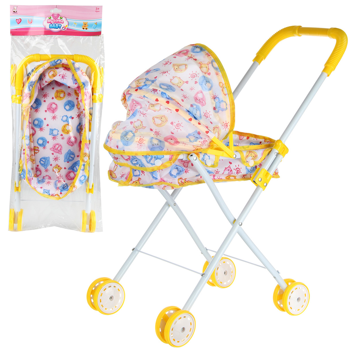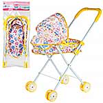 Металлический каркас, съемная люлька, подвижный козырек, удобство складывания и хранения, двойные колеса, если детская коляска для куклы, то только такая. Коляска детская игрушечная выполнена в красивой расцветке, изготовлена из прочных и долговечных материалов.
