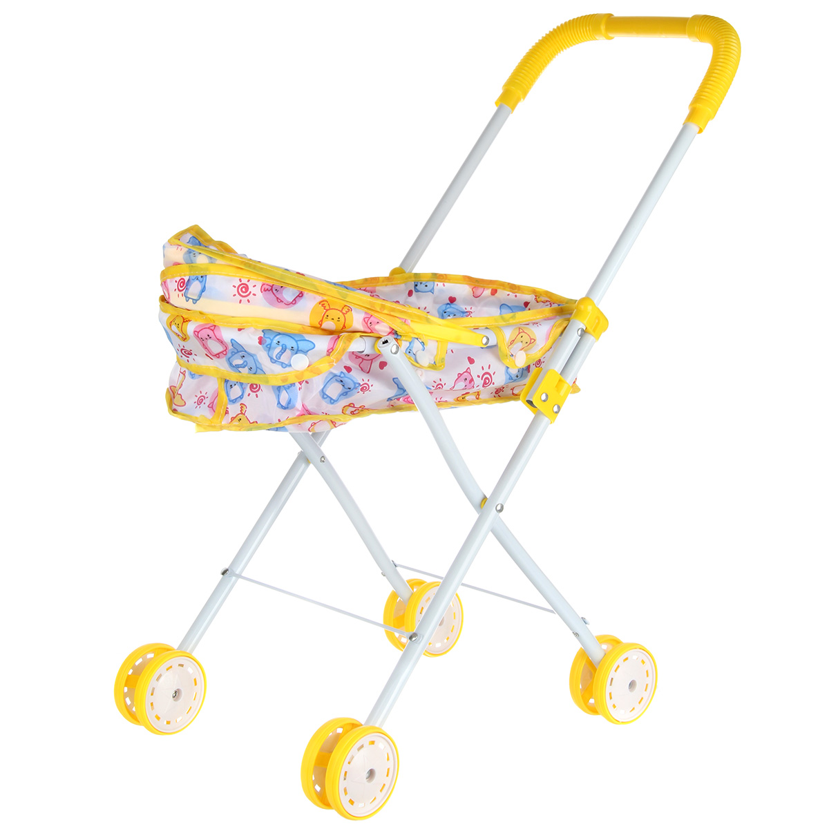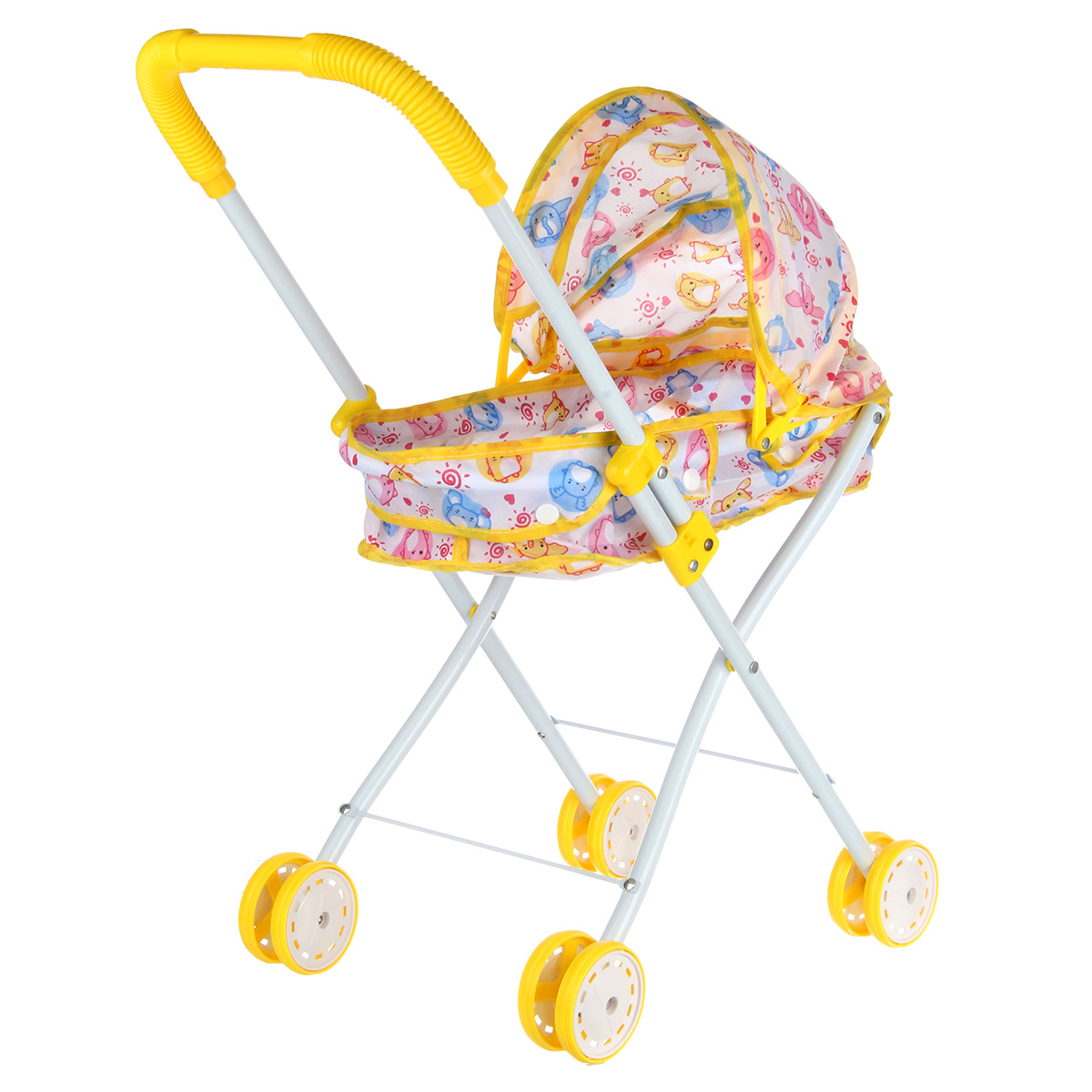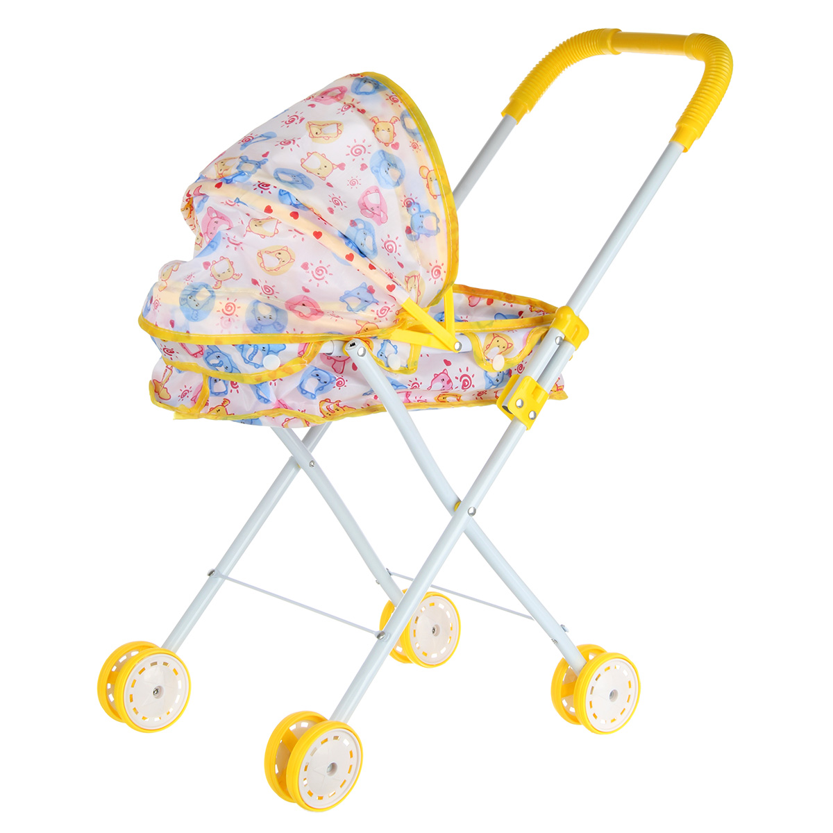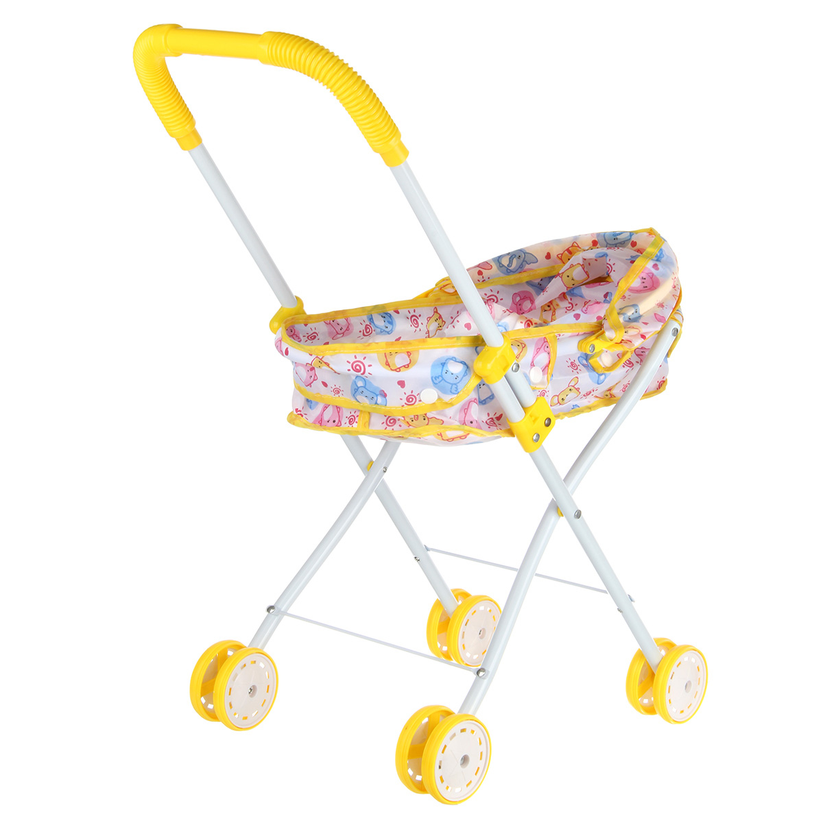 Коляска легко складывается и раскладывается, раскладывающийся механизм коляски позволяет брать ее с собой в путешествия, в сложенном виде удобно хранить, занимает мало места. Игрушечная коляска для долгих и веселых прогулок на свежем воздухе станет прекрасным подарком для девочки.