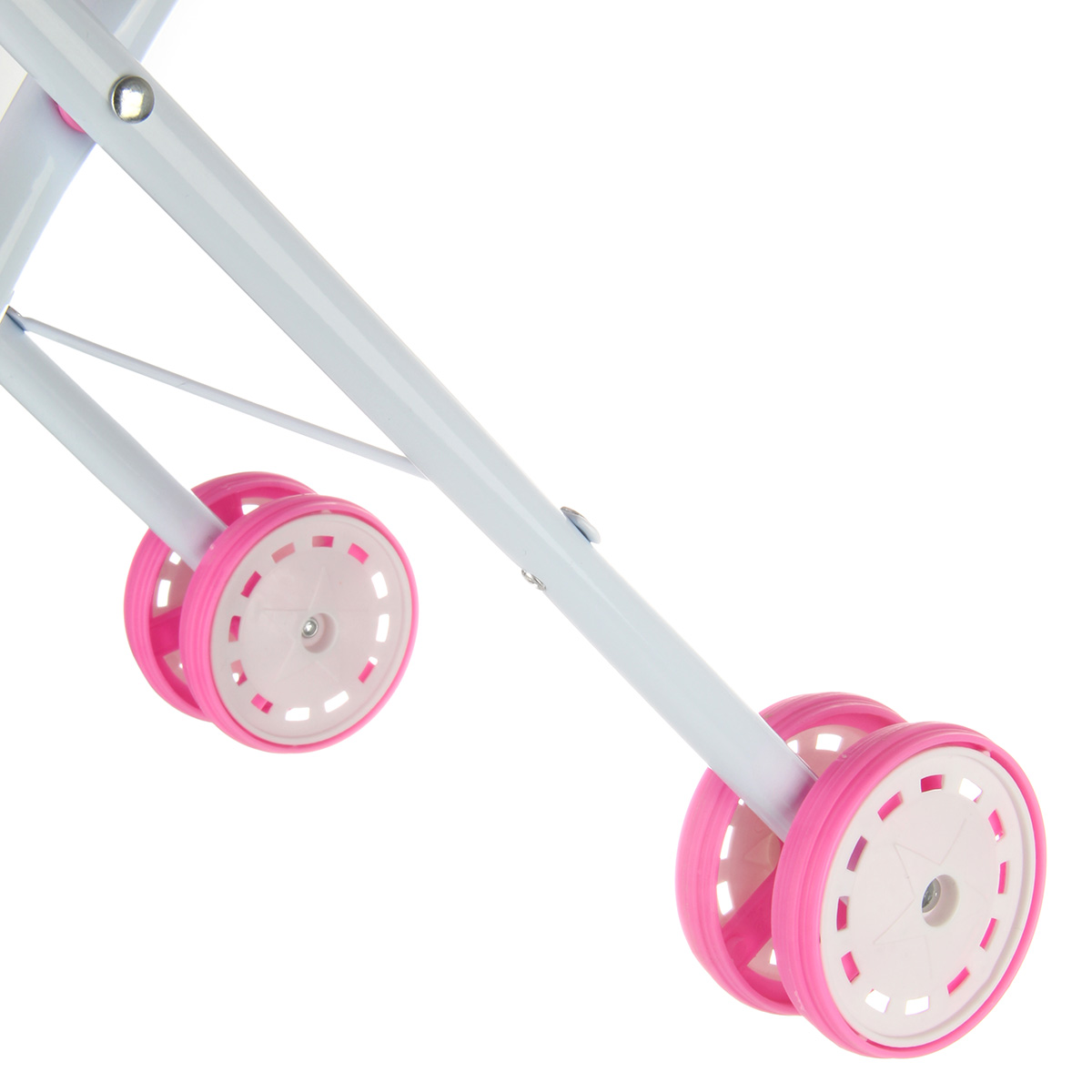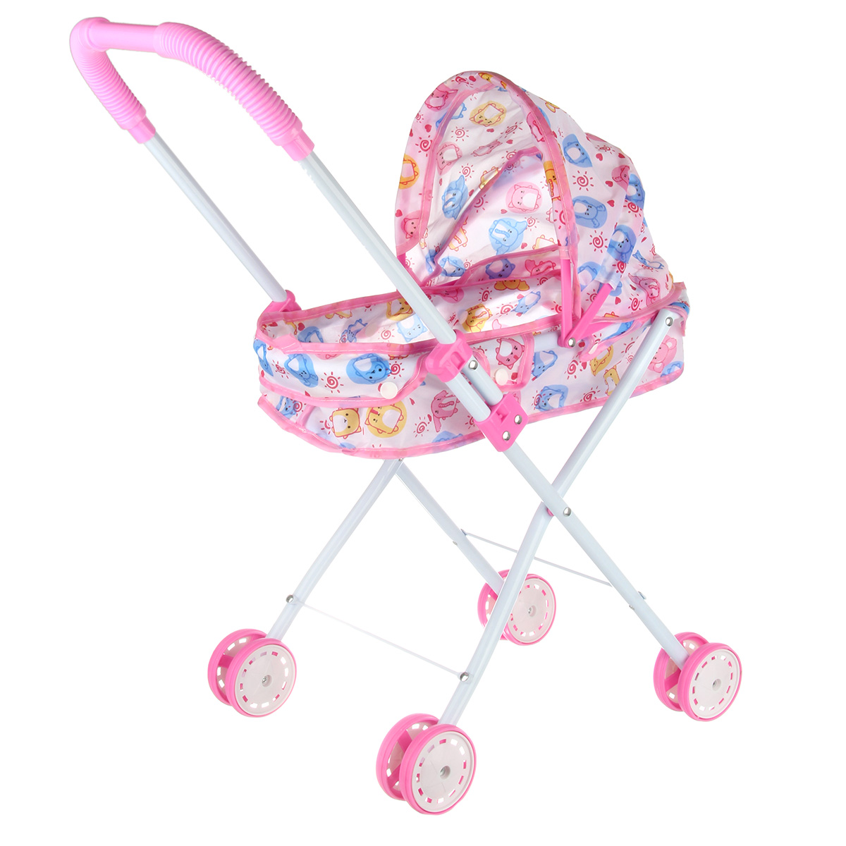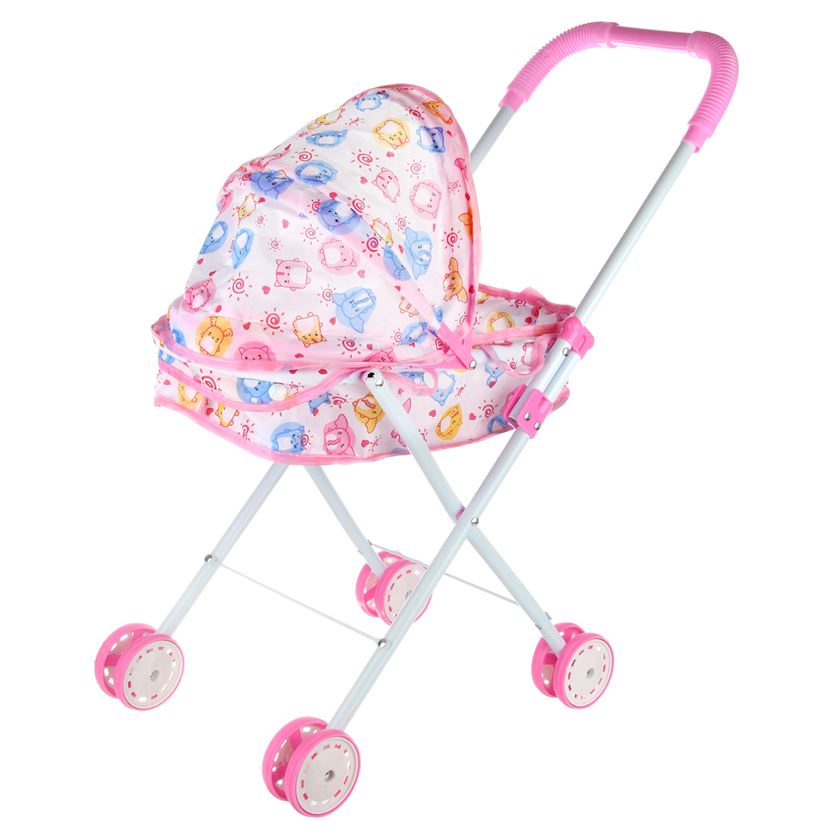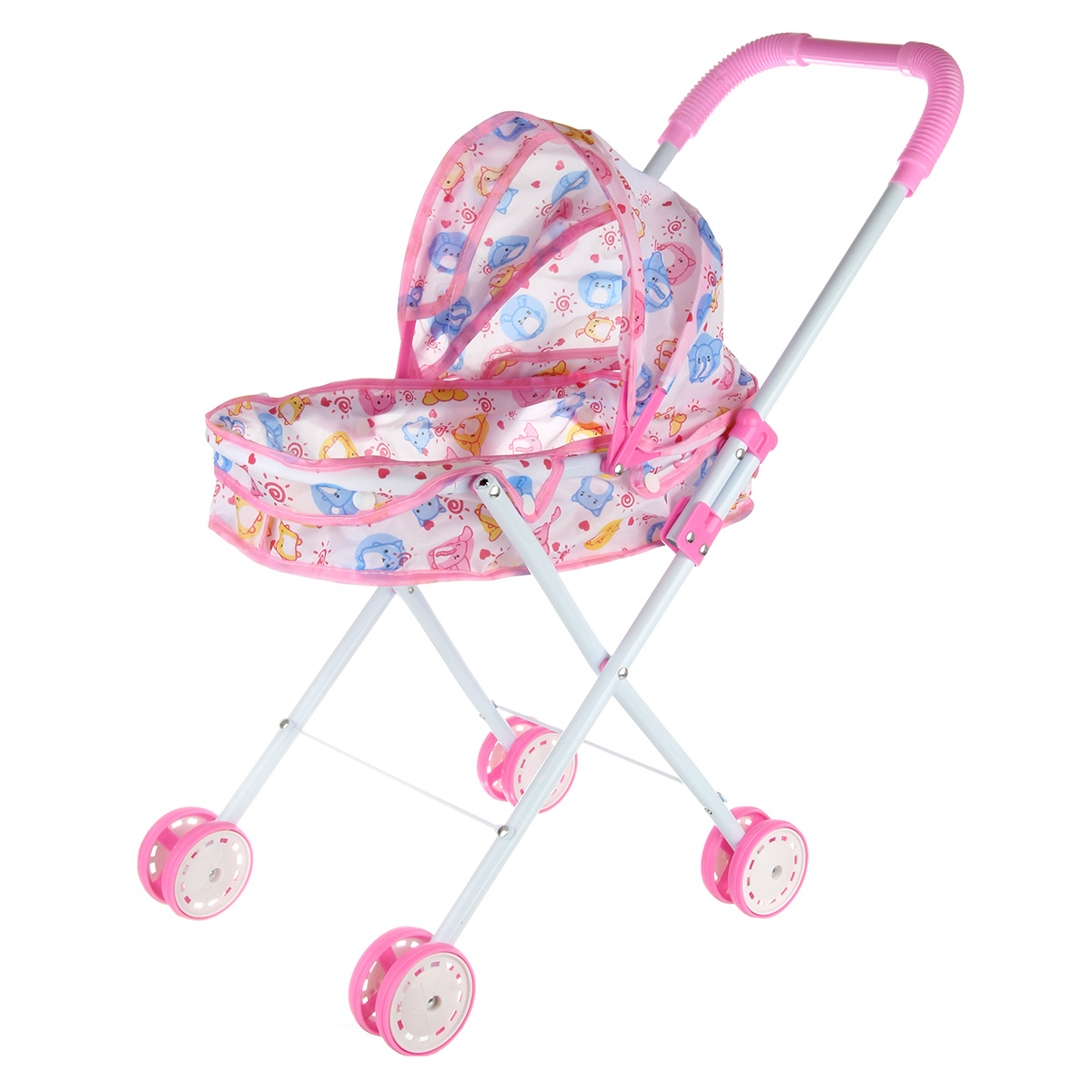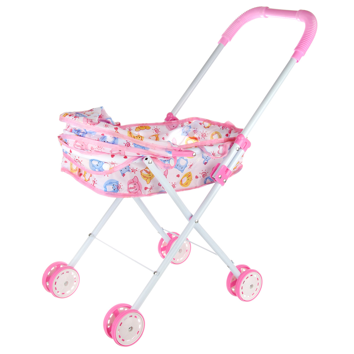 Коляска легко складывается и раскладывается, раскладывающийся механизм коляски позволяет брать ее с собой в путешествия, в сложенном виде удобно хранить, занимает мало места. Игрушечная коляска для долгих и веселых прогулок на свежем воздухе станет прекрасным подарком для девочки.