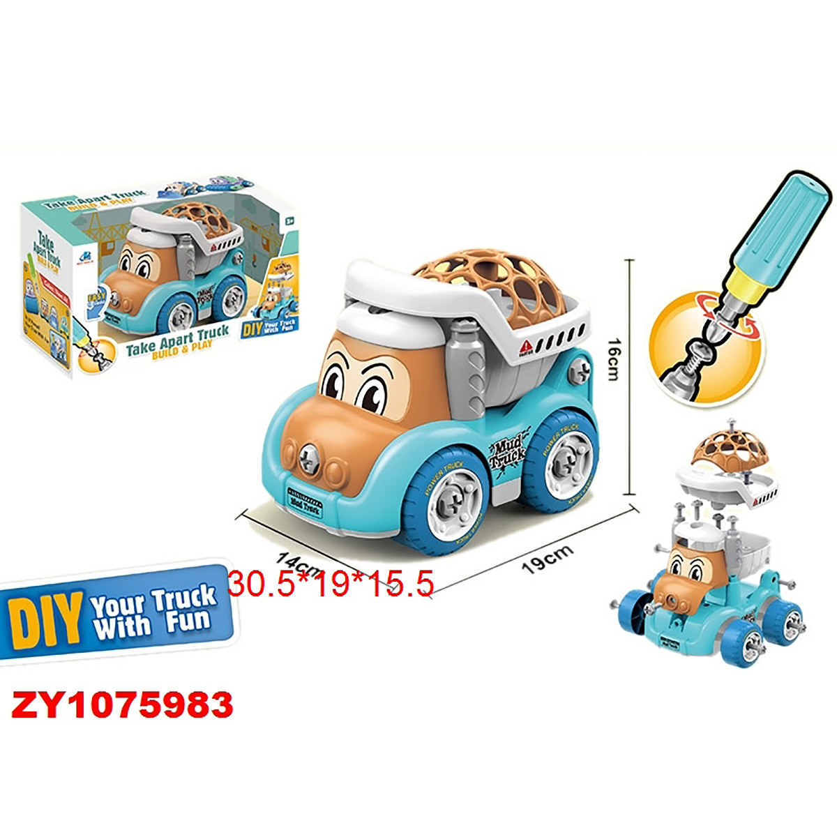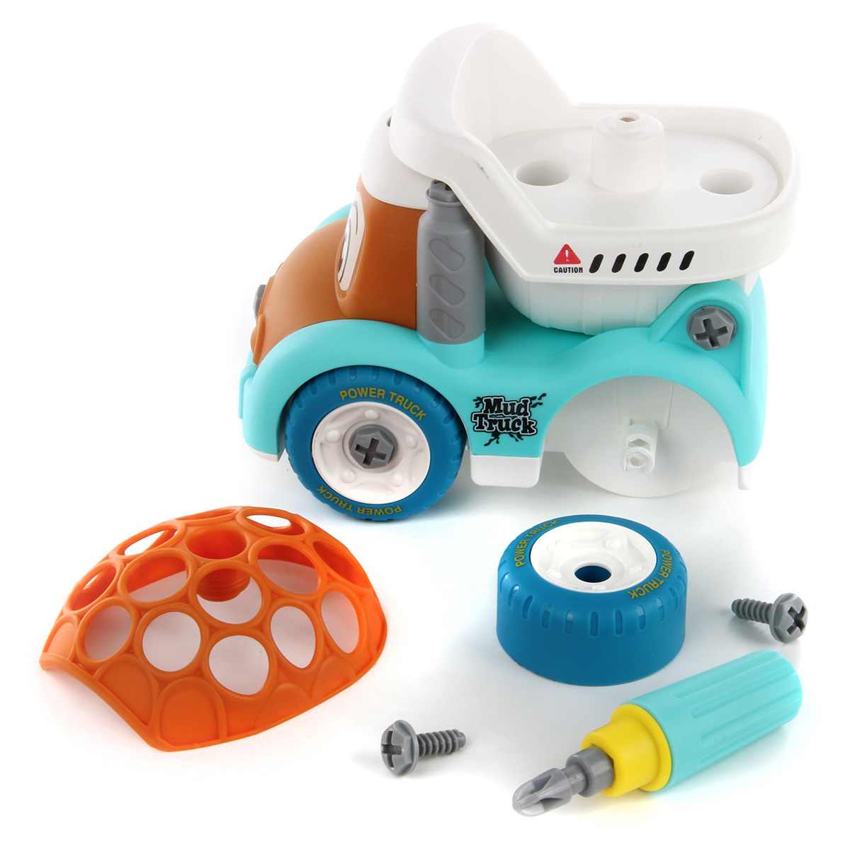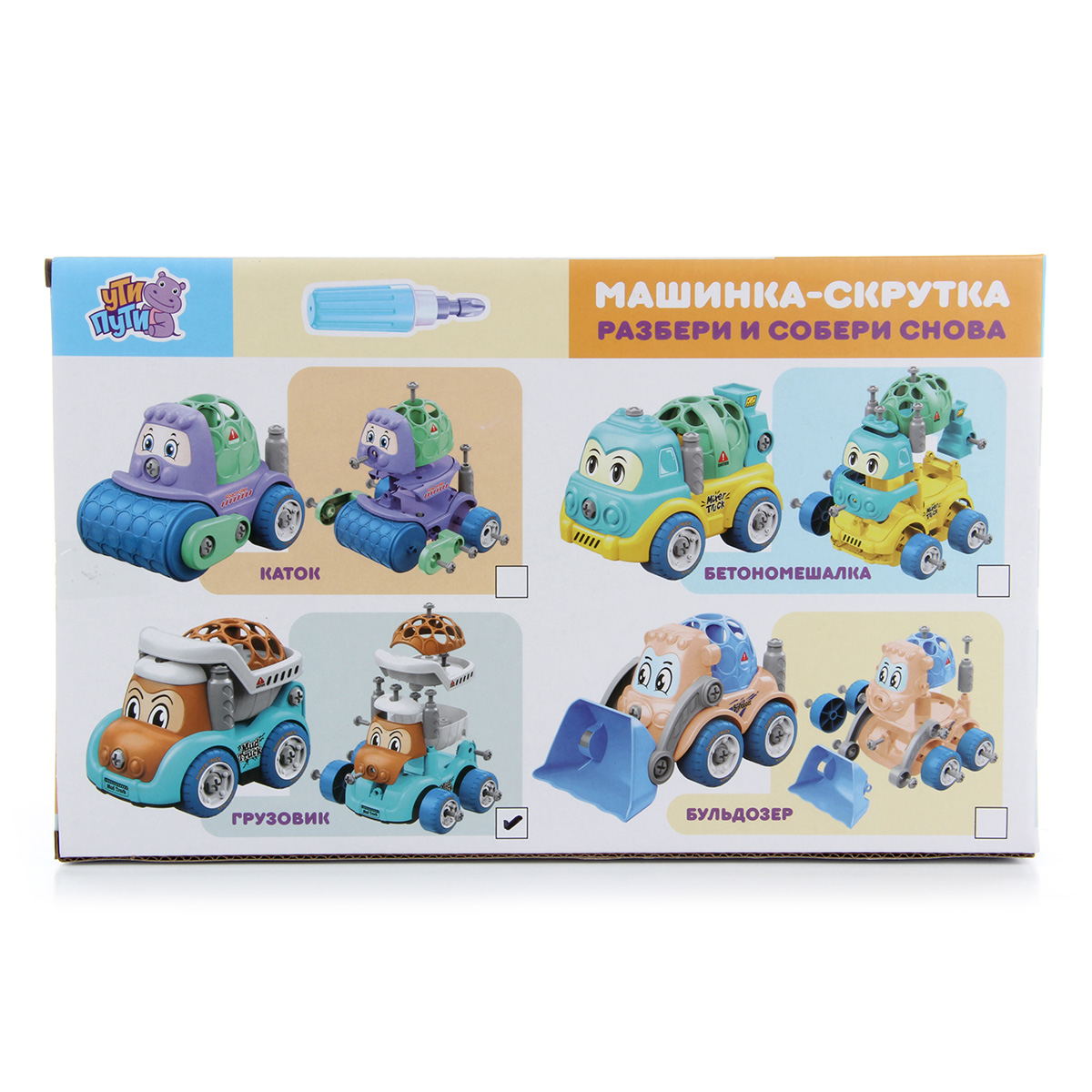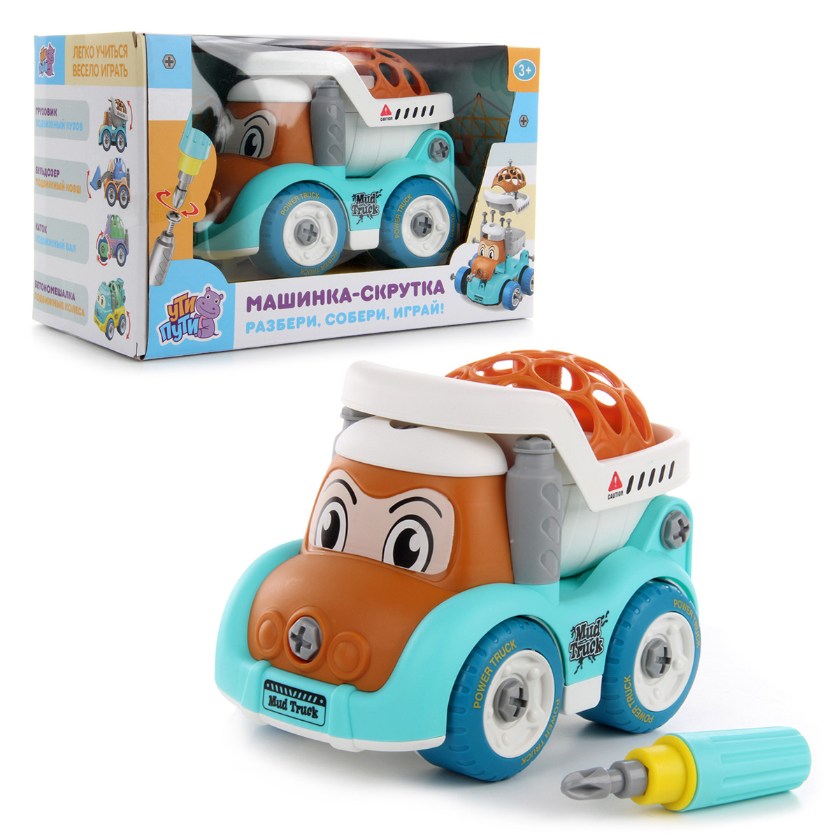 Полезный и занимательный подарок для всех юных любителей конструкторов - разбирающаяся игрушка. Эта яркая машинка привлекает внимание интересным исполнением и функциональностью. В комплект входят грузовичок и крестовая отвертка. С помощью отвертки, раскручивая винты, можно разобрать машинку на части. Снимаются колеса, кузов, боковые трубы, верхняя часть кабины, кабина. Кузов разбирается на части, днище машинки разбирается на 2 части. В собранном виде машинка катается вперед-назад, поднимается и опускается кузов. Игрушка отлично развивает мелкую моторику рук, координацию движений, логическое и пространственное мышление, навыки моделирования, воображение. Игрушка изготовлена из высококачественного и безопасного полимерного материала. Размеры машинки: 20*13*15,5 см. Размеры отвертки: 11*3*3 см. Размеры коробки: 31*15,5*19 см.