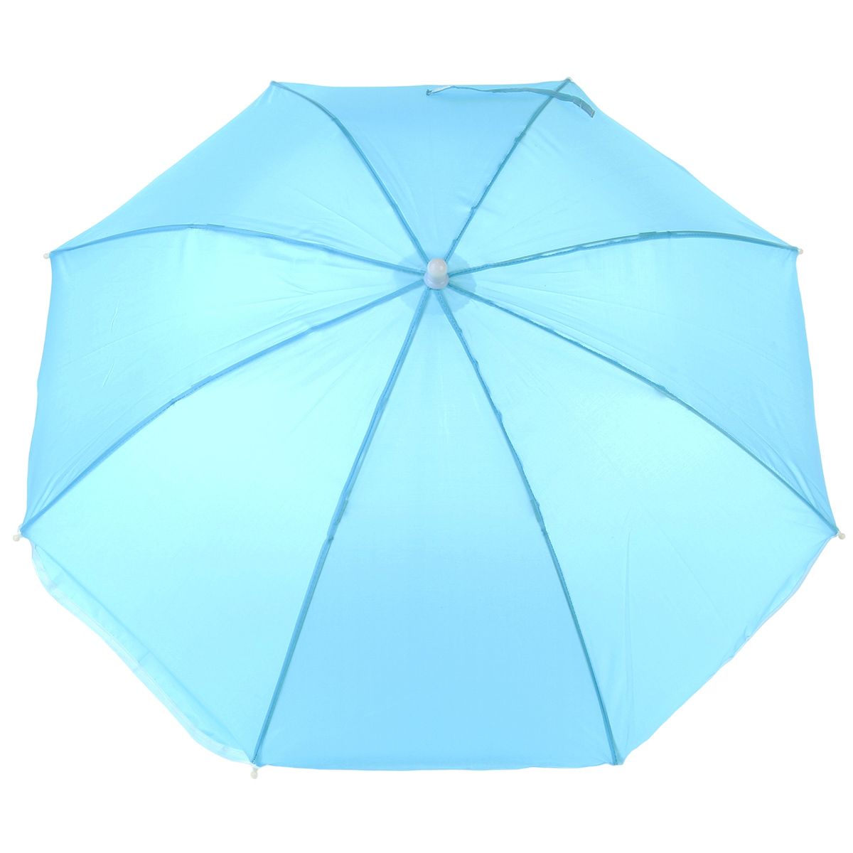 В комплекте есть зонтик, зонт крепится к стулу, положение зонта можно менять, держатель двигается вперед, назад, вправо, влево. Зонт механический, закрывается на лямку с липучкой. Зонтик детский защищает от солнечных лучей и непогоды.