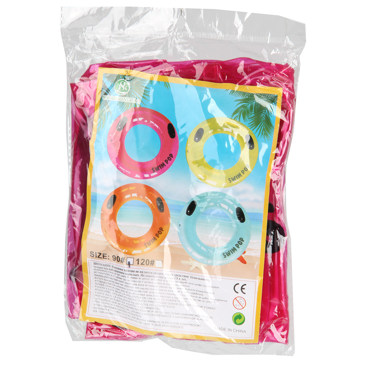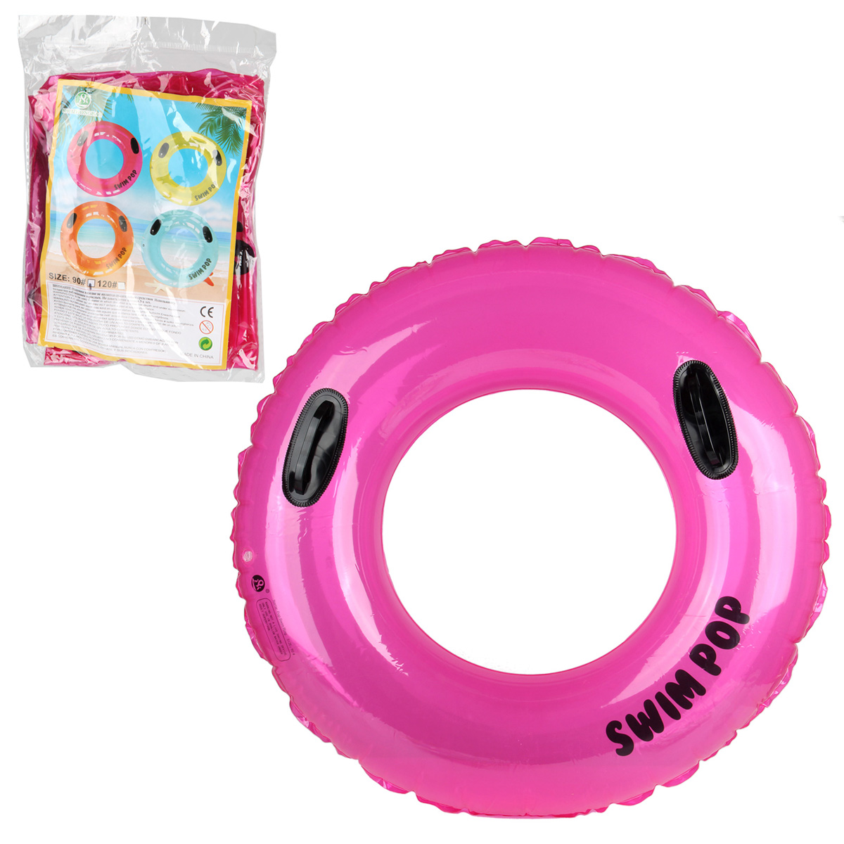 Круг легко надувается и сдувается, занимает мало места в сдутом состоянии. Есть 2 ручки, удобно держаться. Красочный дизайн круга позволит не потерять его из виду.