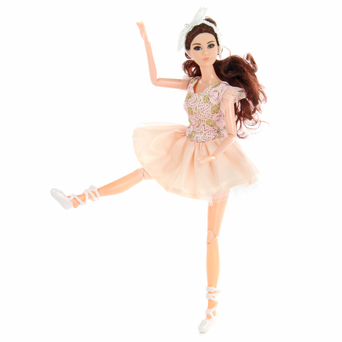 Лучший подарок для девочки - куколка. Эта красотка на пуантах умеет делать изящные па и фуэте. У куколки двигаются ручки и ножки, крутится голова. Куколка шарнирная, ручки сгибаются в локтях и запястьях, ноги в коленях. Голова прошита волосами полностью, волосы длинные и роскошные, можно делать разные прически. Голова и ручки у куколки мягкие, ножки и корпус тела жесткие. Забота о куколке учит малышку ответственности, улучшает коммуникативные и социальные навыки. Ребенок будет развивать мелкую моторику рук, координацию движений и воображение. Игрушка изготовлена из качественного и безопасного полимерного материала, есть текстильные элементы. Размеры куколки: 7*4*30 см. Размеры коробки: 17*8*33 см.