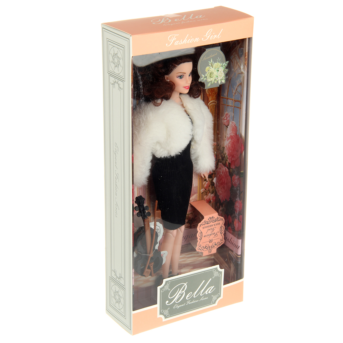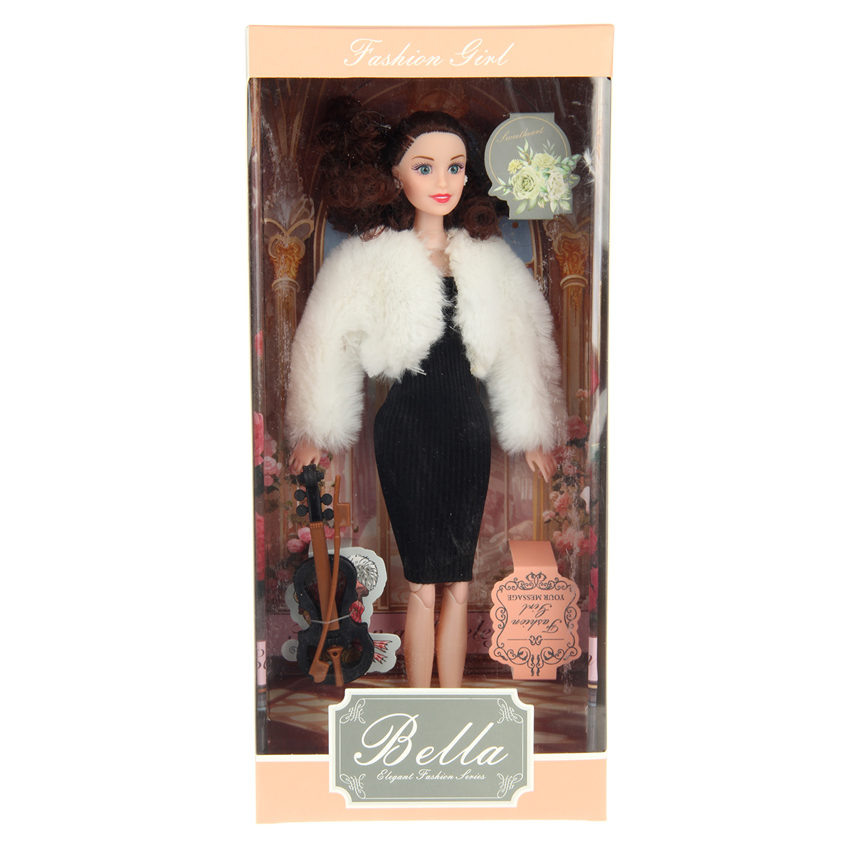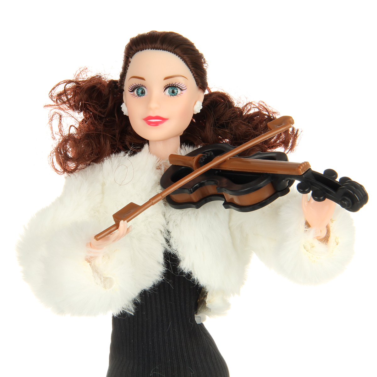 В комплекте кукла шарнирная, скрипка.