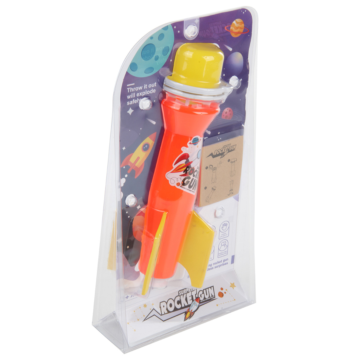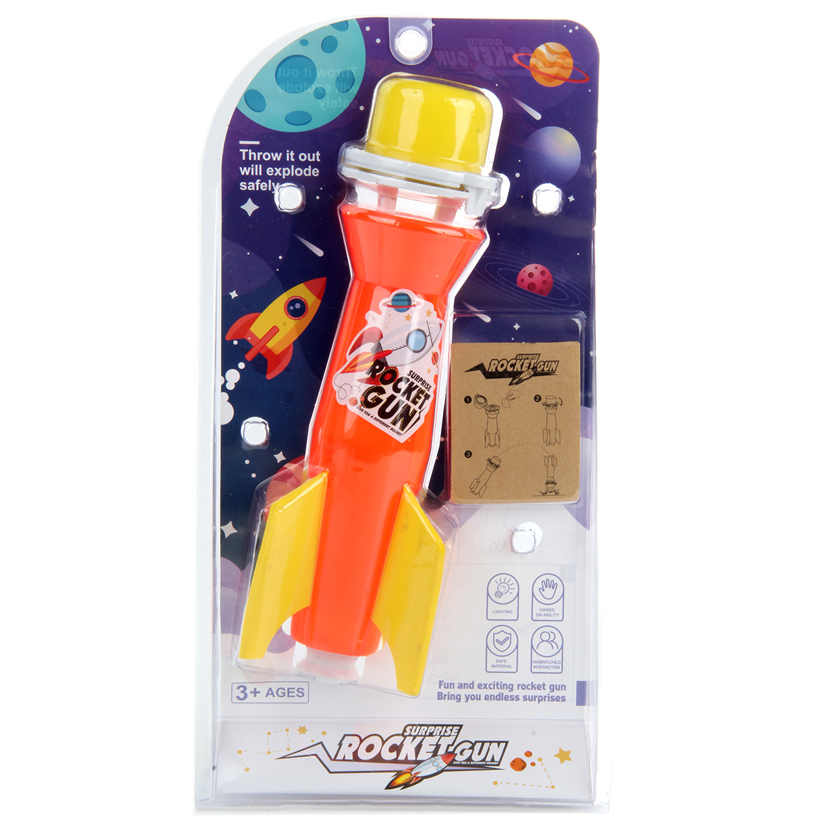 Ракета - замечательная игра для развития мелкой и крупной моторики, координации движений, зрительного восприятия, глазомера, ловкости и сноровки. Игрушка оформлена в яркой и красивой расцветке, которая понравится каждому ребенку. В комплект входит ракета, калька. Функционал игрушки: -калька устанавливается под колпачком ракеты; -при ударе колпак сминается, калька лопается с громким хлопком. Размеры упаковки: 18*6*33 см. Размеры ракеты: 10*10*26 см. Изготовлено из полимерного материала, бумаги.