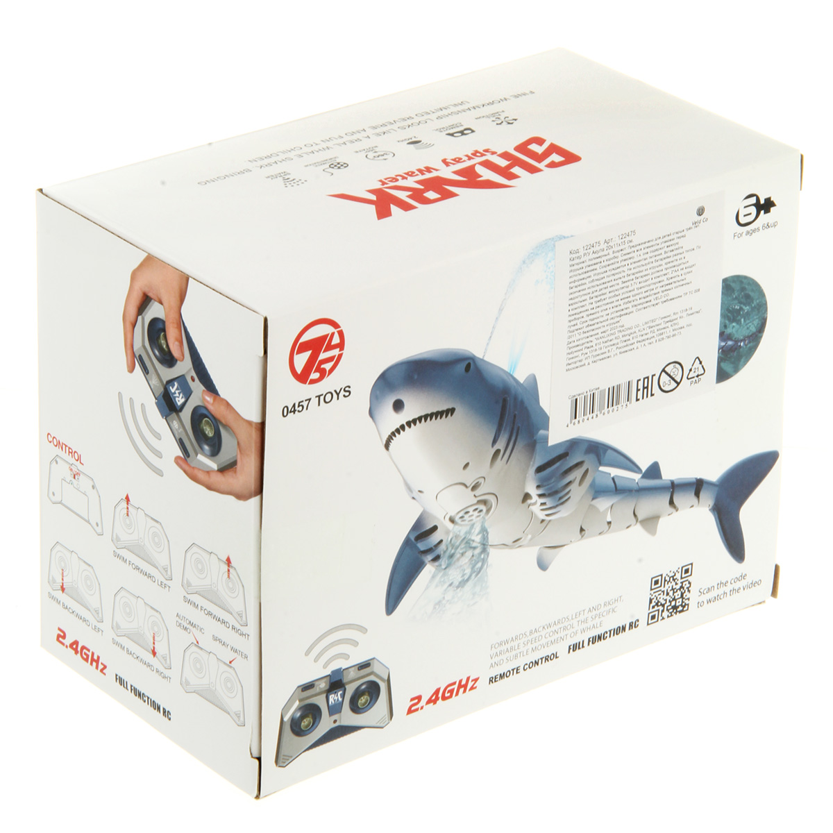 Пульт, игрушка акула на радиоуправлении, аккумулятор, зарядное устройство, инструкция, запасные винты.