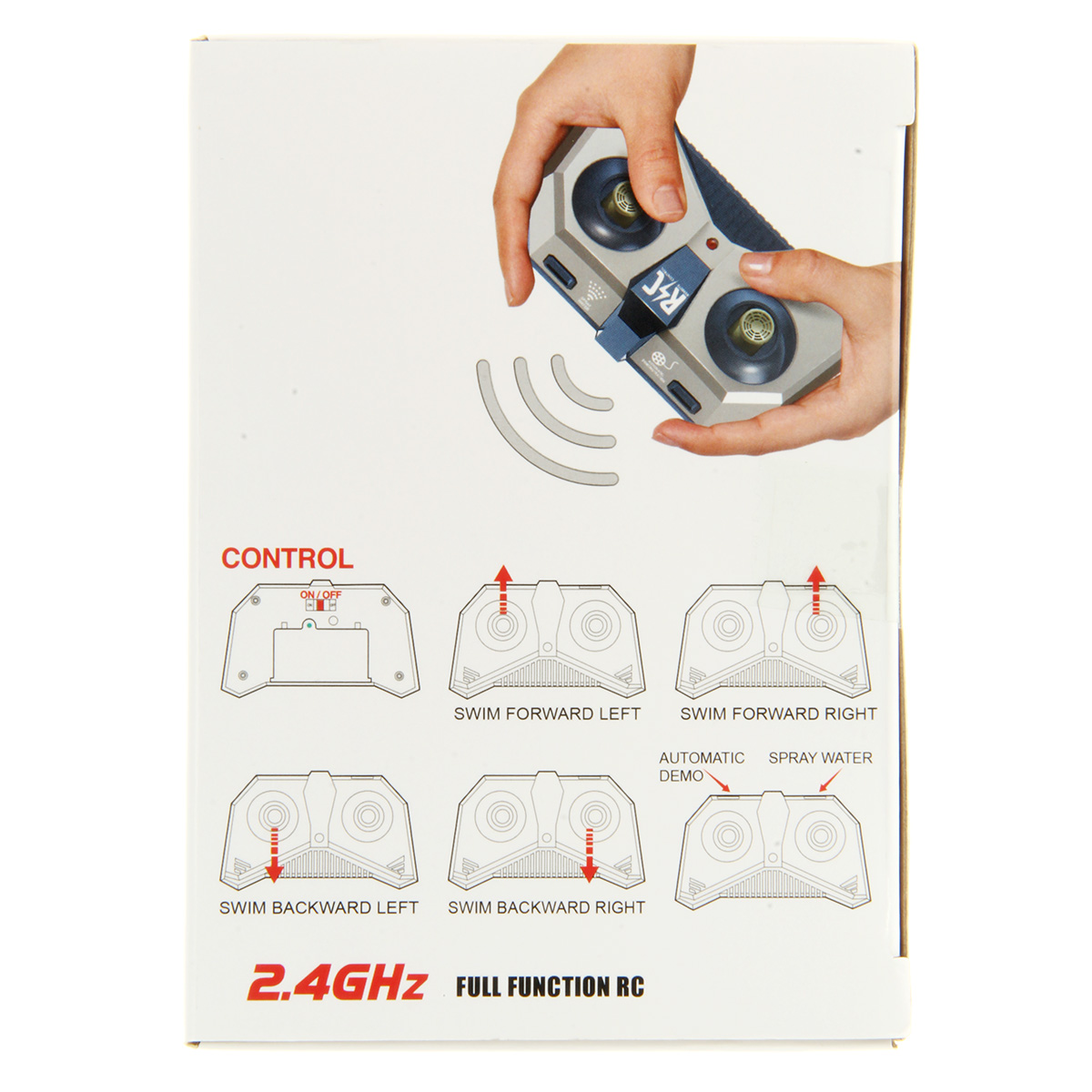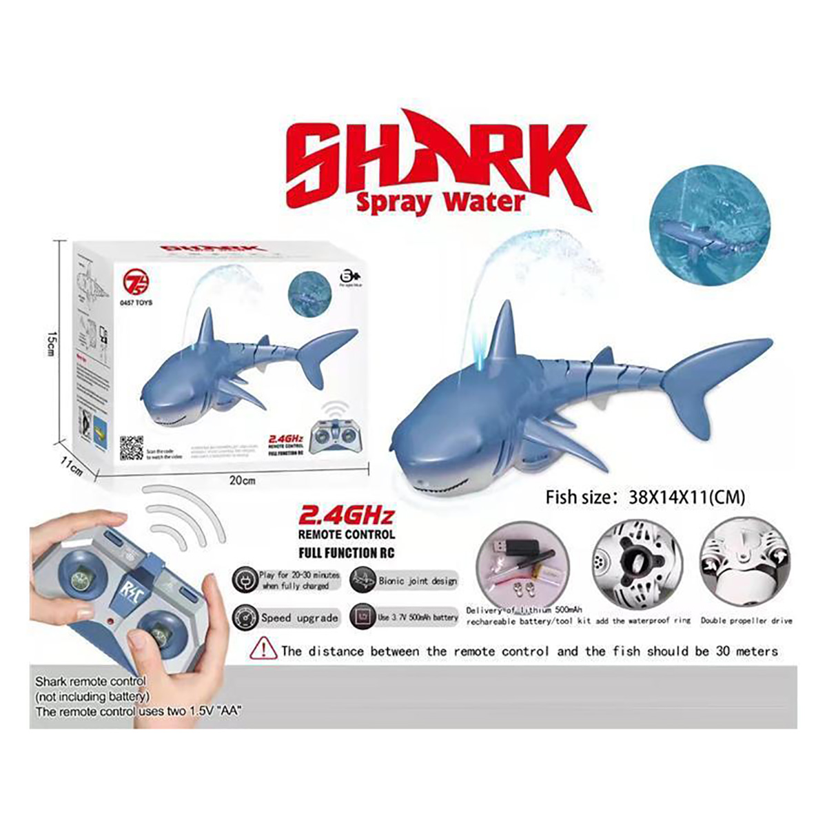 Игрушечная радиоуправляемая акула замечательно дополнит веселые игры с водой. Подсветка лампочки, режим демонстрации и переключения скорости, движение во все стороны, фонтан на спине. Игрушка на пульте управления изготовлена из прочных и долговечных материалов. Оформлена в реалистичной окраске, обладает хорошей детализацией и простым управлением.