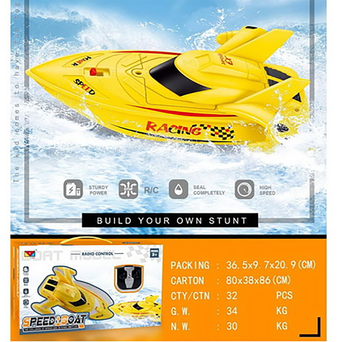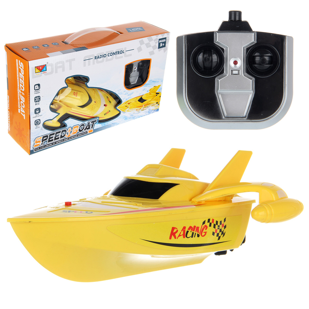 В наборе катер и пульт управления.