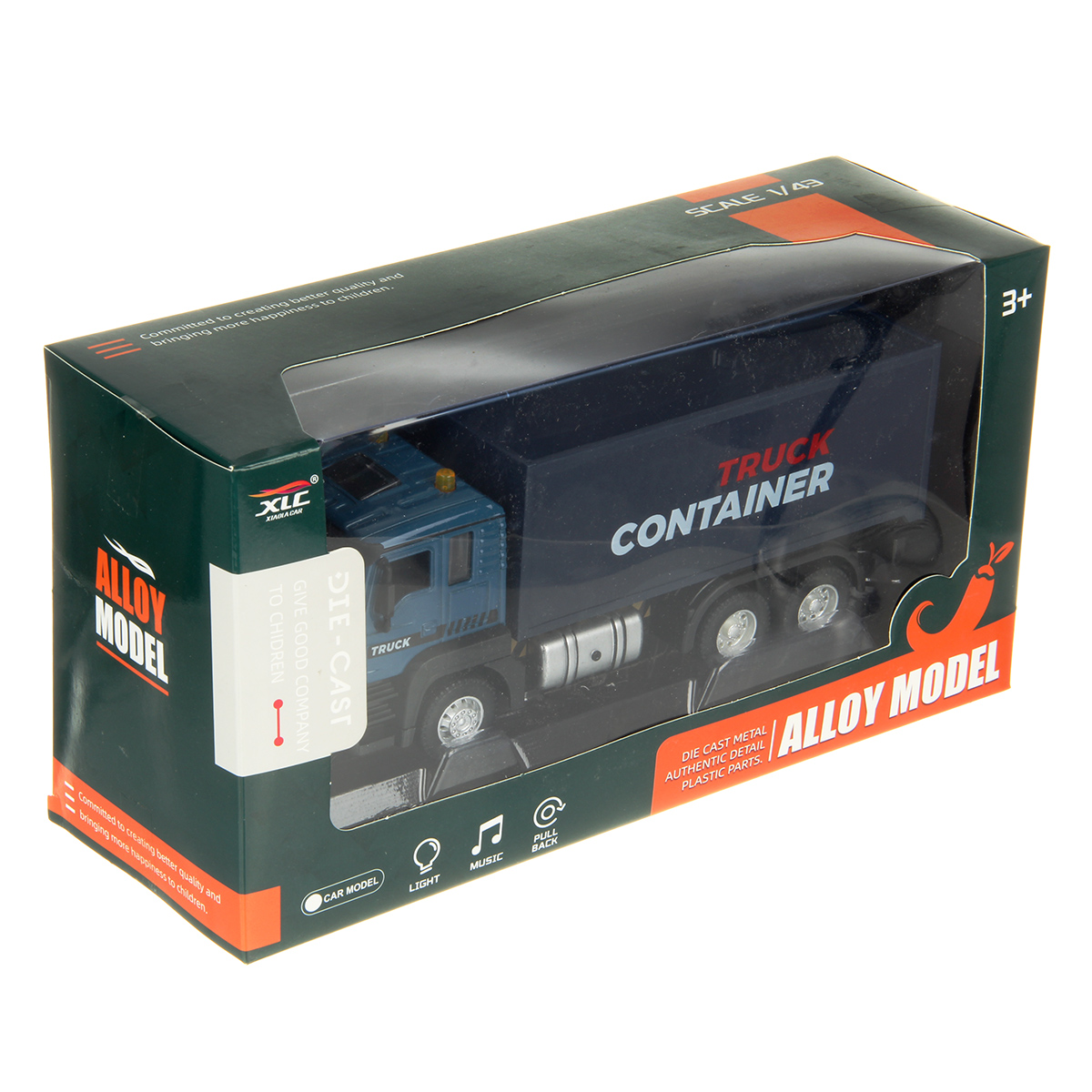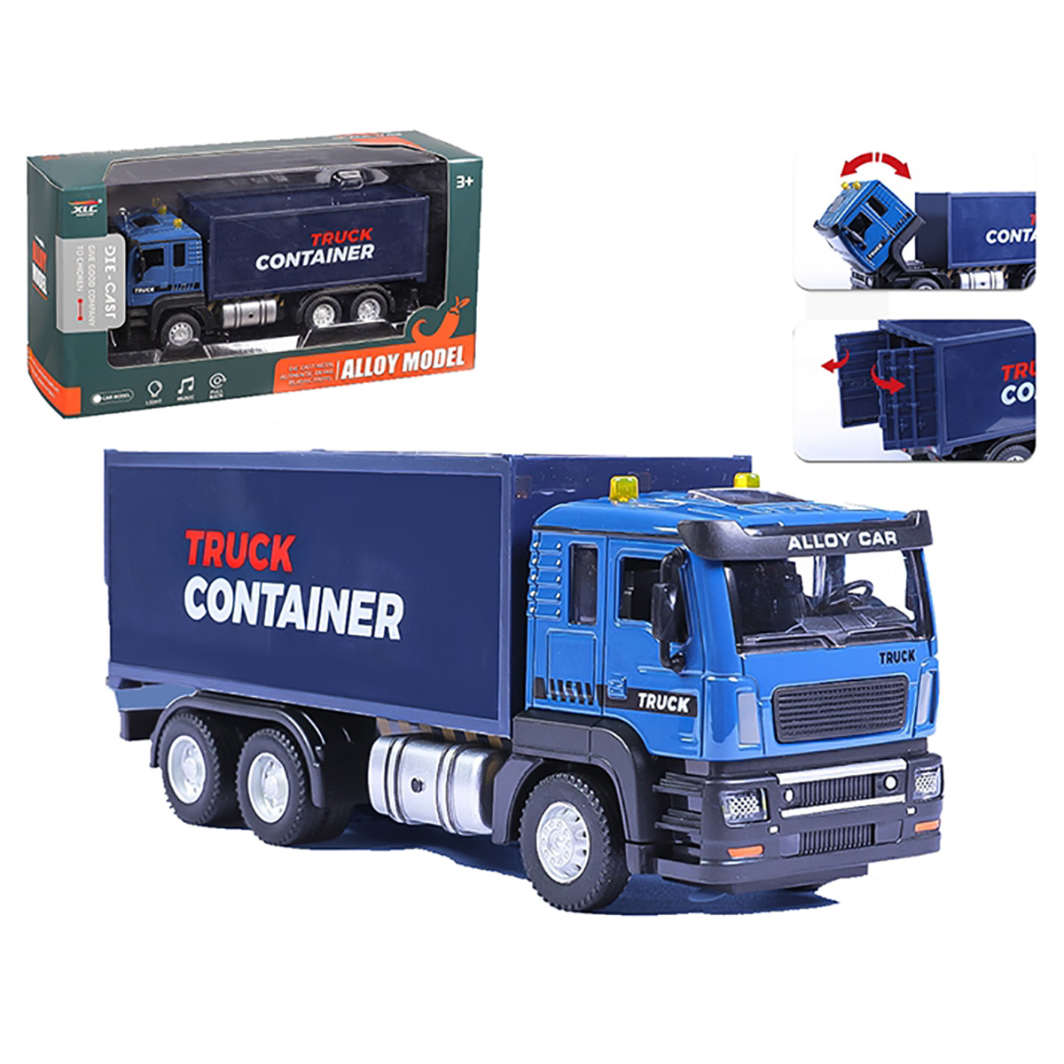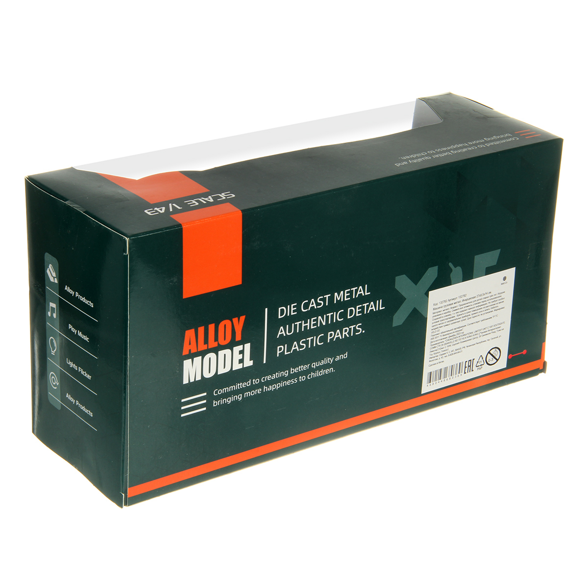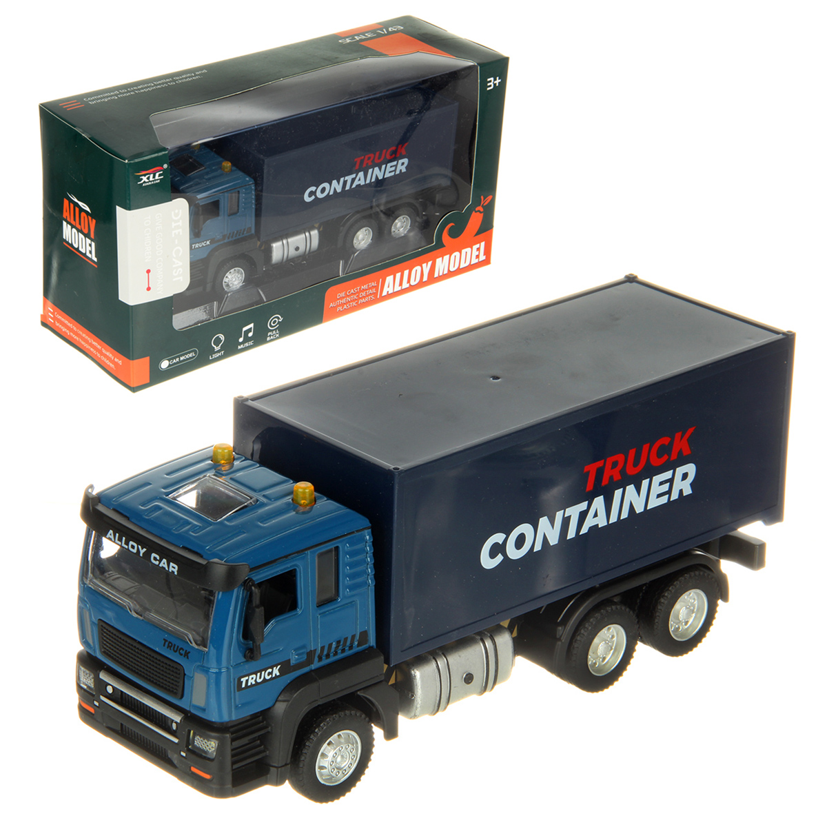 Игрушечная машина с металлической кабиной, прорезиненными колесами, издает звуки гудка, заводящегося двигателя, эффектная подсветка фар.