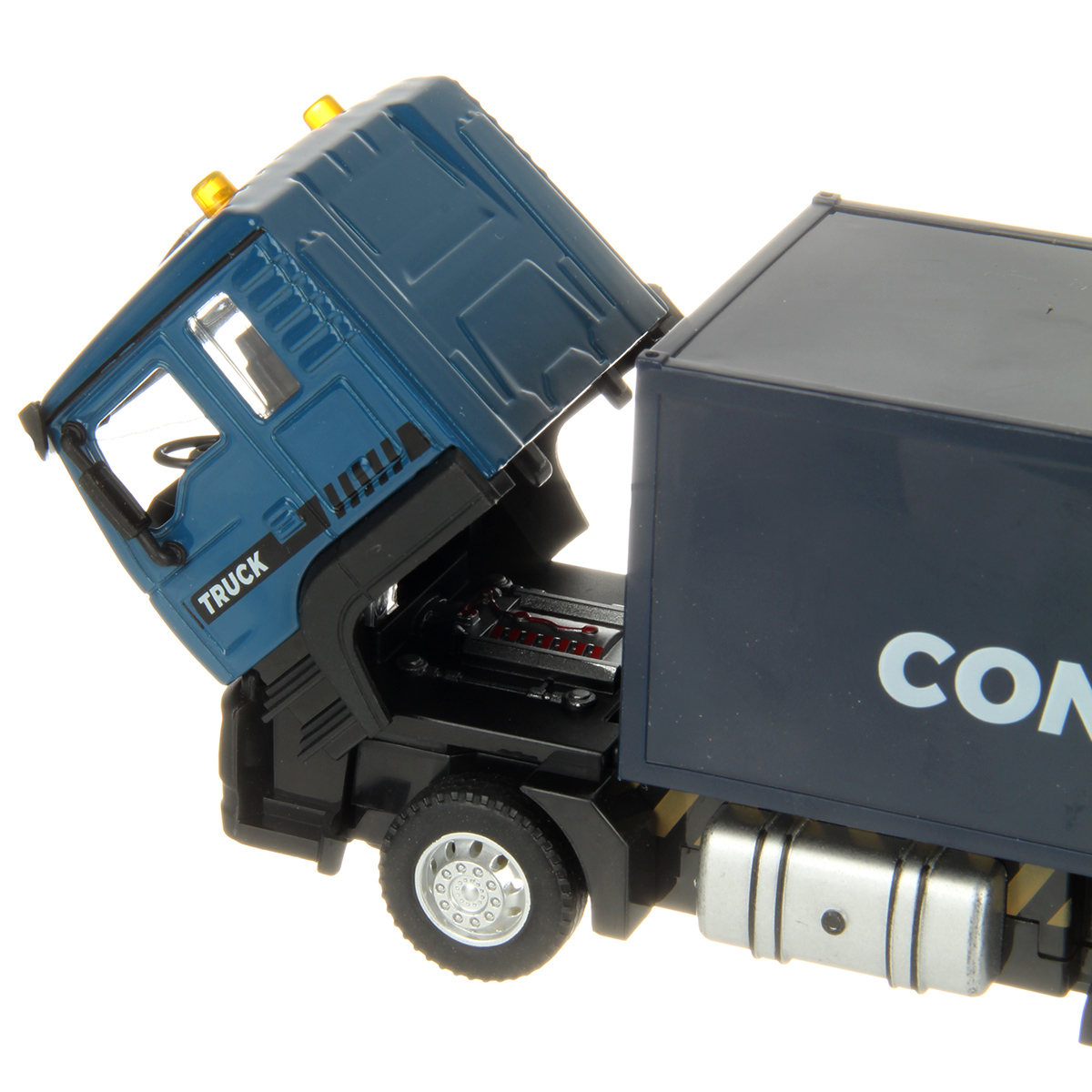 4. При нажатии на кабину издает звуки аварийного хода, заводящегося двигателя, гудка, подсветка лампочек на кабине и передних фар.