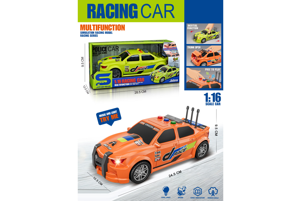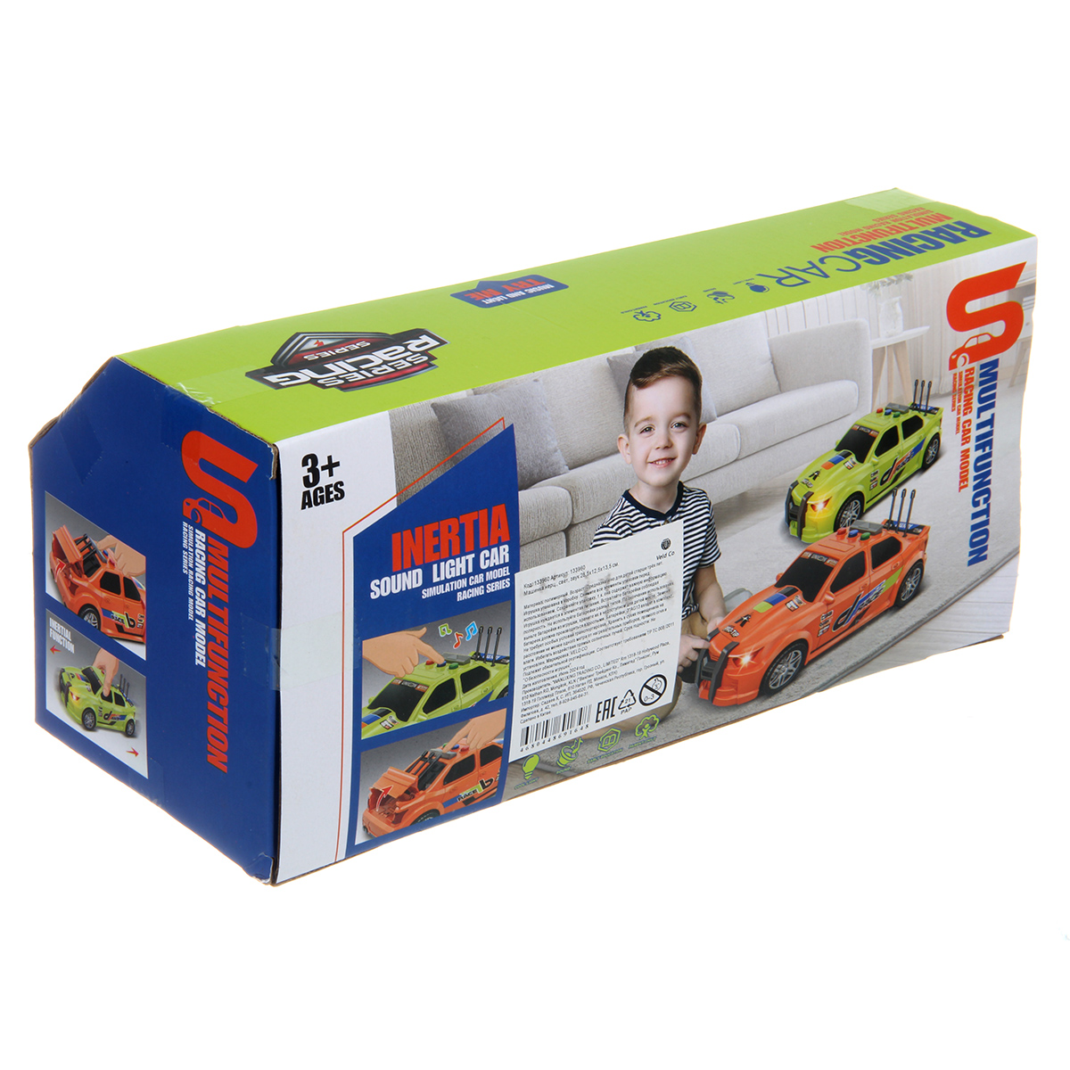 Игрушечная машина с подсветкой фар, открывающимся багажником и звуковыми эффектами станет хорошим дополнением детского автопарка. Машина на батарейках с прорезиненными колесами в красивой расцветке и оригинальном дизайне. Игрушка машина изготовлена из прочных и долговечных материалов.