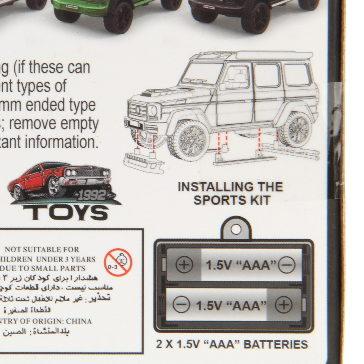 Машинка работает от 2 батареек ААА, не входят в комплект.