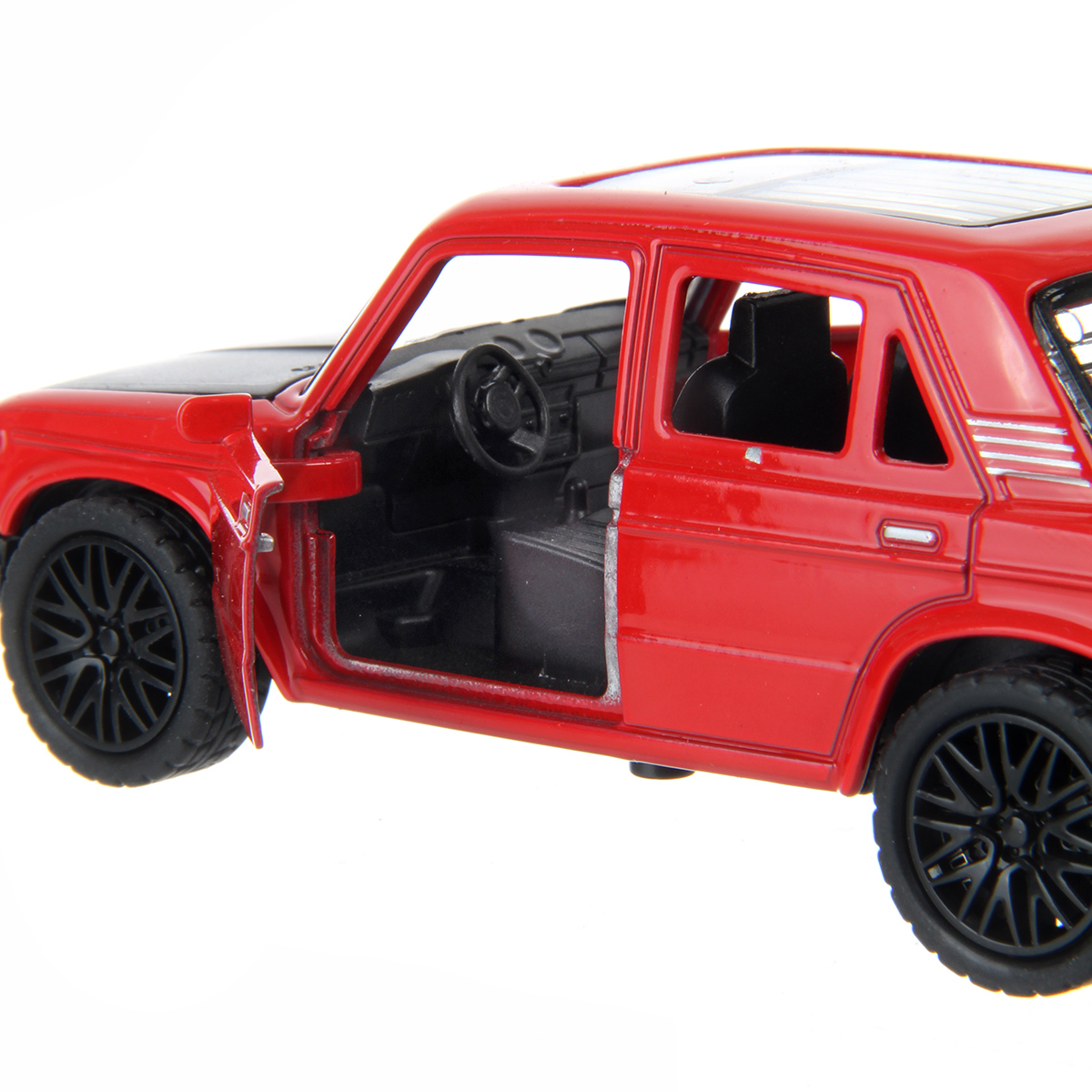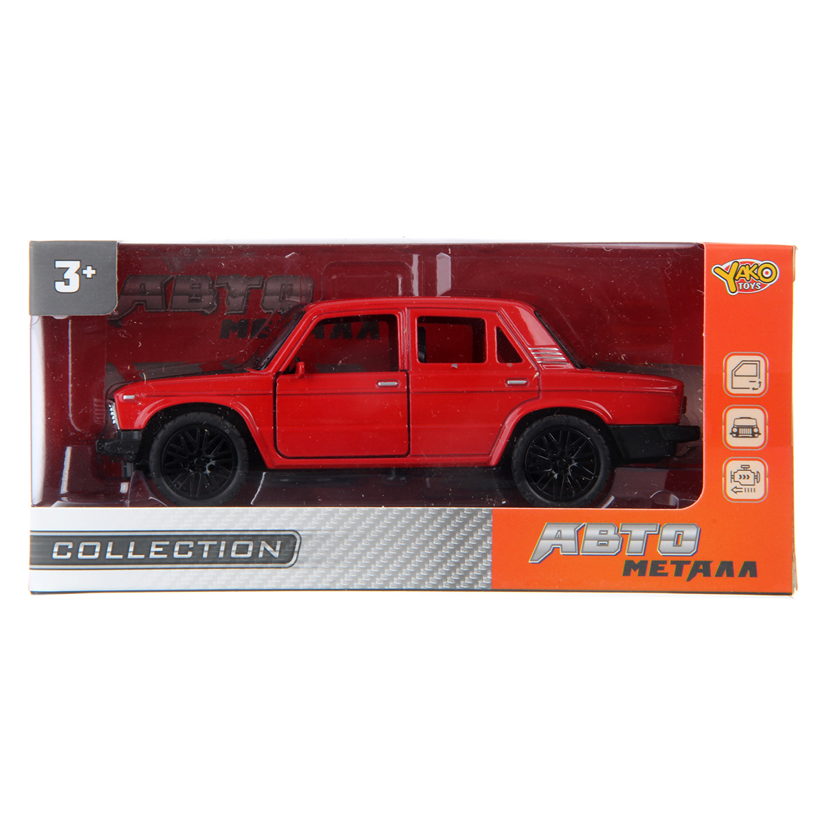 У машинки открываются дверки салона и багажник, она обладает металлическим корпусом и прорезиненными колесами, игрушка машинка имеет компактные размеры, удобно брать с собой.