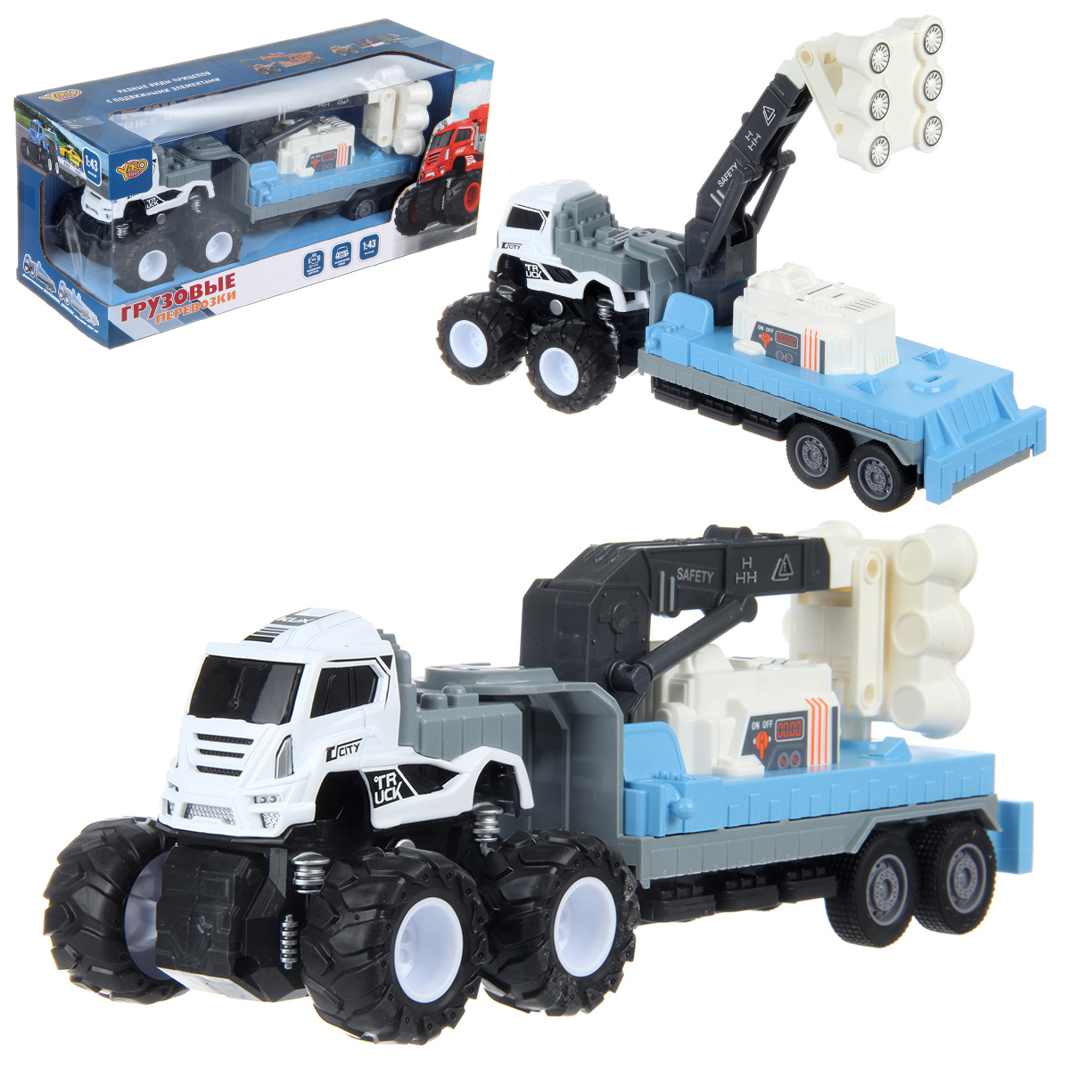 Фрикционная игрушечная машина с металлической кабиной и прорезиненными колесами в оригинальном дизайне и красивой расцветке. Игрушка машина имеет подвижные элементы, выдвигающуюся стрелу, машина спецтехника в высоком качестве исполнения и с хорошим уровнем детализации.