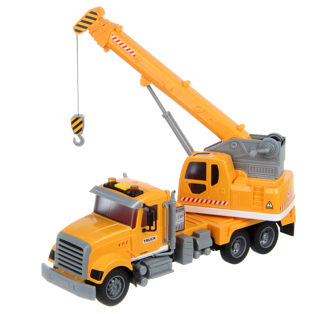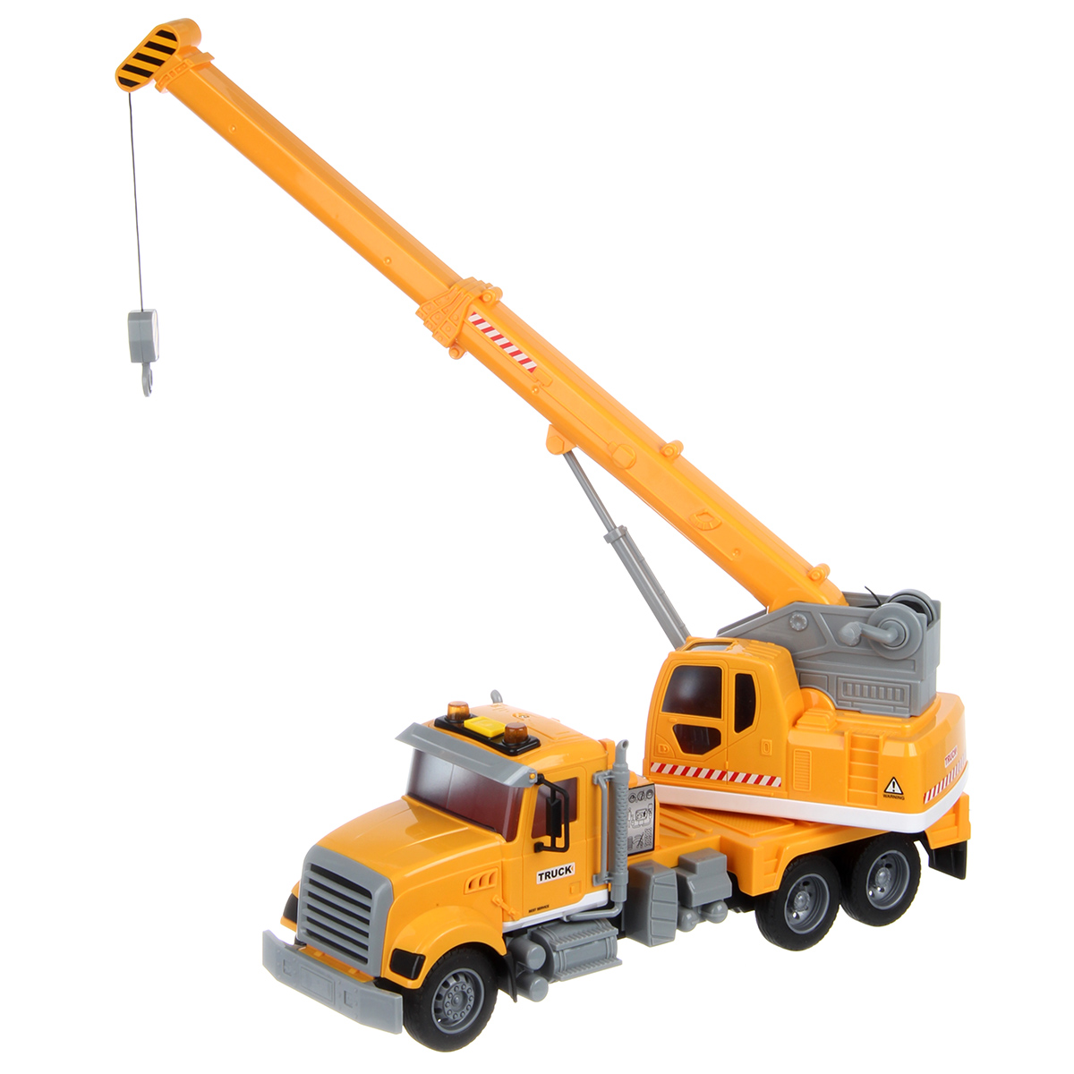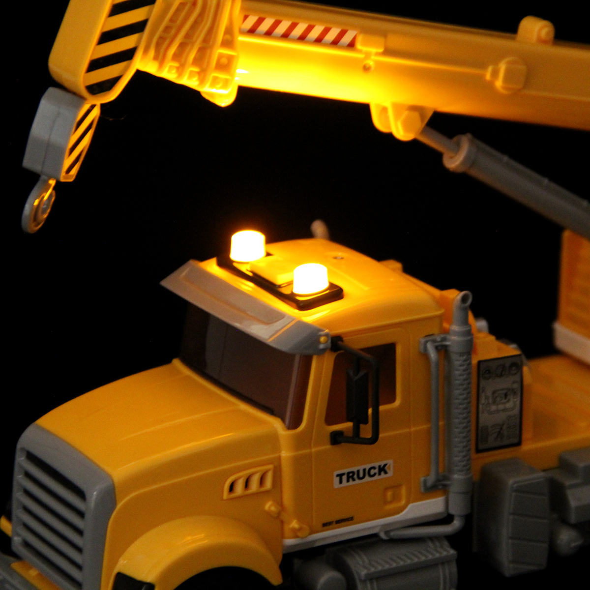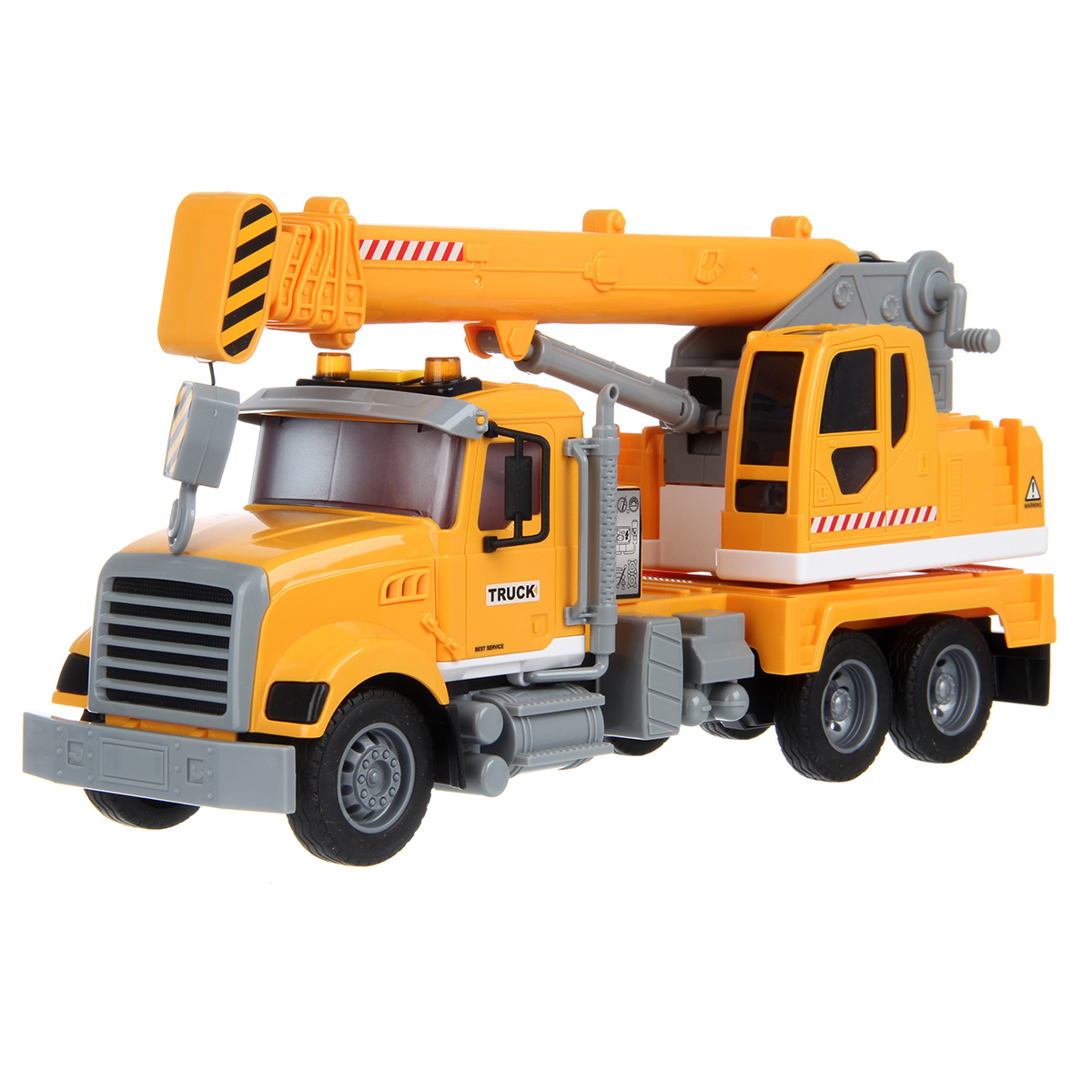 Большая машинка автокран с подвижными деталями, звуковыми и световыми эффектами. Игрушка автокран издает звуки заднего хода и гудка, имеет подсветку лампочек на кабине, можно играть в темное время суток. Фрикционная игрушечная машина с крутящейся кабиной и подвижной стрелой.