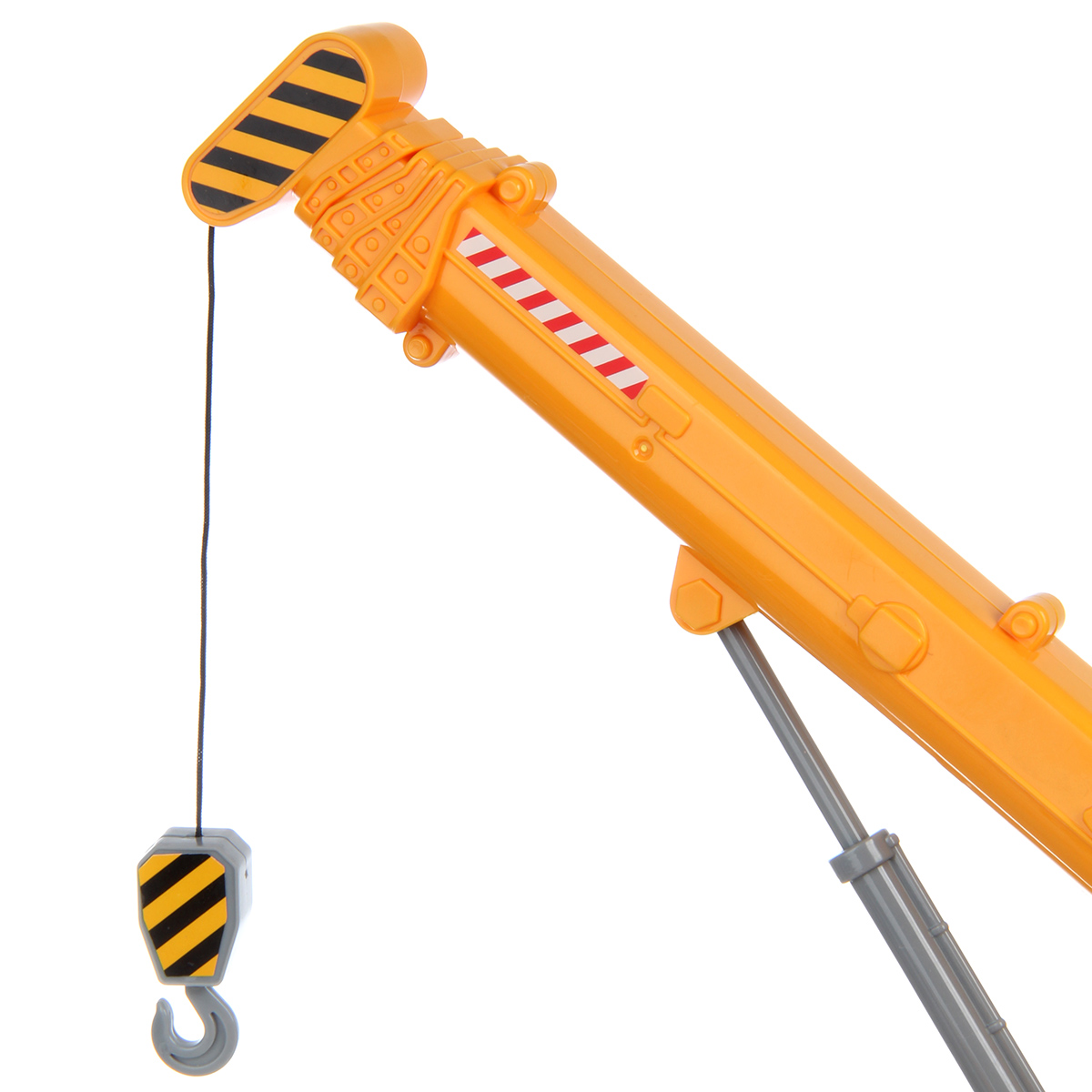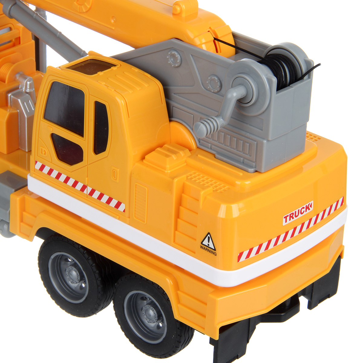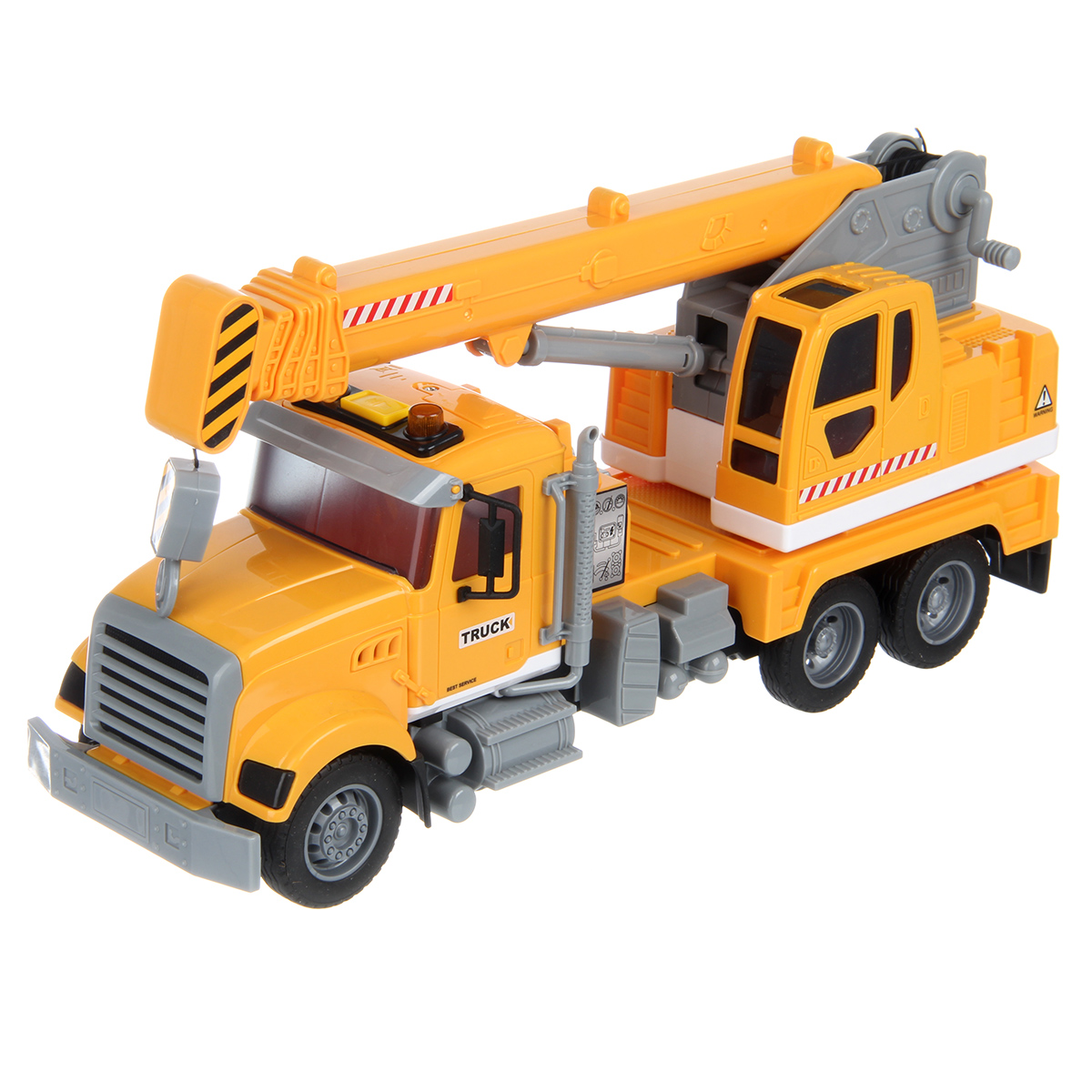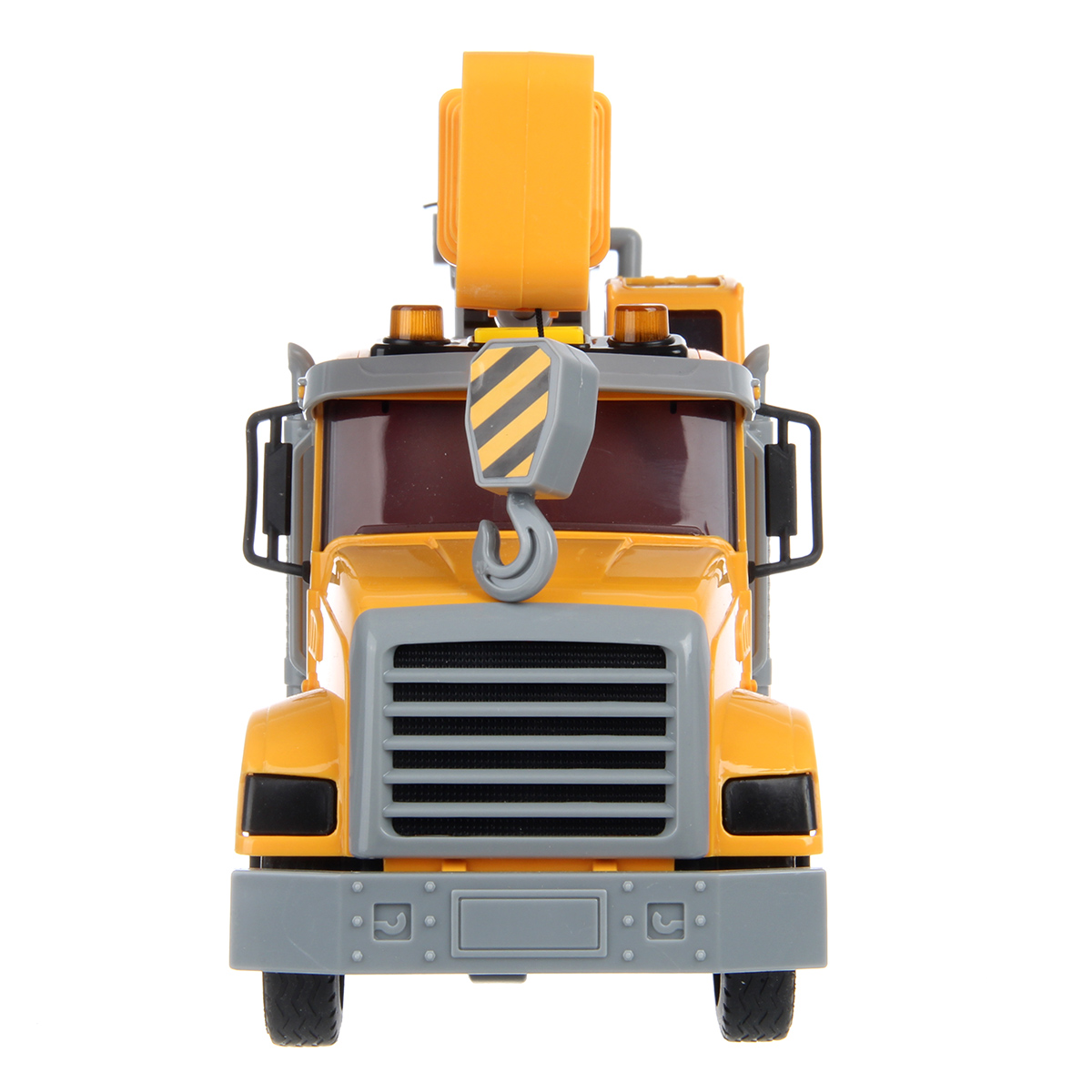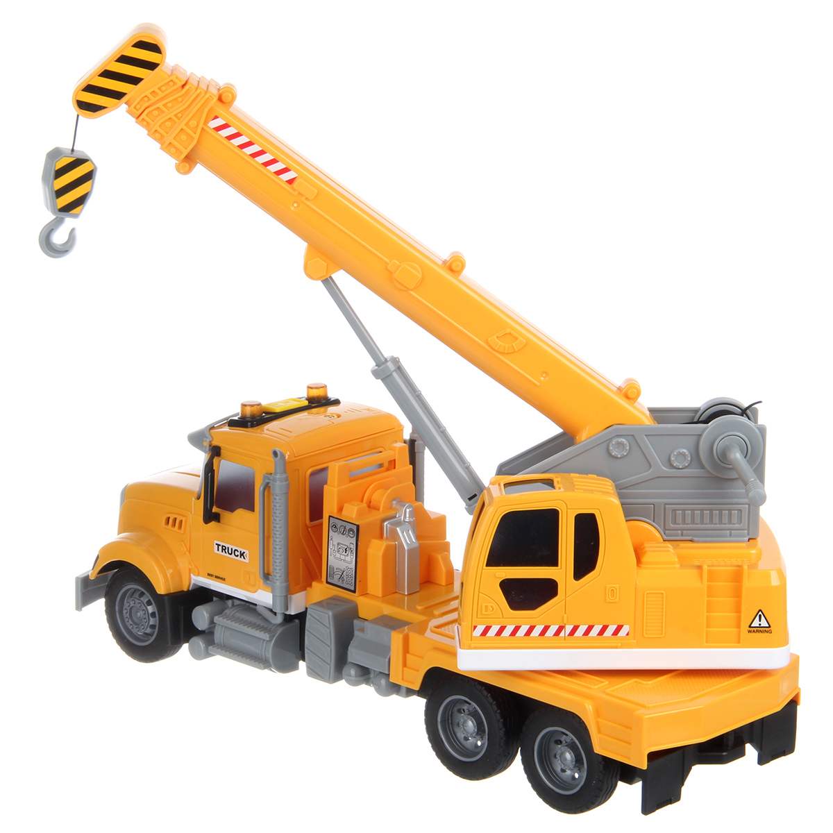 Большая машинка автокран с подвижными деталями, звуковыми и световыми эффектами. Игрушка автокран издает звуки заднего хода и гудка, имеет подсветку лампочек на кабине, можно играть в темное время суток. Фрикционная игрушечная машина с крутящейся кабиной и подвижной стрелой.