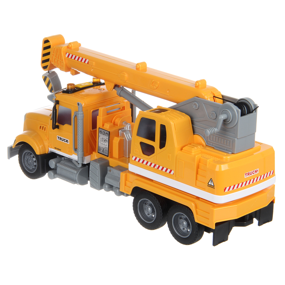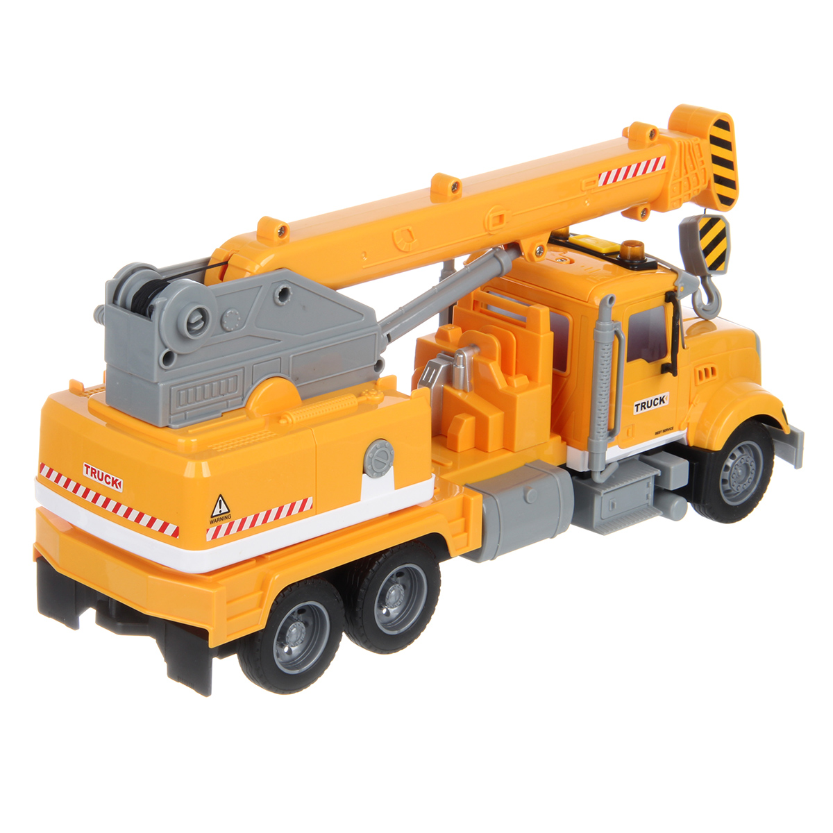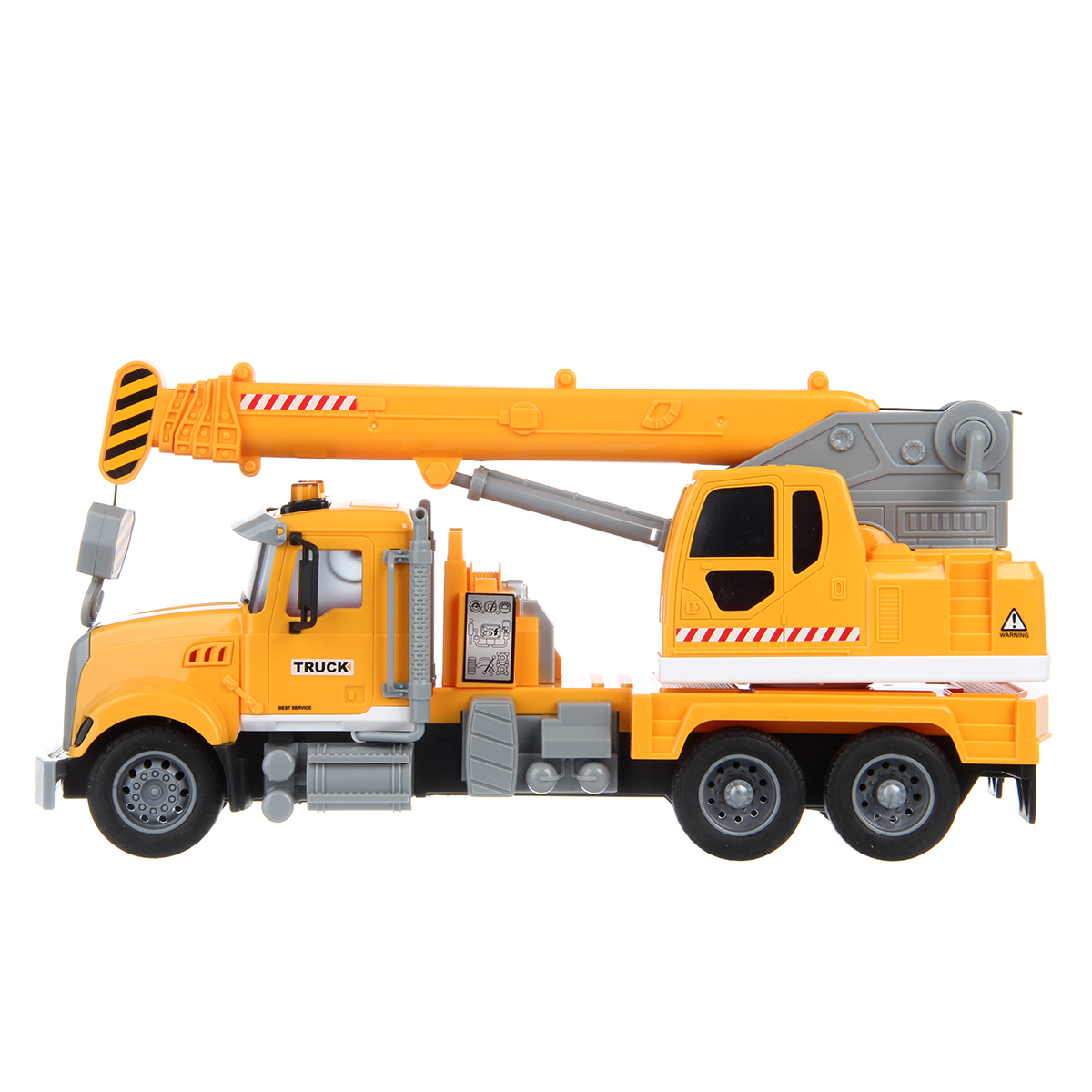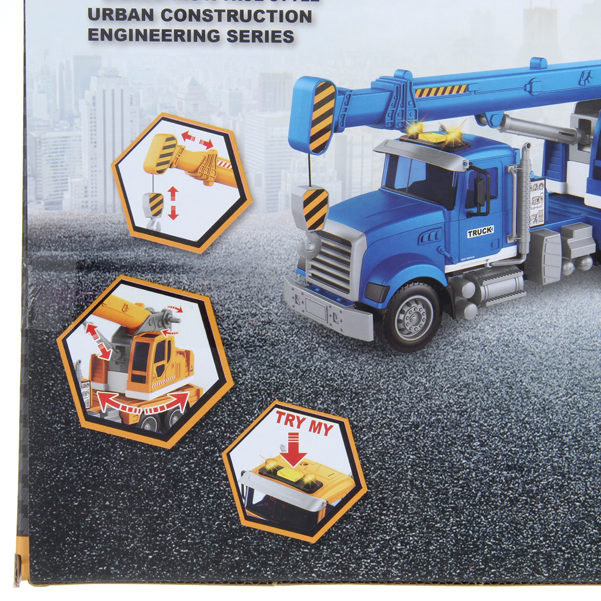 Большая машинка автокран с подвижными деталями, звуковыми и световыми эффектами. Игрушка автокран издает звуки заднего хода и гудка, имеет подсветку лампочек на кабине, можно играть в темное время суток. Фрикционная игрушечная машина с крутящейся кабиной и подвижной стрелой.