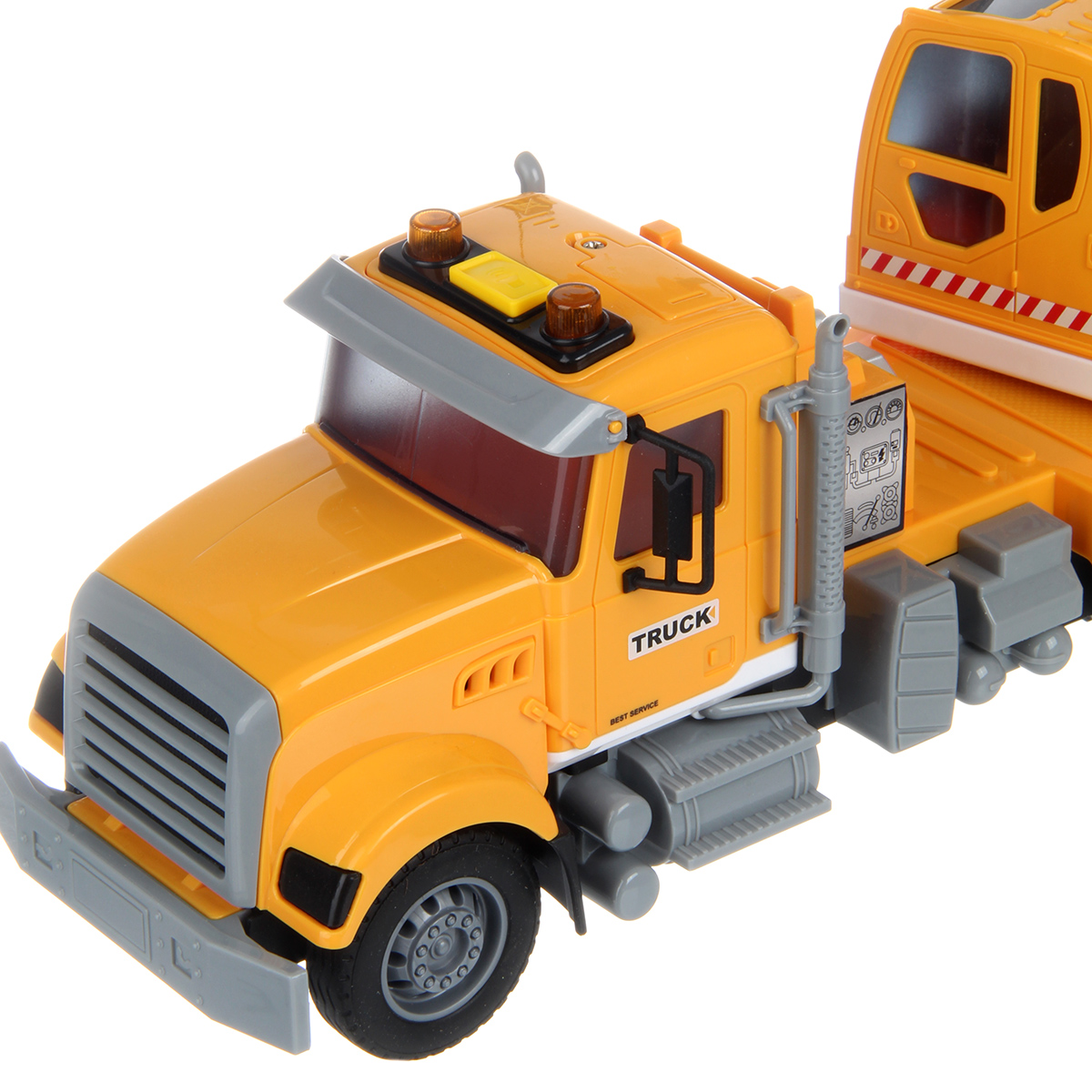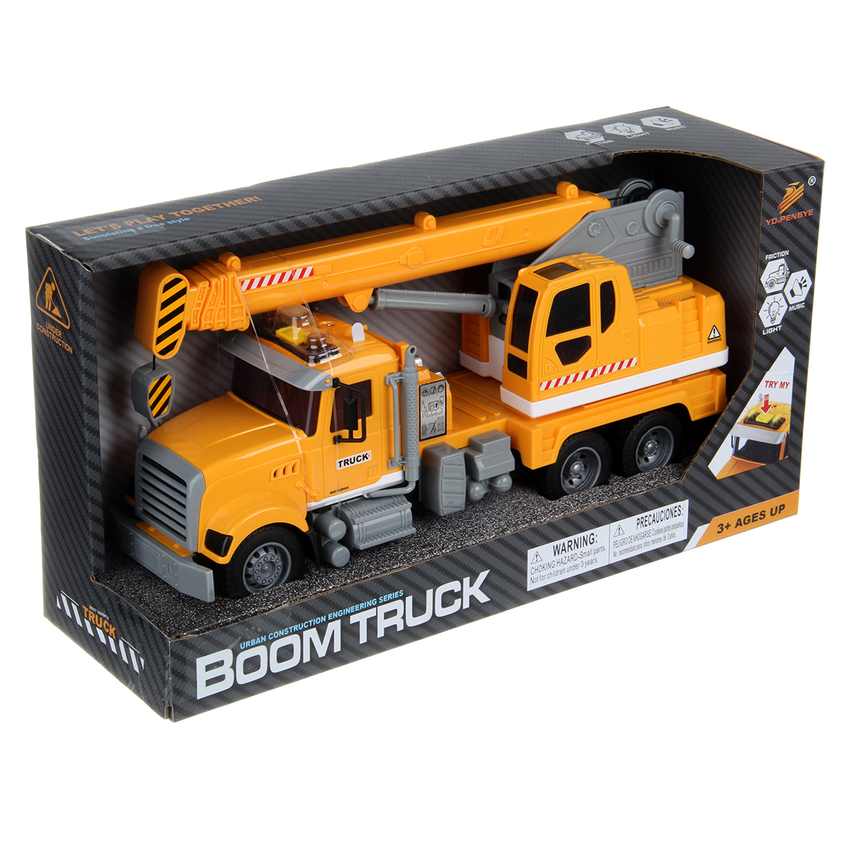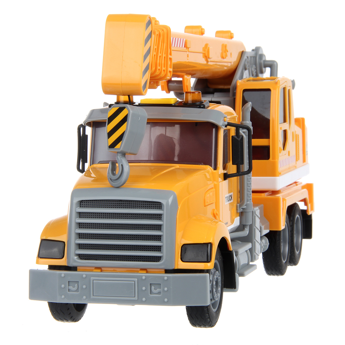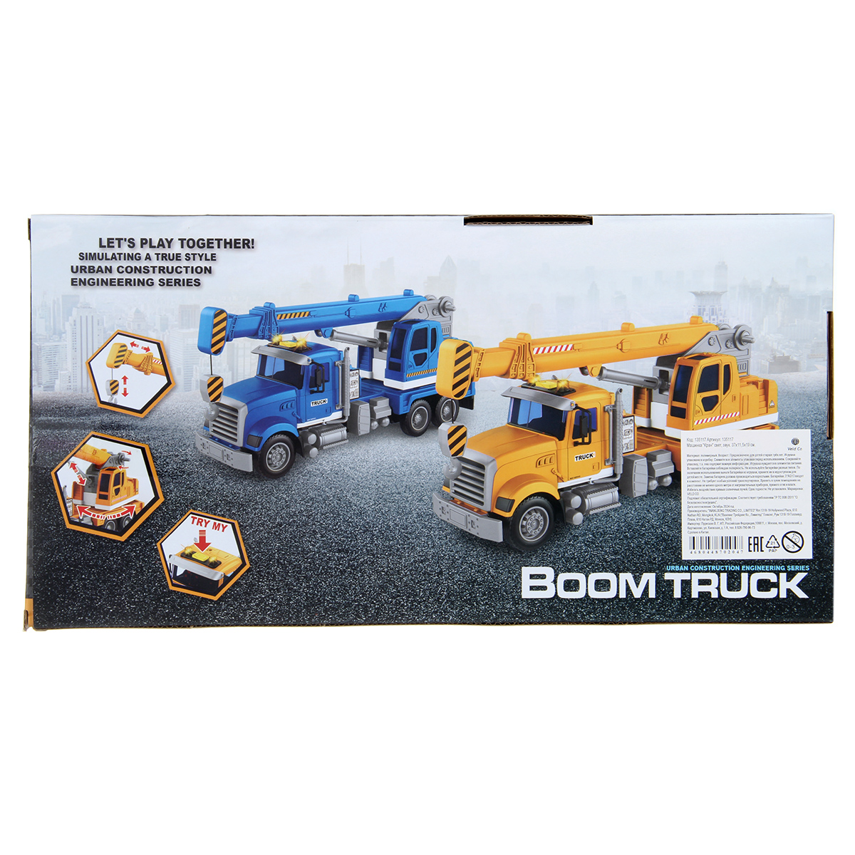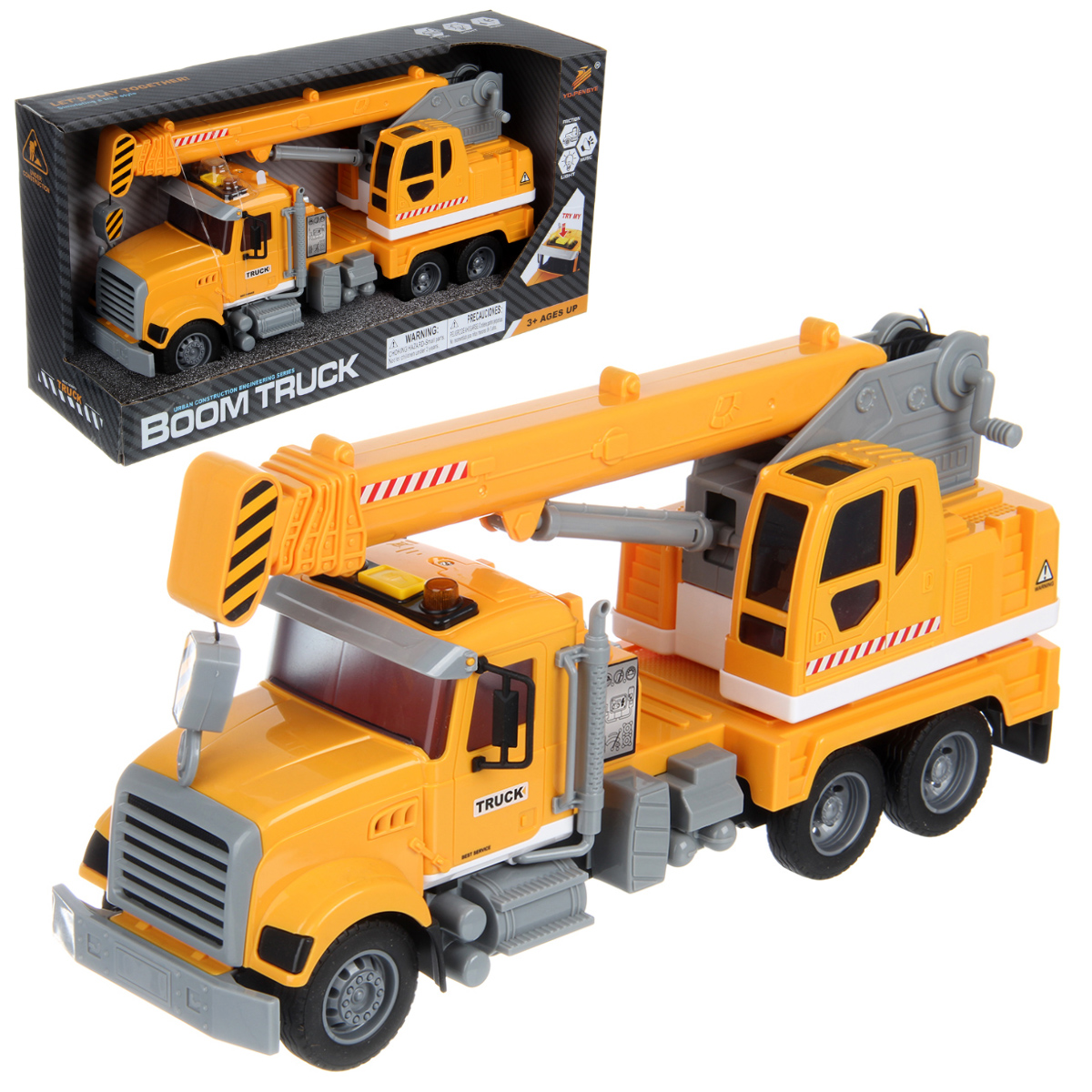 Большая машинка автокран с подвижными деталями, звуковыми и световыми эффектами. Игрушка автокран издает звуки заднего хода и гудка, имеет подсветку лампочек на кабине, можно играть в темное время суток. Фрикционная игрушечная машина с крутящейся кабиной и подвижной стрелой.