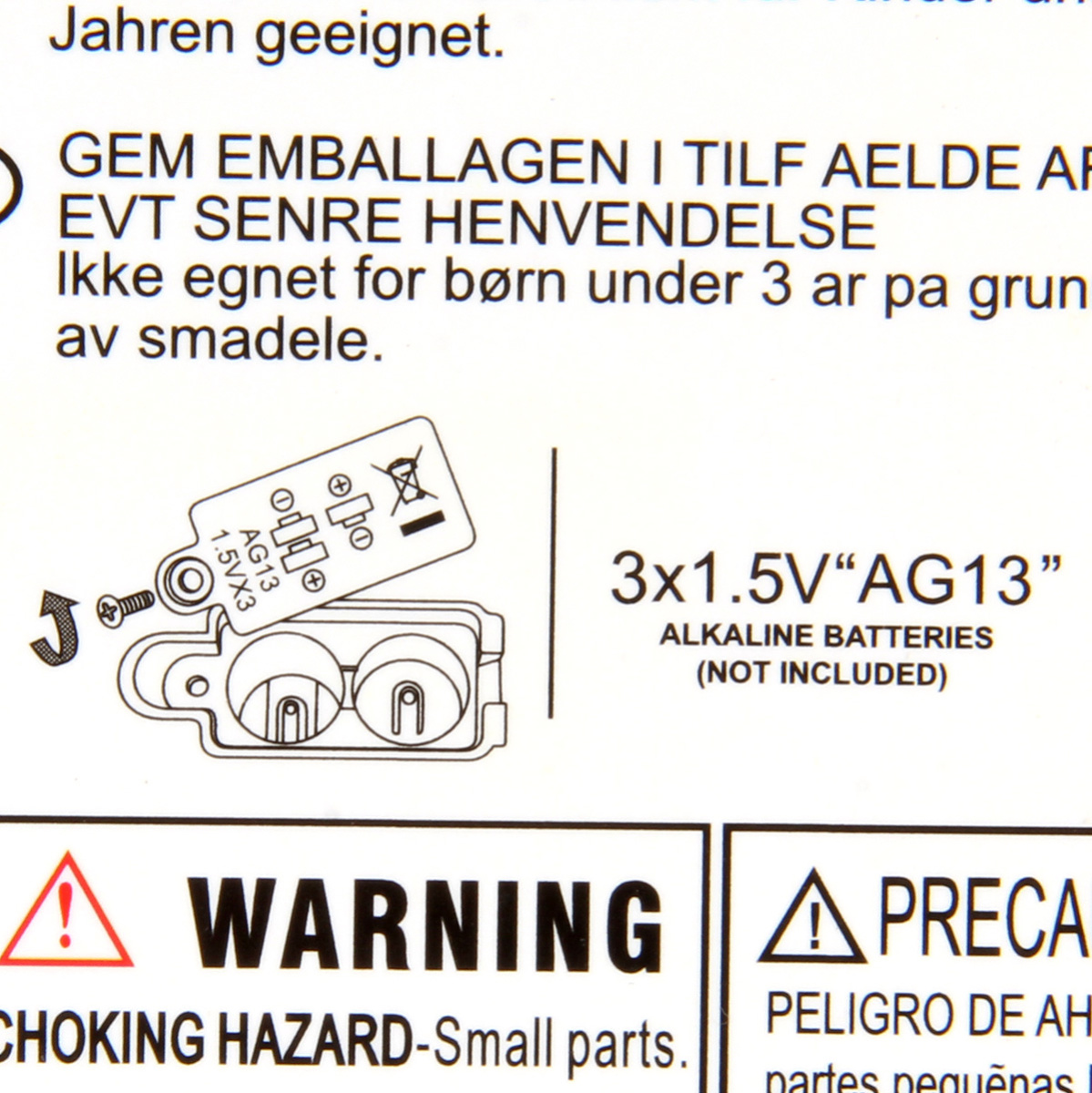 Игрушка работает от 3 батареек LR44, входят в комплект.
