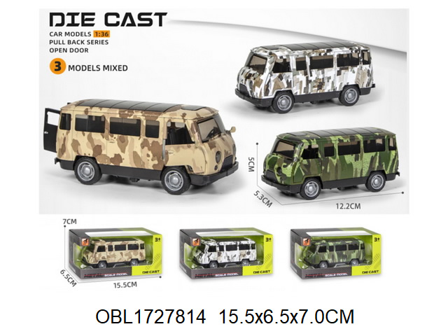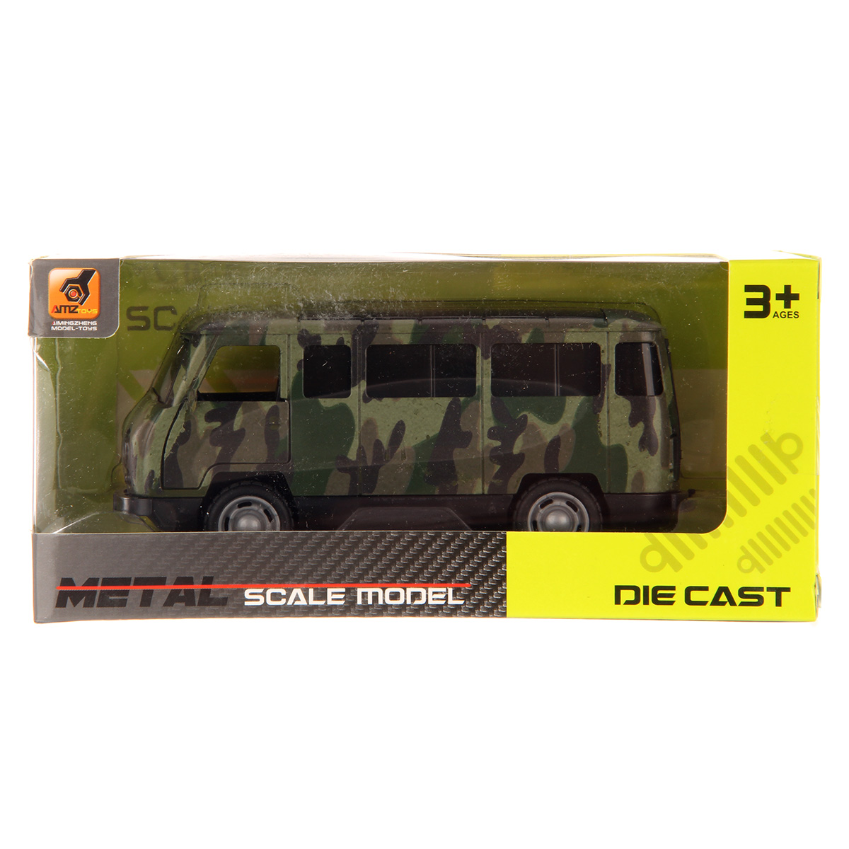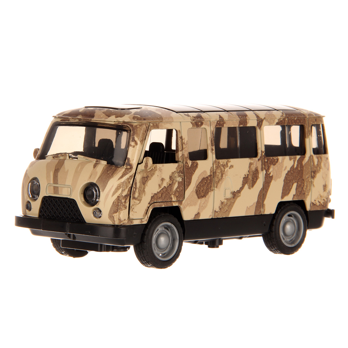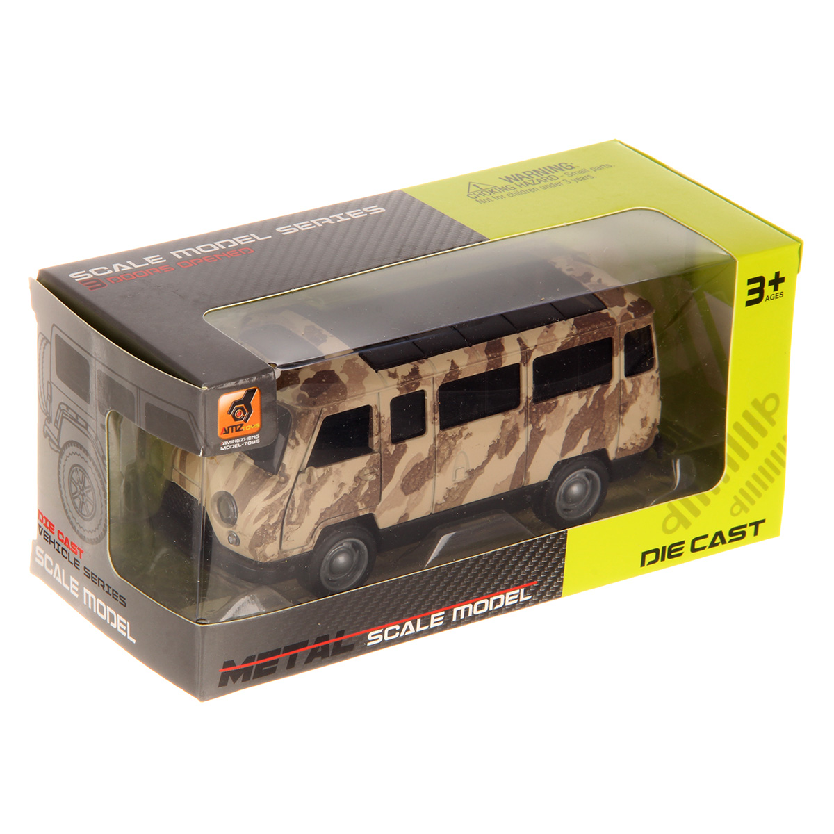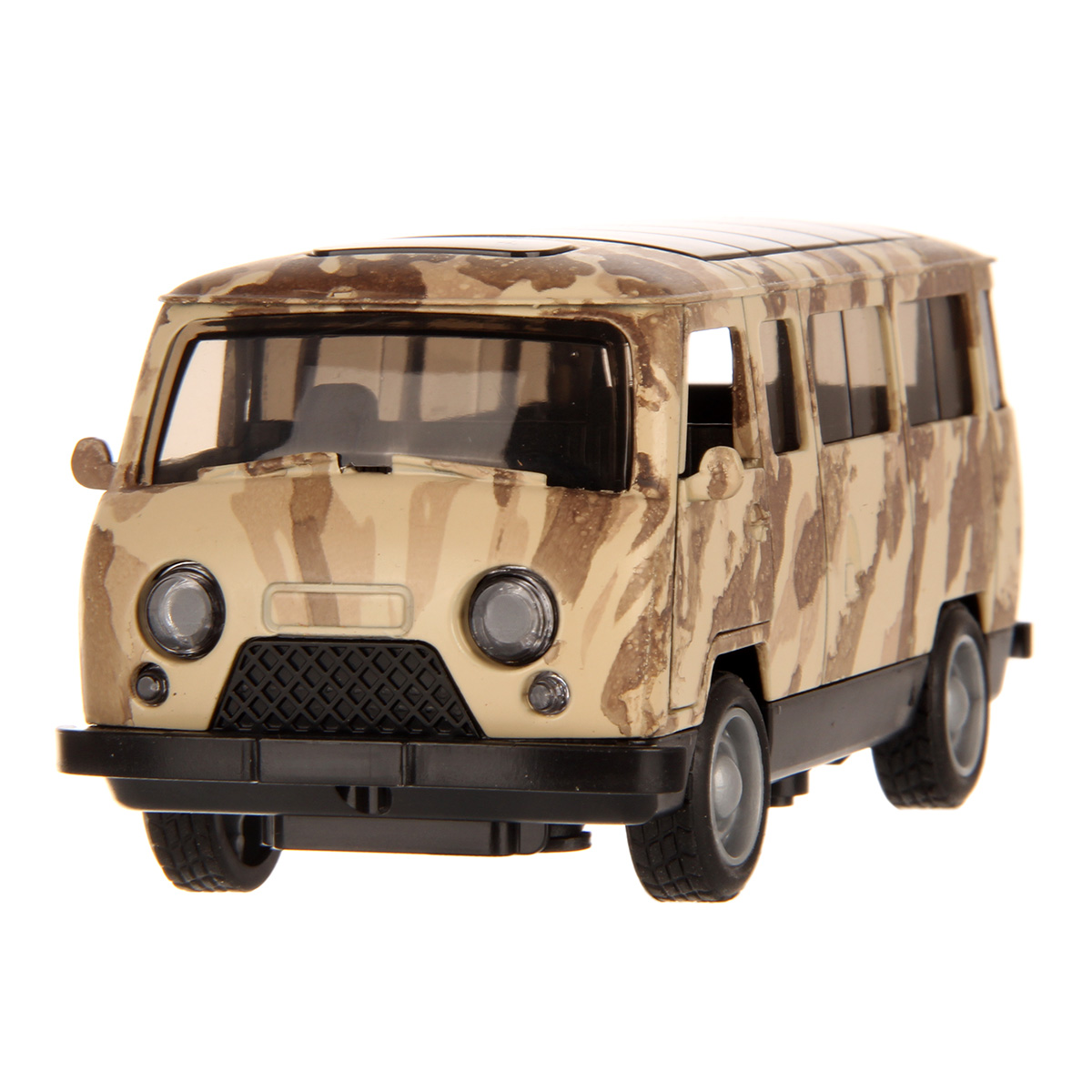 Металлический корпус, катается вперед и назад, оснащена инерционным механизмом, открываются дверки салона и дверки фургона, колеса прорезинены. При нажатии на передние колеса издает звуки заводящегося двигателя и едущего транспорта, подсветка передних фар.