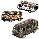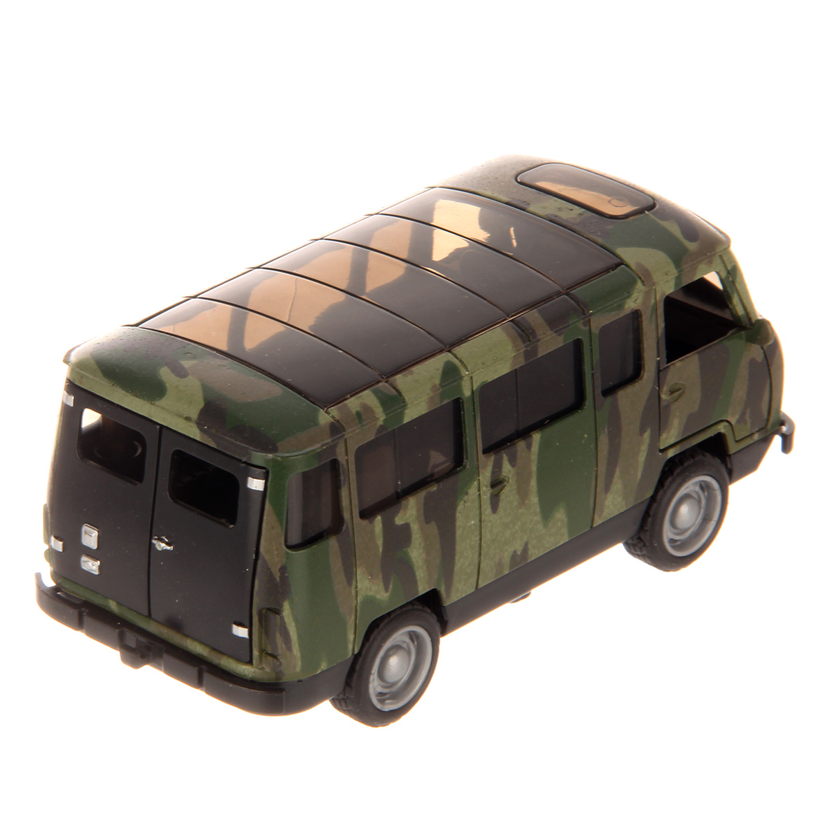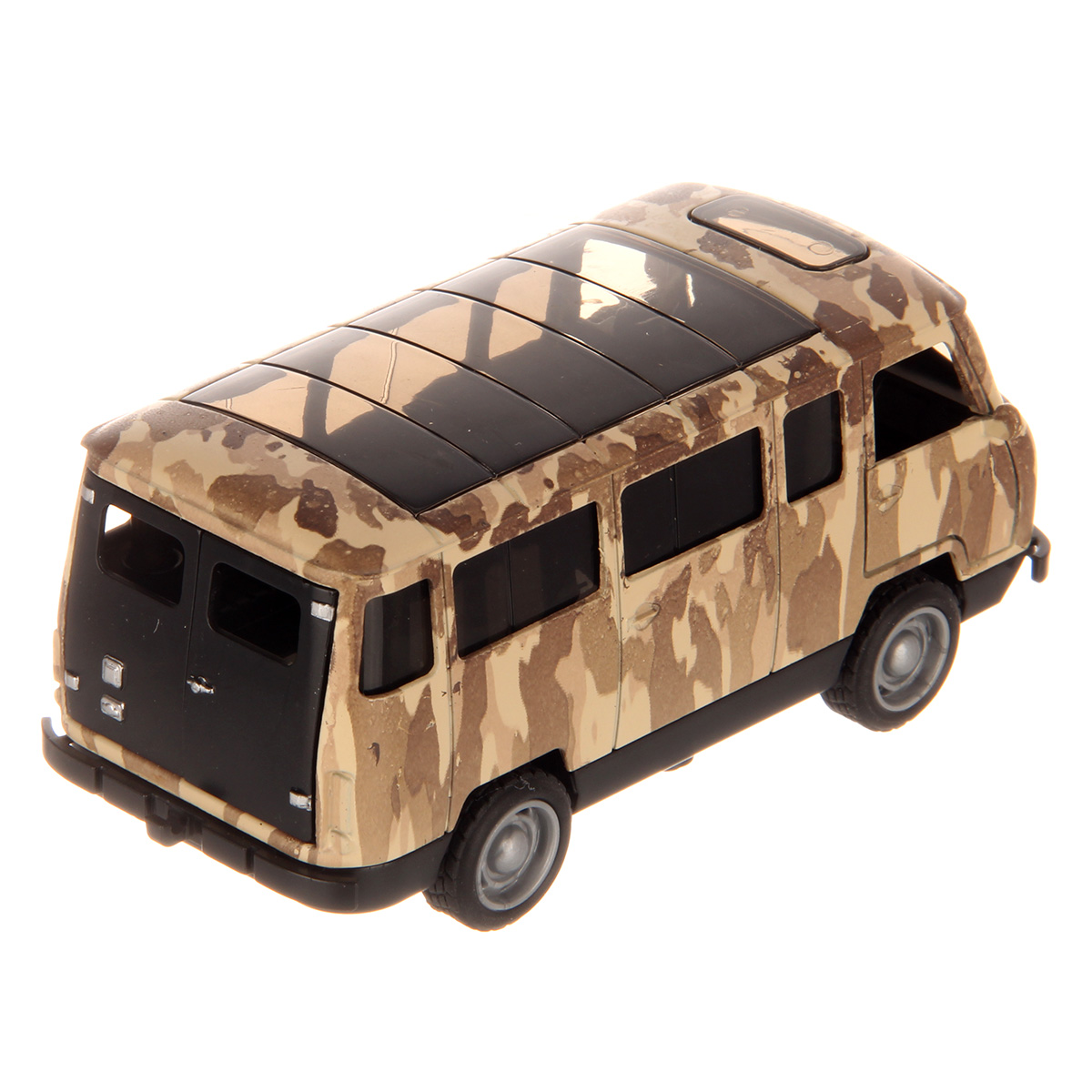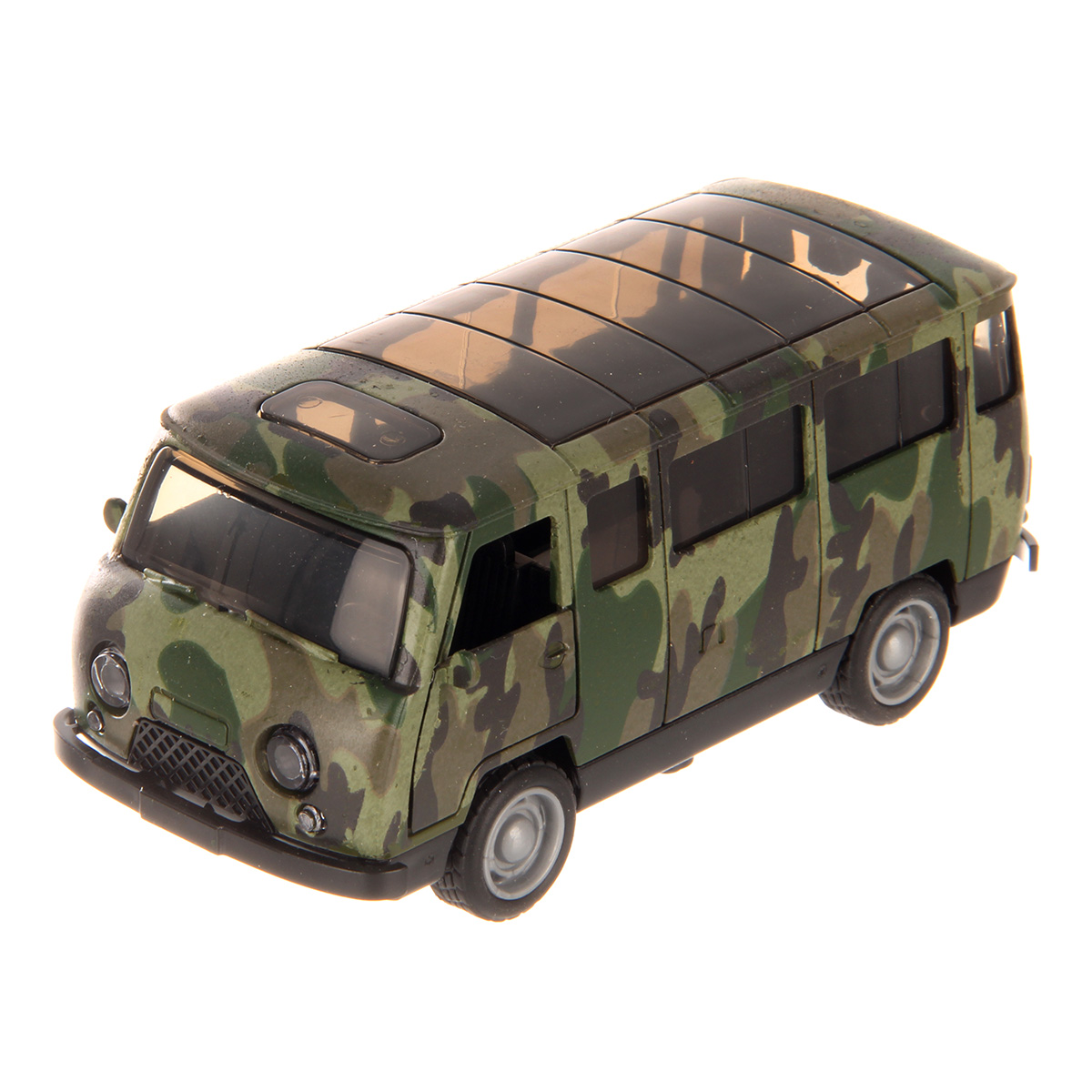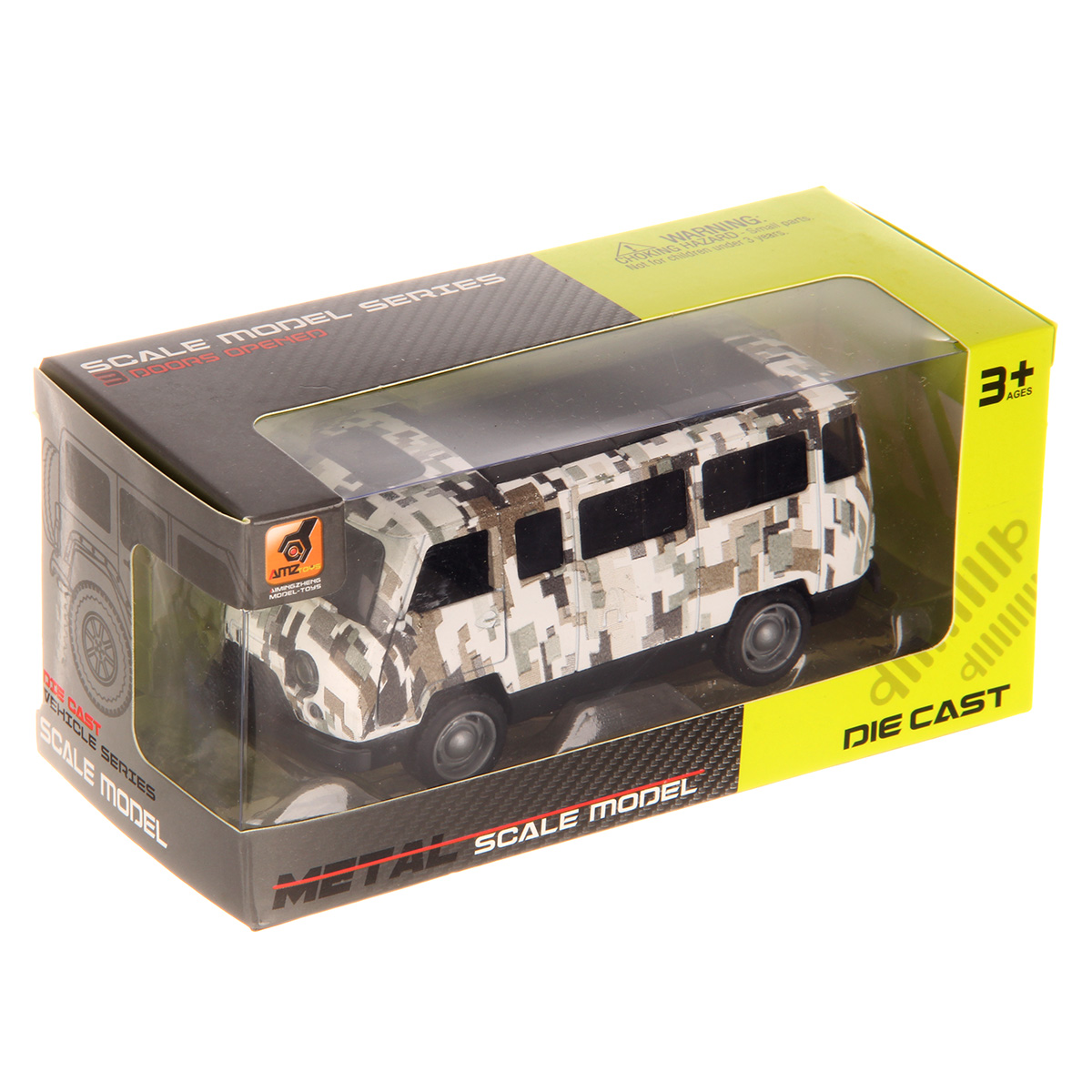 Металлический корпус, катается вперед и назад, оснащена инерционным механизмом, открываются дверки салона и дверки фургона, колеса прорезинены. При нажатии на передние колеса издает звуки заводящегося двигателя и едущего транспорта, подсветка передних фар.