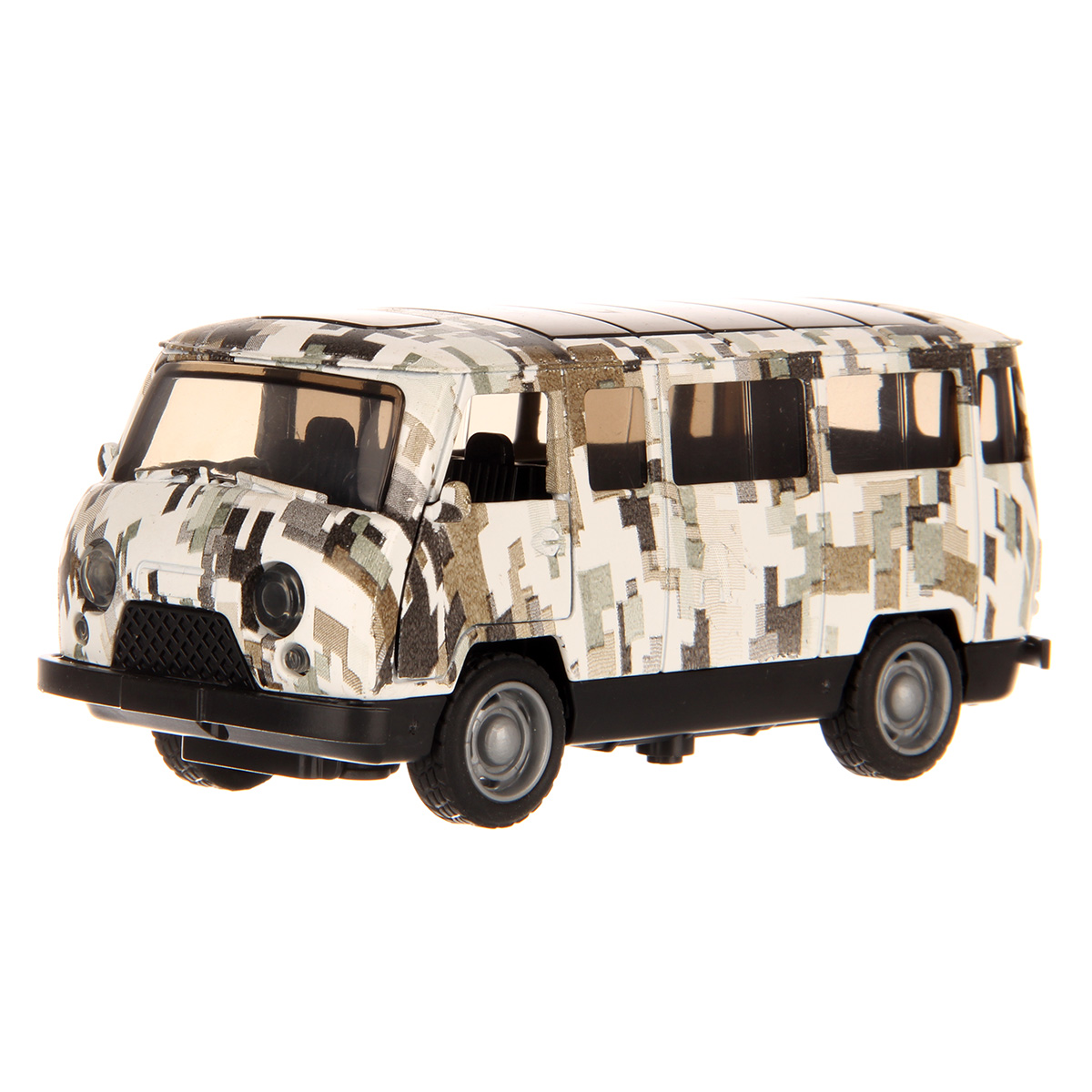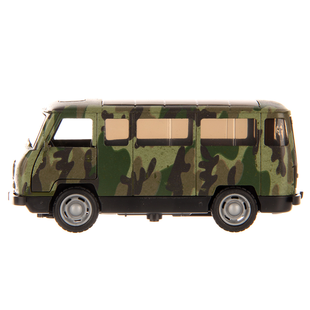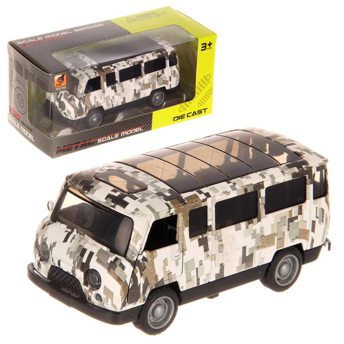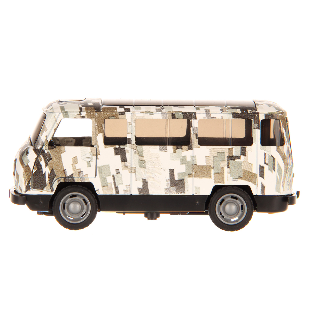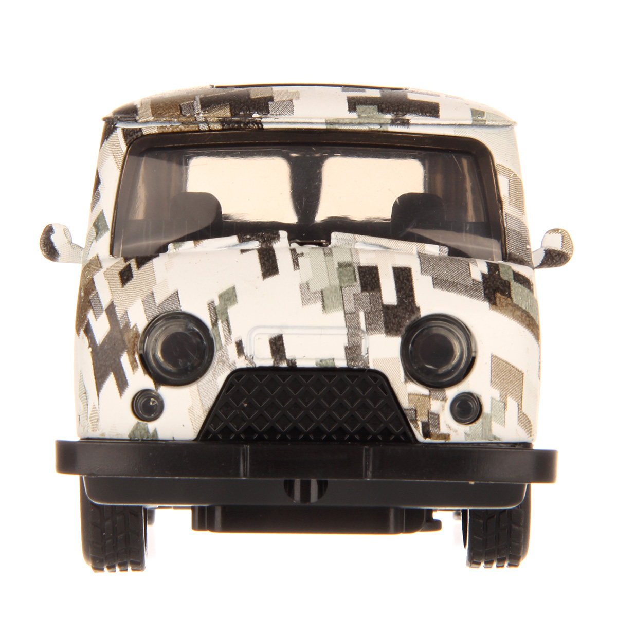 Металлический корпус, катается вперед и назад, оснащена инерционным механизмом, открываются дверки салона и дверки фургона, колеса прорезинены. При нажатии на передние колеса издает звуки заводящегося двигателя и едущего транспорта, подсветка передних фар.