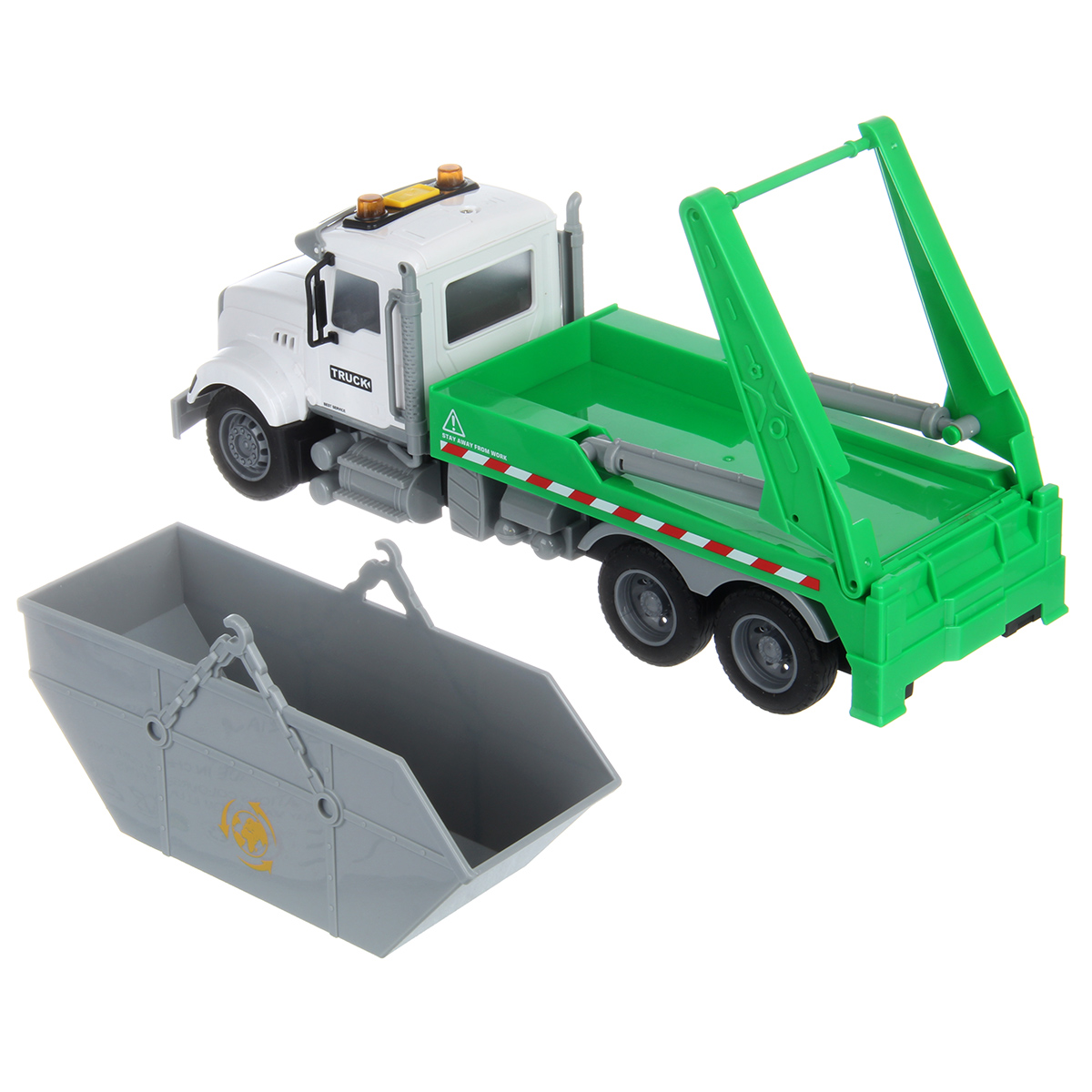 Фрикционная игрушечная машина со съемным контейнером и выдвигающимися стрелами, кладем в контейнер мелкие предметы.