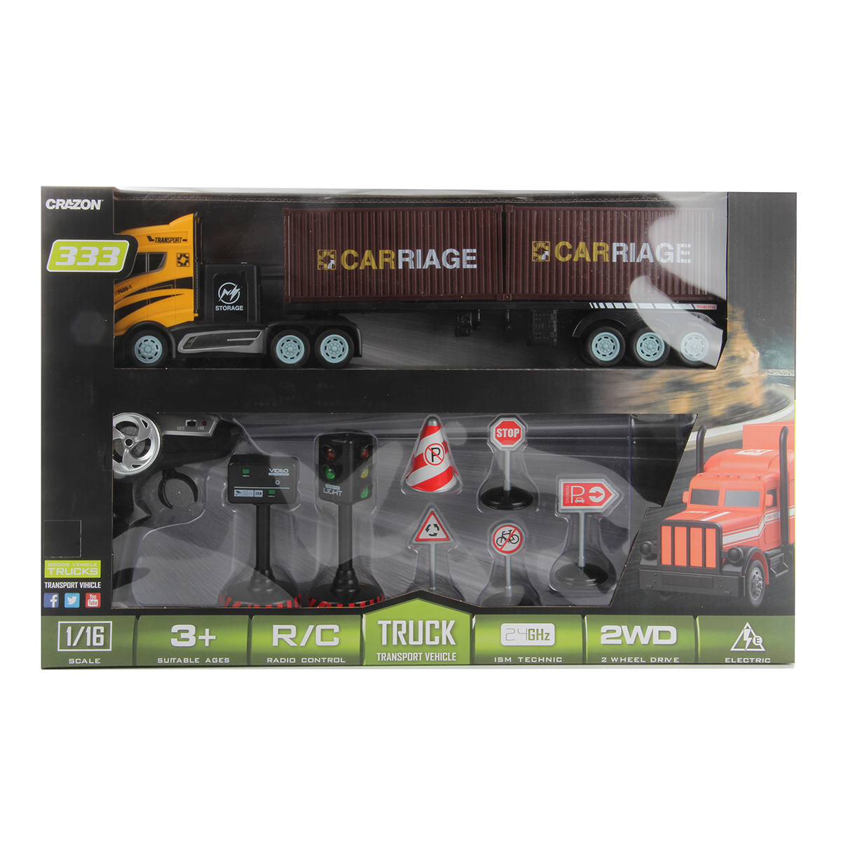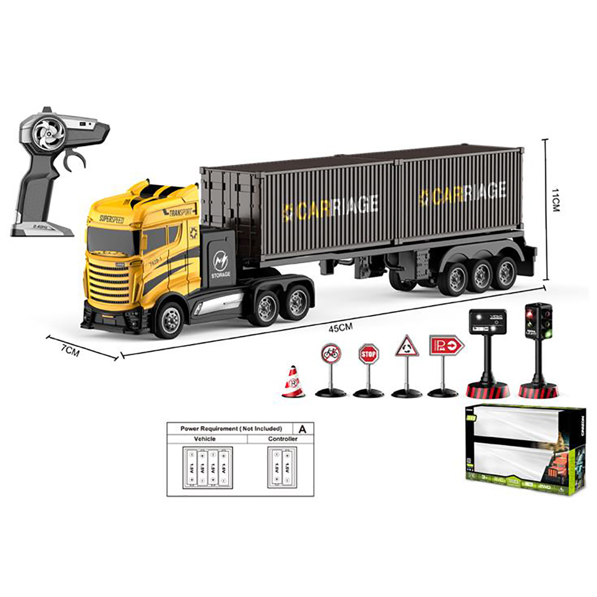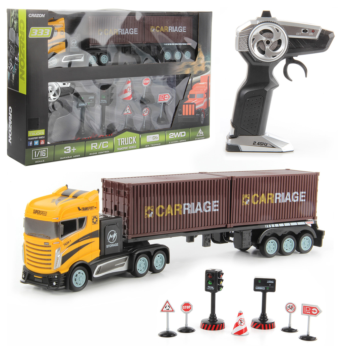 Крутая игрушка для любого маленького автолюбителя. Реалистичный дизайн, красивая расцветка, наличие большого количества элементов, звуковые и световые эффекты - этот набор вызовет восторг у каждого ребенка.В комплект входят тягач с прицепом, пульт управления, светофор, камера фотофиксации, дорожные знаки.Функционал тягача:- катается во все стороны;- переднеприводный;- тягач отсоединяется от прицепа;- колеса прорезинены.Функционал камеры фотофиксации:- при нажатии на кнопку издает звук фотографирования, подсвечиваются лампочки. Функционал светофора:- издает звук работы настоящего светофора;- подсвечиваются цвета светофора.Благодаря такой игрушке ребенок будет с удовольствием развивать мелкую моторику рук, координацию движений, воображение, слуховое и зрительное восприятие.