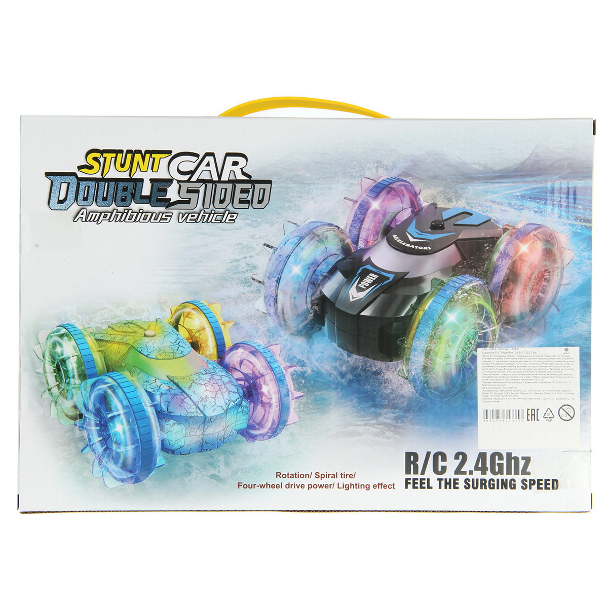 Радиоуправляемая машинка перевертыш в оригинальном дизайне и красивой расцветке. Плавает в воде, движение во все стороны, полный привод, вращение по кругу на 360 градусов, отключение подсветки кнопки на корпусе. Деморежим, резиновые полоски на колесах для лучшего сцепления с поверхностью, пульт удобно ложится в руки. Компактные размеры машинки, удобно брать с собой на улицу. Игрушка изготовлена из прочных и долговечных материалов.