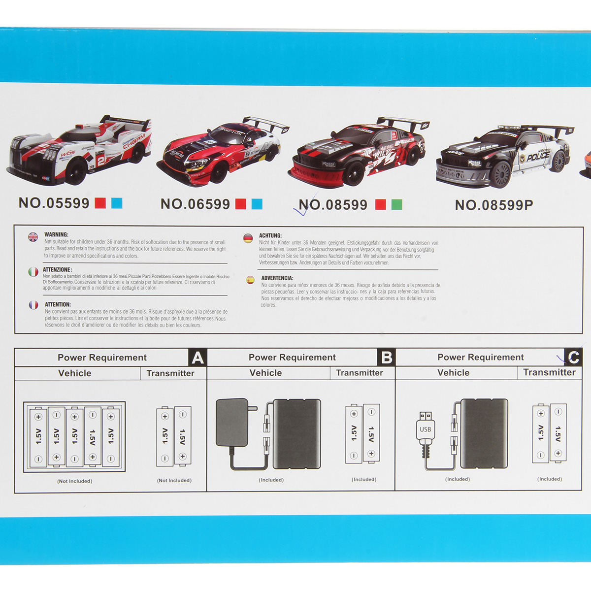 В наборе машинка, пульт управления, USB кабель, аккумулятор 4.8V, 2 батарейки АА.