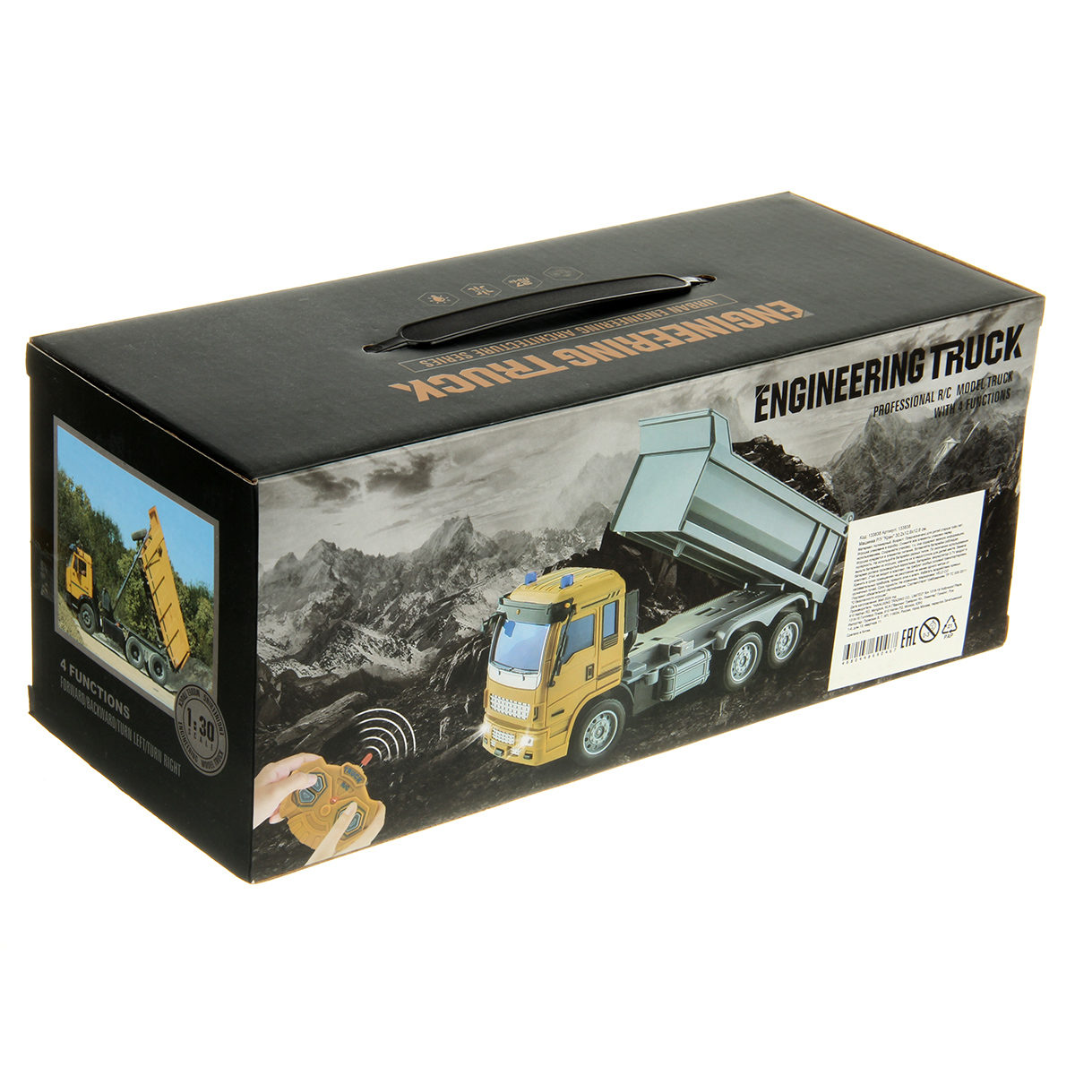 Машина на радиоуправлении изготовлена из прочных и долговечных материалов, оформлена в реалистичном дизайне.