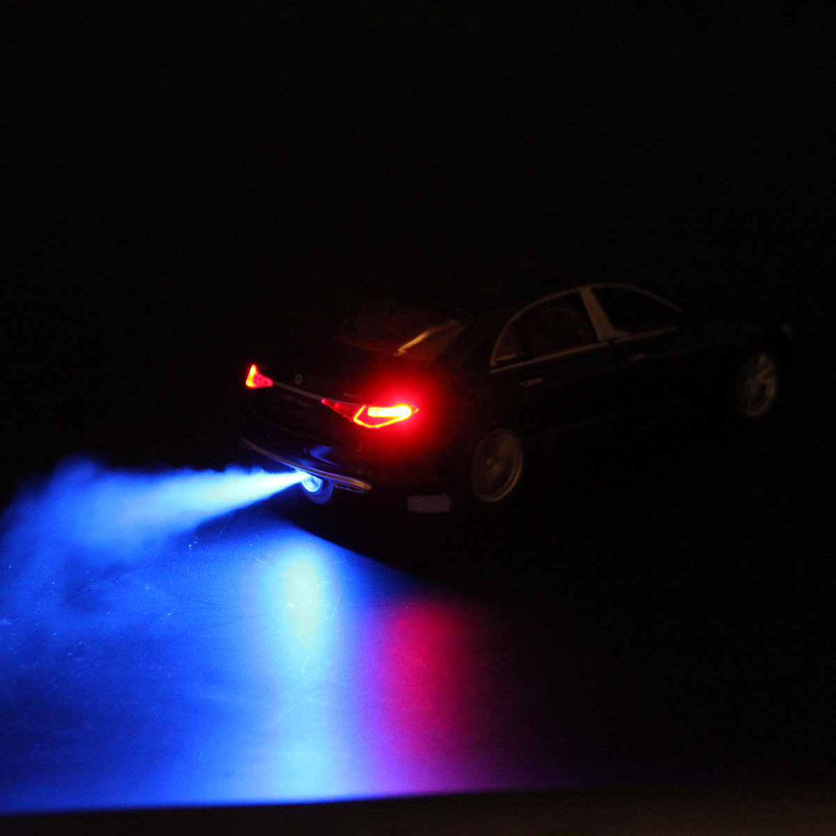 2. Функция пара. Откройте багажник, там находится отсек для заливки воды. Наберите воду в бутылочку, наденьте насадку на бутылочку, налейте воду в отсек. При нажатии на центральную кнопку на пульте из отверстия в задней части машинки пойдёт пар, отверстие будет подсвечиваться голубым.